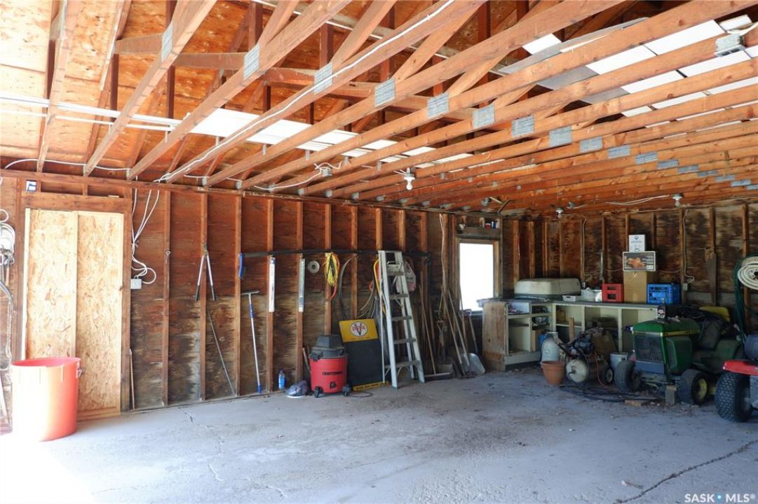 Located in the RM of Lake of the Rivers a short distance of only 3km southeast of Assiniboia. Over 4 acres on a well treed private parcel. The Home features 3 bedrooms, dining room with a wood burning fire place, large living room and main floor laundry. The basement features large windows. Heating is supplied by a natural gas forced air furnace complete with central air conditioning. The exterior is upgraded with newer vinyl siding, asphalt shingles and a new cover on the existing deck. Outside you will find a double detached garage and a workshop that features its own electrical panel and wood burning stove, as well you will find sheds for your storage needs.