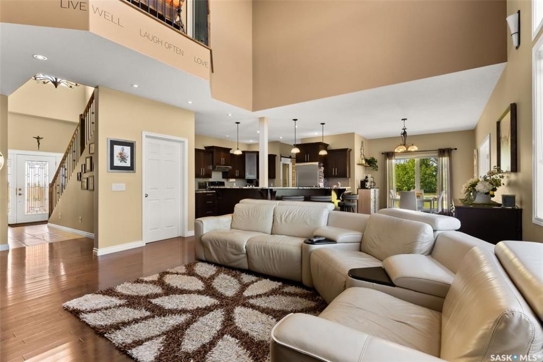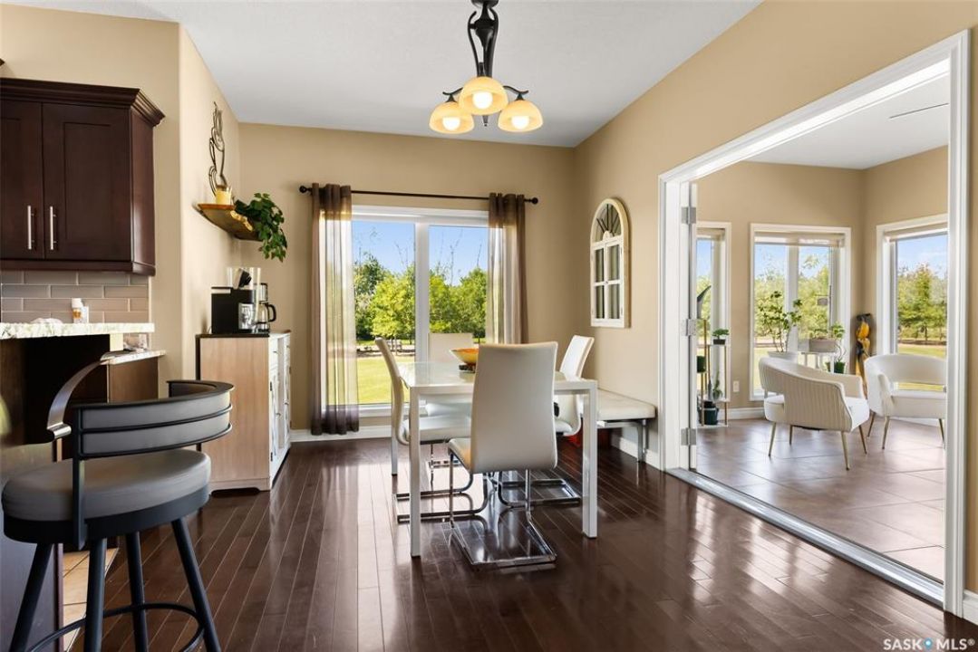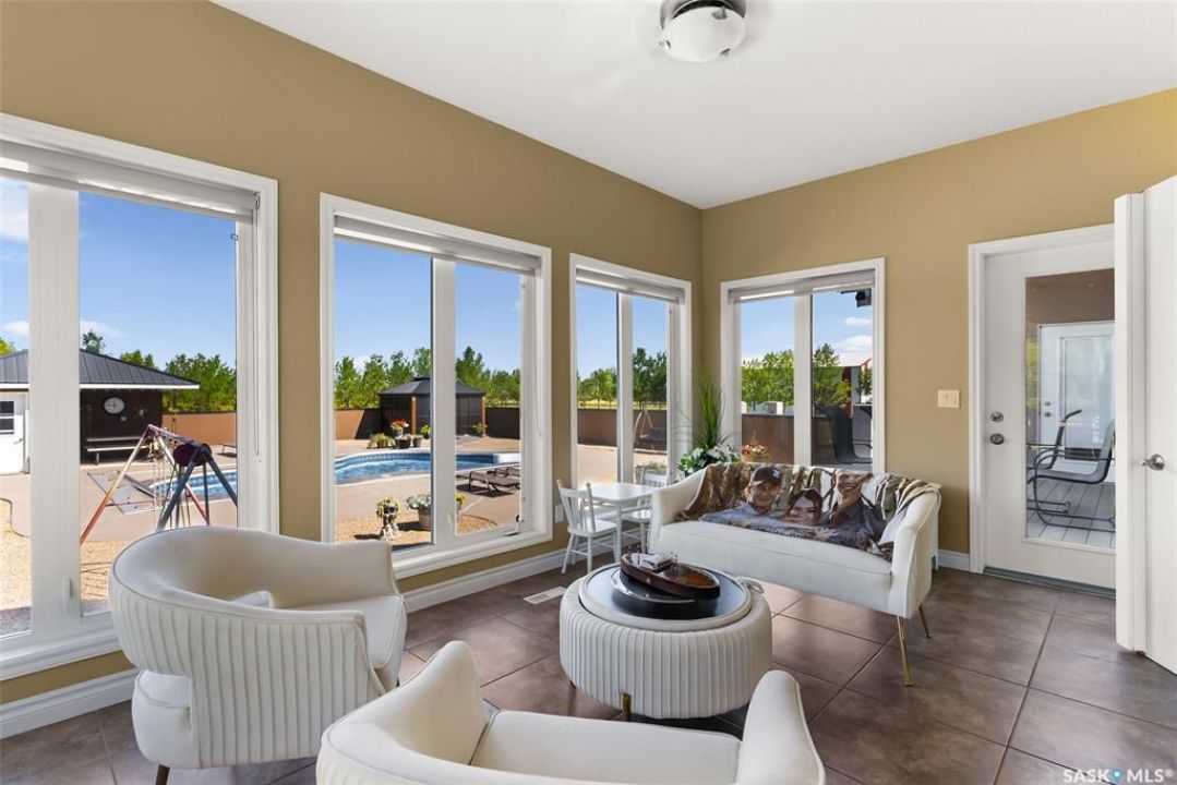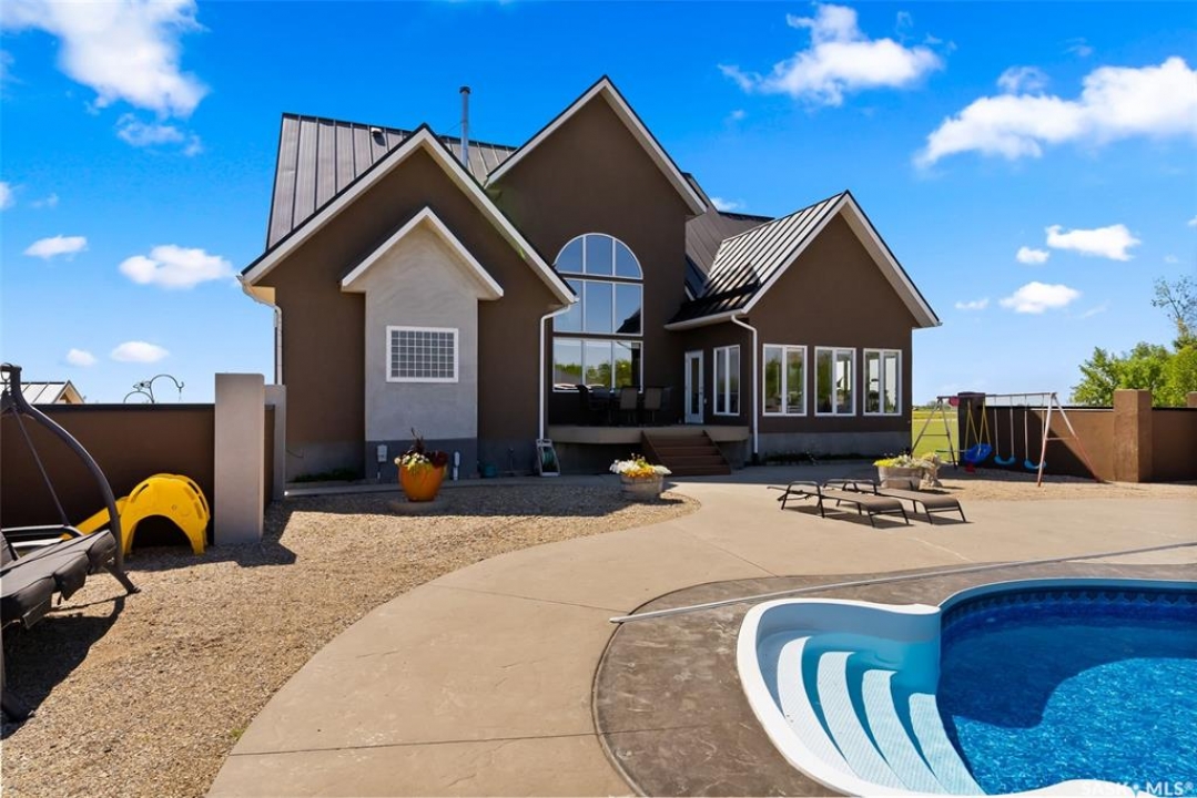 Stunning acreage property 7 minutes North of Estevan. Customized acreage developed in 2010 with exceptional family home, beautiful yard with in-ground pool and large shop. 1 3/4 story, 3072 square foot home with 5 bedrooms, 4 baths, open concept with multiple features and upgrades including large vaulted main living space with custom kitchen/dining area/iving room with wood burning fireplace and 2 story windows overlooking the swimming pool/4 season sun room/good size office-flex room/bathroom and pantry area. Large main floor primary bedroom with 2 closets/large ensuite with tub and shower and door that accesses the rear deck/pool area. The 2nd floor boasts 3 large bedrooms/bathroom and huge family-theatre room. The fully developed basement features heated custom concrete flooring with a massive recreation room/bedroom/bathroom and den. 2 car attached garage with in-floor heat and 42x60 shop with concrete floor/large over head door/geothermal loops in-floor heat (needs unit to operate) The backyard features a large rear deck, in-ground swimming pool, pool house and gazebo. Landscaped and treed yard, fire pit area and much much more. ***3 acre parcel listed that would need to be subdivided. Could be attached and purchased with additional 157 acre farm land parcel (listed separately)
