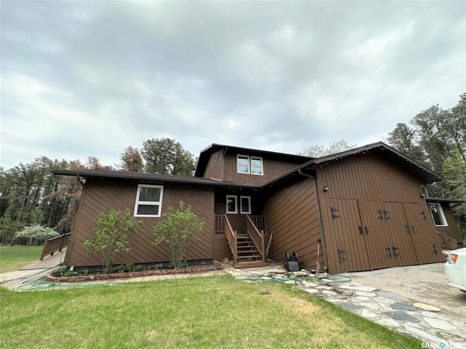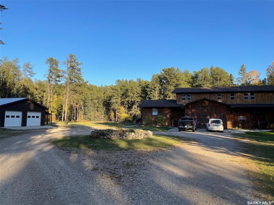 Looking for a spacious home with room to grow or have you outgrown your present house? Just five minutes from Hudson Bay, SK, tucked among pine trees, the Jennings property offers an impressive 7 bedrooms and 4 bathrooms—perfect for large families or those who love to entertain. The primary suite includes its own private 3-piece ensuite, while the main floor features a convenient laundry room and an additional bedroom. A standout feature is the separate suite on the main level, complete with private entrance, two access points, and approximately 700 sq ft of living space—ideal for rental income or multi-generational living. Set on 5.06 acres of sandy soil, this property is a gardener's dream. Some of the best water in the area. It also includes both heated and cold storage shops, with the heated shop boasting in-floor heating. The attached double garage offers direct access to the basement from both inside and outside the home. Surrounded by hundreds of mature pine trees, you'll enjoy peace, privacy, and natural beauty year-round.Don't miss your chance to explore this exceptional property—schedule a viewing or request a virtual tour today.