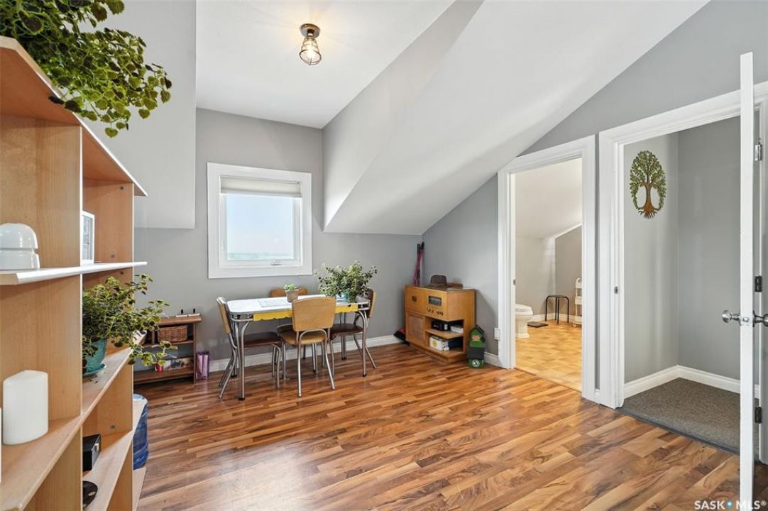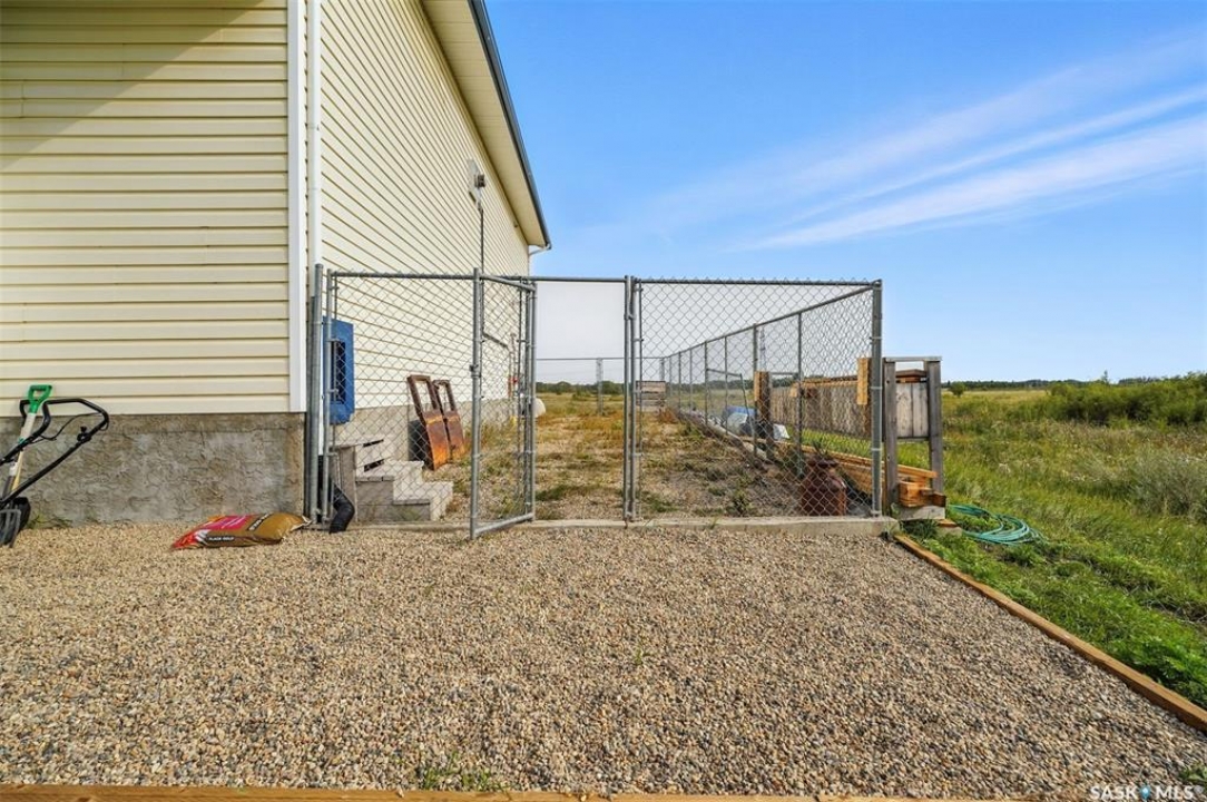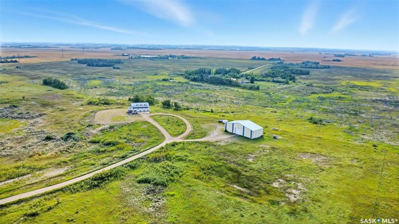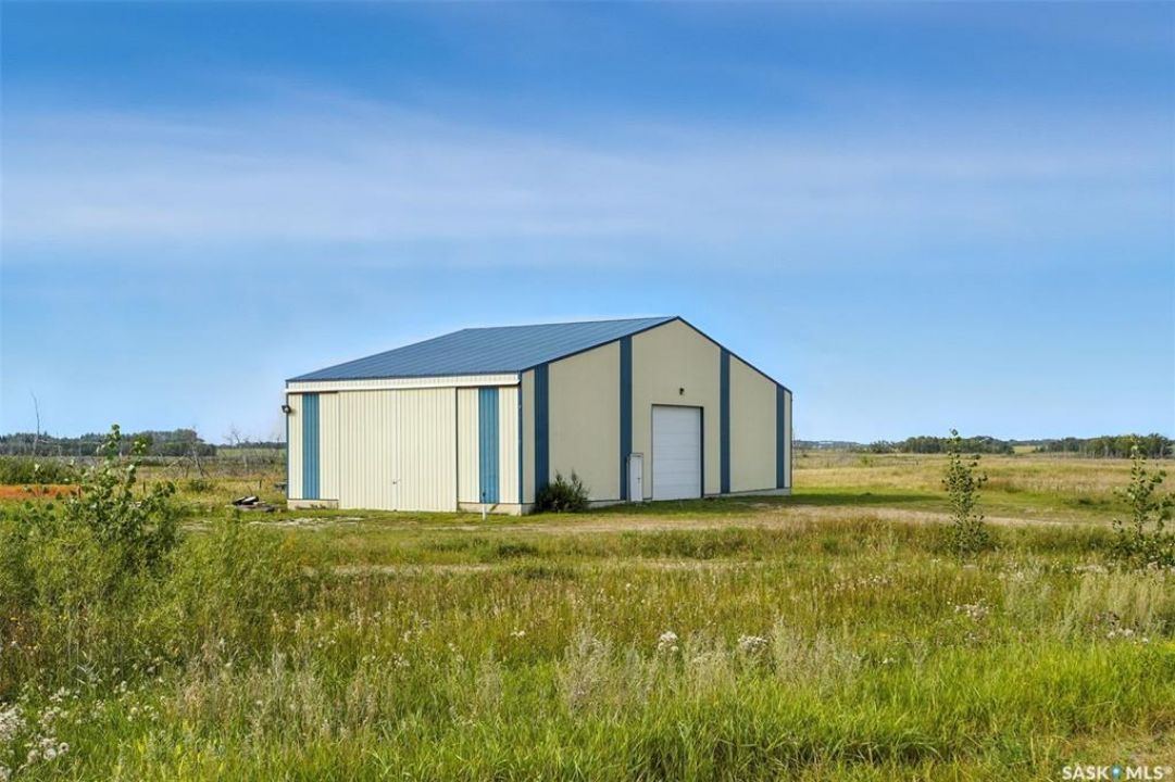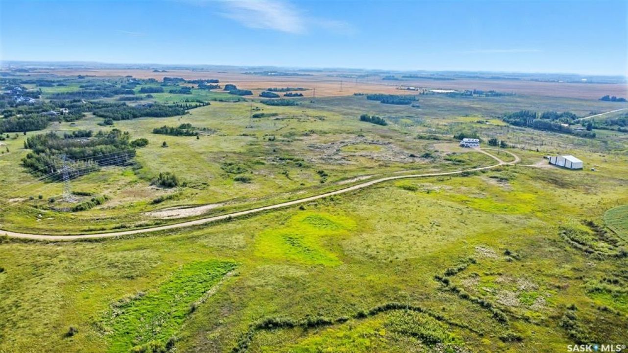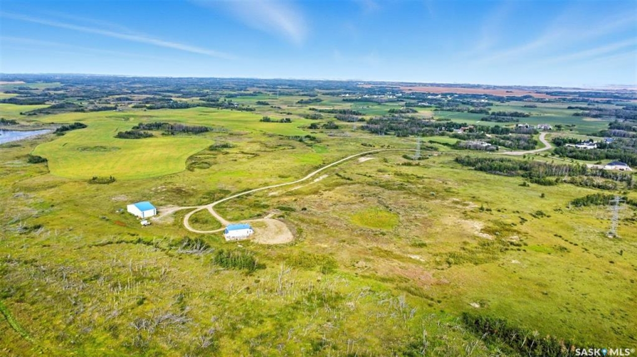 This 80-acre property, located just 5 km from Saskatoon and directly off a paved road, offers a rare combination of privacy, prime location, and future development potential. Providing the perfect balance of seclusion and convenience, it is tucked away from surrounding properties, among the desirable Hidden Ridge Estates acreages. The property features a Carriage house, 1232 sq. ft. residence with an open-concept, loft-style design. The three-car (24'x36')heated garage also serves as utility room for drip system holding tank, HWT and connects to an indoor kennel and dog run. There is a spacious mudroom, 2 pc bathroom and office/laundry on the ground floor. The second floor features an open concept kitchen/ dining room and spacious living room with great views of the property. The primary bedroom has lots of space for another work space. In the evening, the Saskatoon city lights provide a spectacular view of the western sky. Additionally, there is a 40' x 80' shop divided into 3 sections. The center section is fully equipped with in-floor heating, power and roughed in plumbing and two side storage sections are used for cold storage, providing ample space for business operations, hobbies, or equipment storage. The property also has perimeter fencing. Zoned D-Agricultural District (DAG1), this parcel benefits from low taxes and offers a variety of discretionary uses, including residential, livestock, equestrian, bed and breakfast or a home-based business. The property also has potential for subdivision and development within the P4G planning district. The zoning allows for multi-parcel residential subdivision. This makes it an excellent opportunity for developers or use as a potential investment for future resale. This acreage combines a private, peaceful setting with easy access to urban amenities. Call today