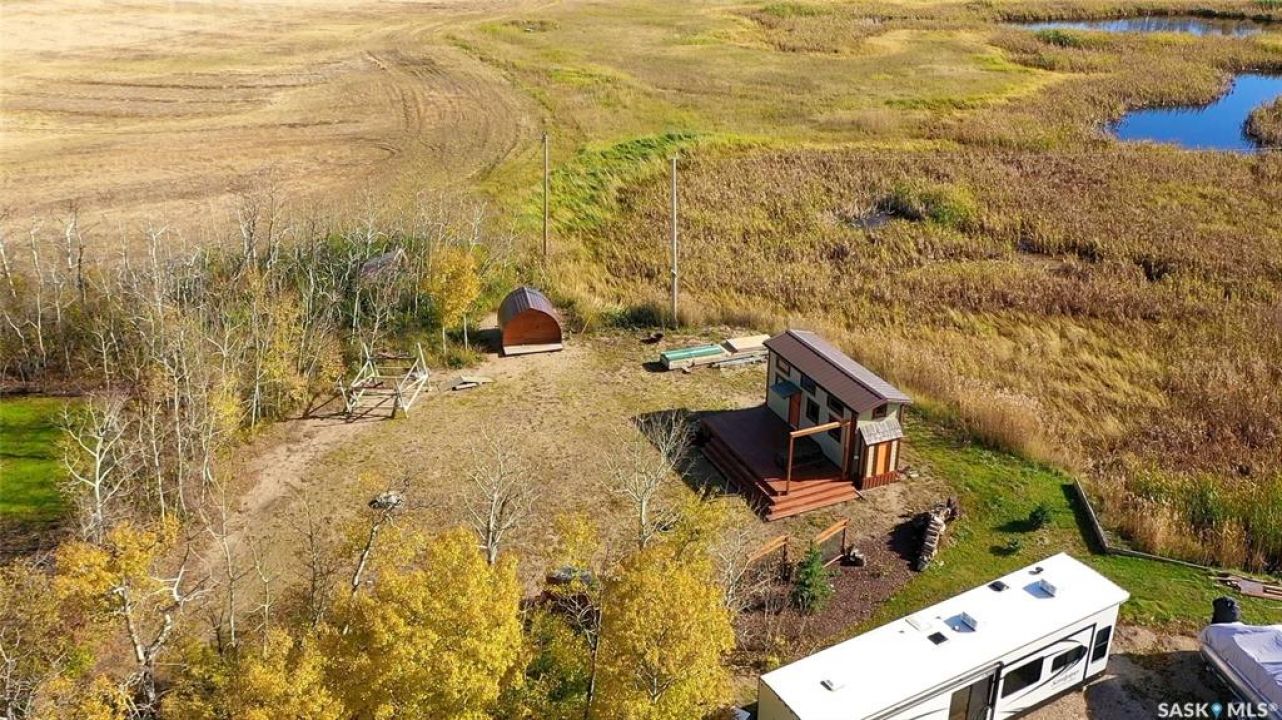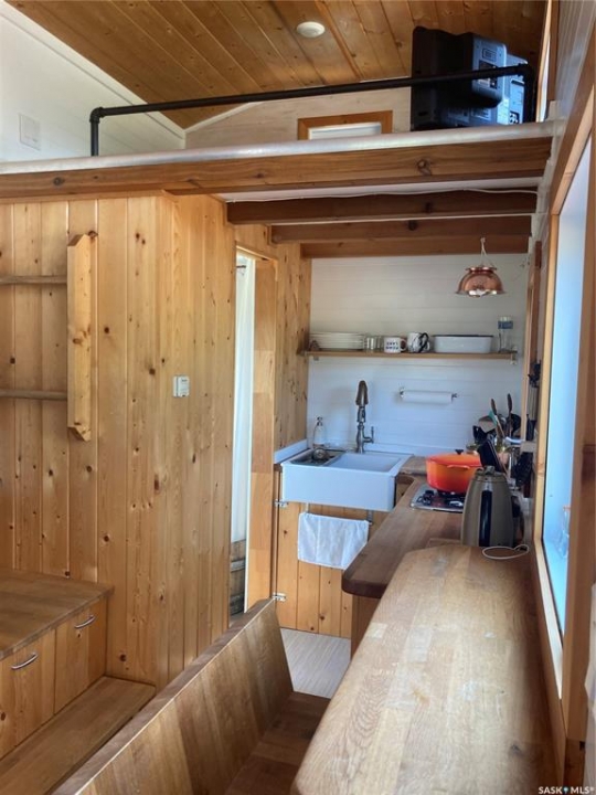307 Travis Ave, Pavillion Beach is on the popular Fishing Lake Saskatchewan near Wadena, Wynyard and Foam Lake. This property offers a large private quiet lot that is pie shaped in a little bay. The lot backs farmland, and is well treed between the neighbours. The bonus is the trees are on this property so up to you to keep. The property shows as a LOT but there is a tiny-house on the property that hasn't moved for years. The current owners use it as a cabin and claim with the multiple layers of tin, and insulation in the floor the place handles weather well and is more mouse-proof than even a new RV in their experience. The tiny home offers a surprising amount of storage, kitchen prep space, and a cozy living room area. The two lofts offers room for two beds, and the propane heat offers plenty of warmth in the cool summer nights. The bathroom offers a unique show barrel basin for a 3-piece washroom. Out the door is a nice deck with a privacy wall and some storage underneath. The firepit area leads to an outdoor bar/shed, and a garden area with more privacy screens. The remaining property offers plenty of space for parking, or room for a yard or cabin. There is a powered shed on the southeast side, and near the entrance to the lot is a power panel with RV power, and a spot for RV septic direct to the holding tank. Roll into a turnkey lake getaway. Tiny home has water storage and pump (no well currently).