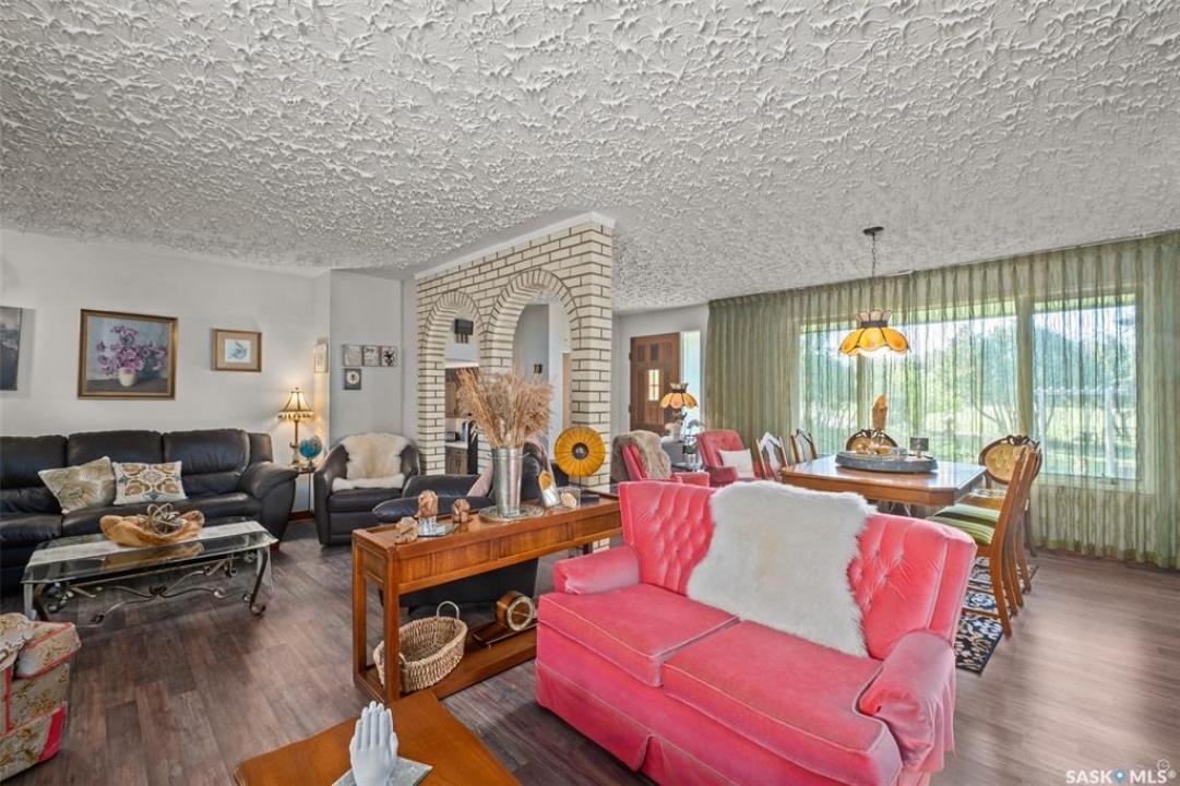 A Truly One-of-a-Kind Opportunity! Resting on 5 acres of land overlooking the North Saskatchewan River, this iconic property is being offered for sale for the very first time.The 2,191 sq. ft. 1 � storey residence features 7 bedrooms, 3 bathrooms, rural water, and an abundance of living space to accommodate families of any size. Step outside and enjoy private brick patios with multiple dining and sitting areas, perfect for both entertaining and quiet relaxation.This unique acreage is also equipped with impressive outbuildings, including: 24' x 26' two-car detached garage, 32' x 56' steel frame quonset with concrete floor, 15.5' x 48' light commercial utility building & a 14' x 46' mezzanine. Located just minutes from the city limits, this property offers the peace of country living with all the conveniences of city amenities close at hand.