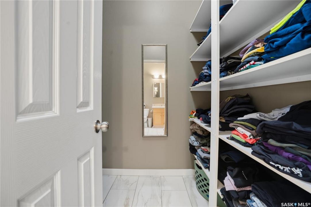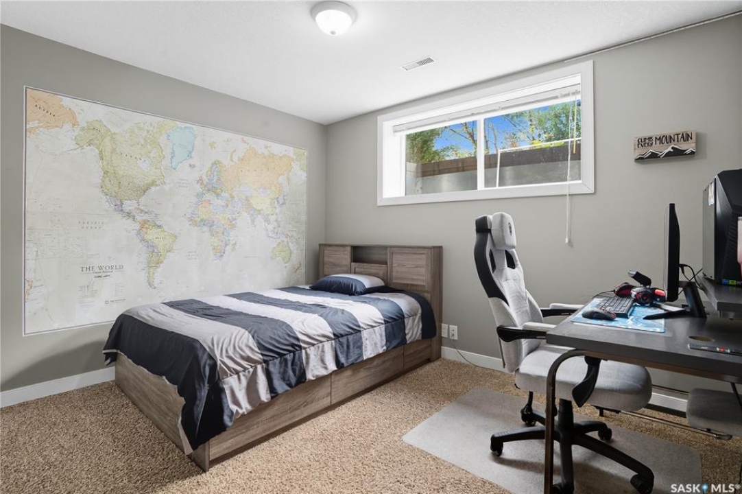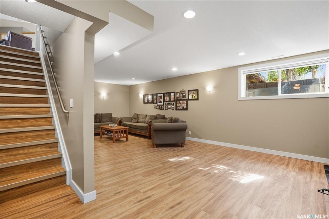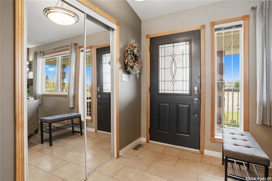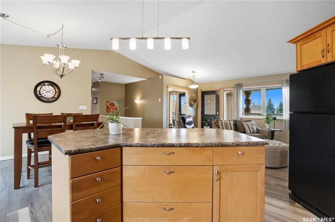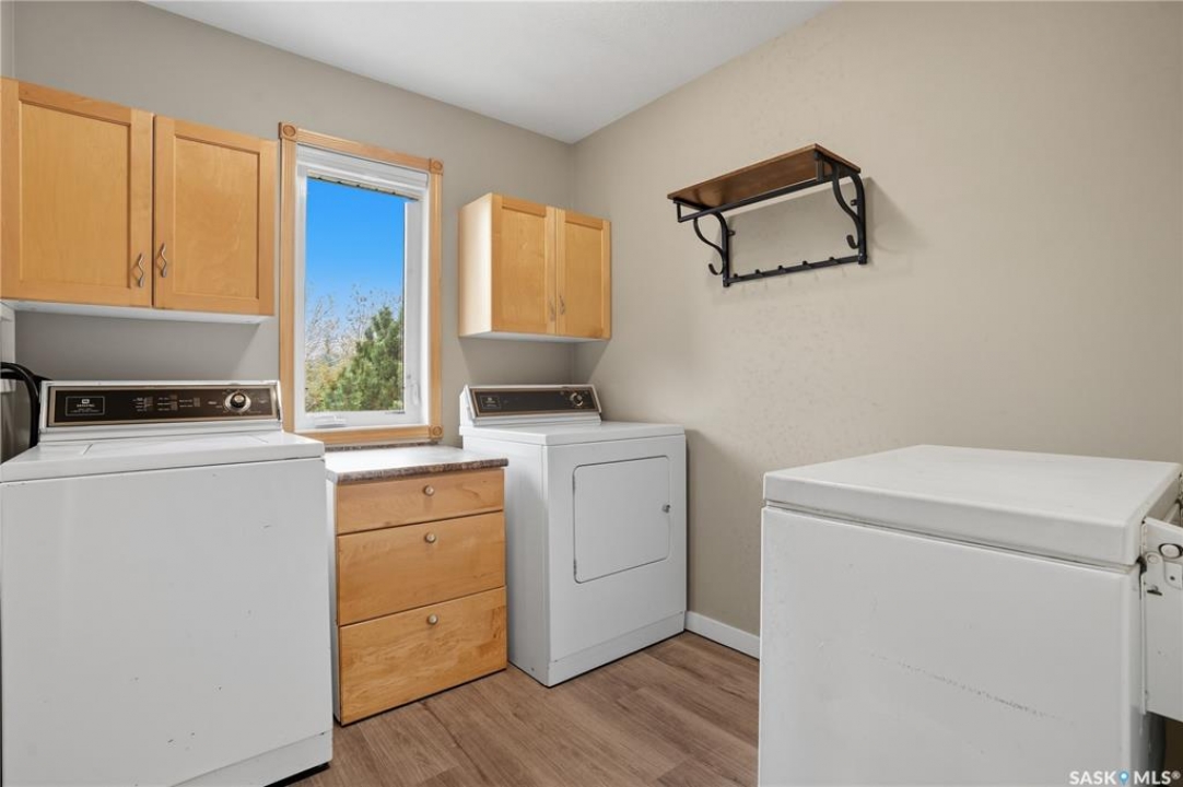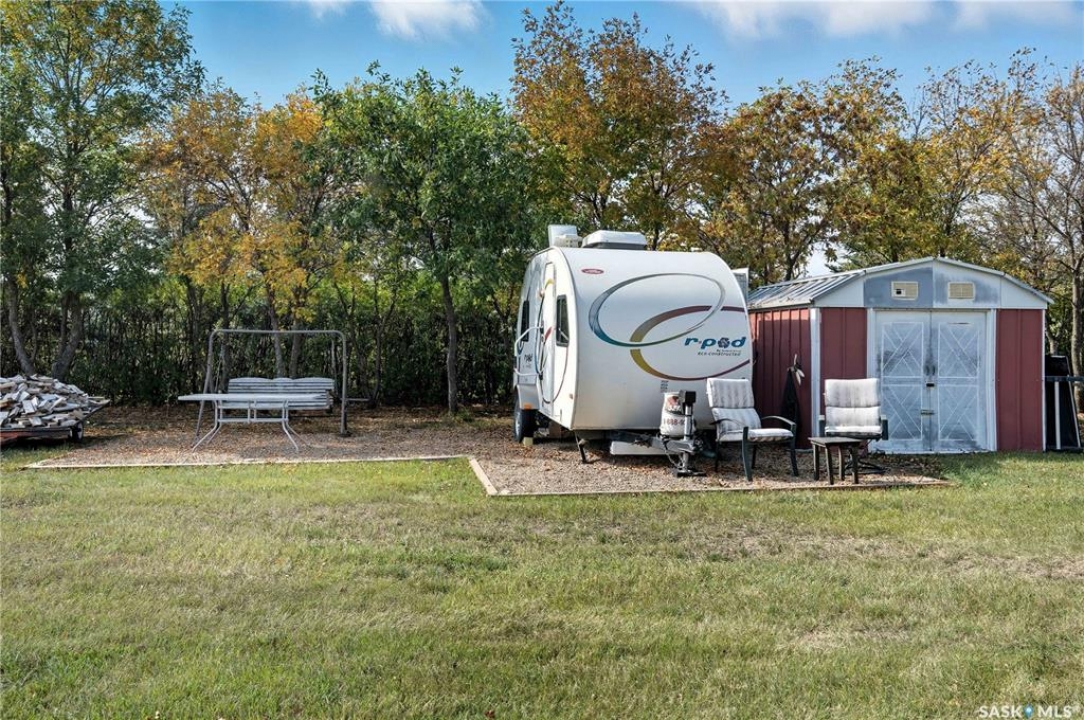 Tucked into Valley Ridge Estates and surrounded by mature trees, shrubs and natural screening! This private 2.77 acre property offers country living, while being only seconds away from Moose Jaw city limits and walking distance to the brand new Coteau Hills elementary school. Built in 2002 and lovingly maintained, this home features a comfortable main floor with an open concept kitchen/dining and living room featuring vaulted ceilings and a gas fireplace. The primary bedroom boasts a generous ensuite with a Jacuzzi tub, standalone shower and a large walk-in closet. Another full bathroom, a separate laundry room as well as an additional bedroom complete the main floor living space. The fully finished lower level is bright and airy thanks to the oversized windows found throughout. A large family room, three additional good size bedrooms and another 4 piece bath with jacuzzi tub complete the lower level. The double car attached garage plus an additional 16' x 24' detached garage provide ample storage for all of your toys and equipment. The rear of the home features a large south facing deck and a lower patio area perfect for entertaining or enjoying your hot tub(included). This home is move in ready, the only thing left to do is put your feet up and enjoy the peace and tranquility. Recent updates include shingles (2020), new furnace (2024), hot water heater (2022), new flooring in basement (2017), new flooring upstairs (2019). Property is on Municipal water.