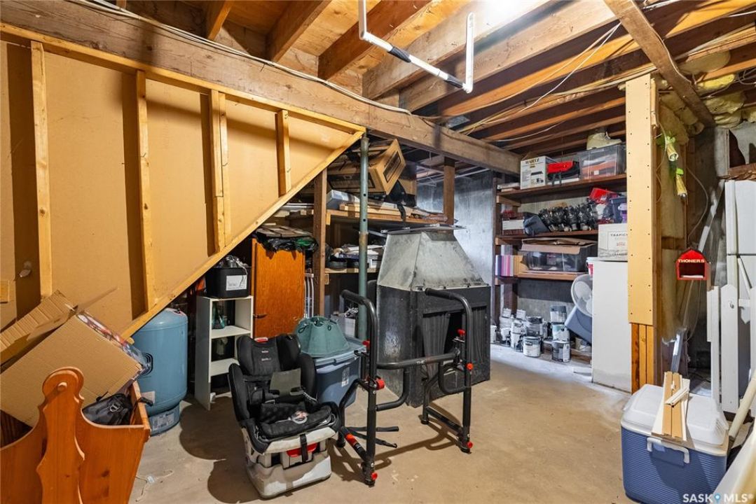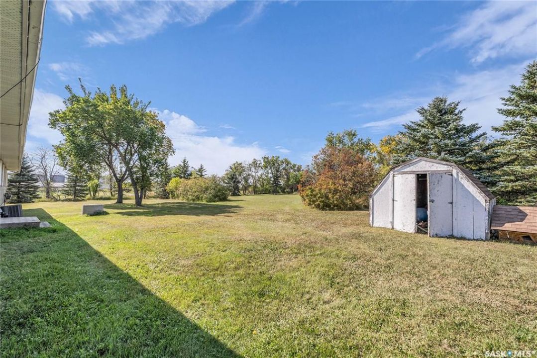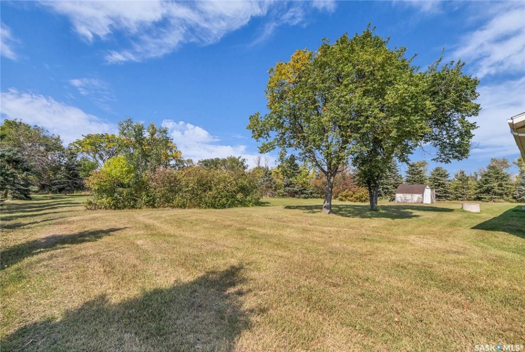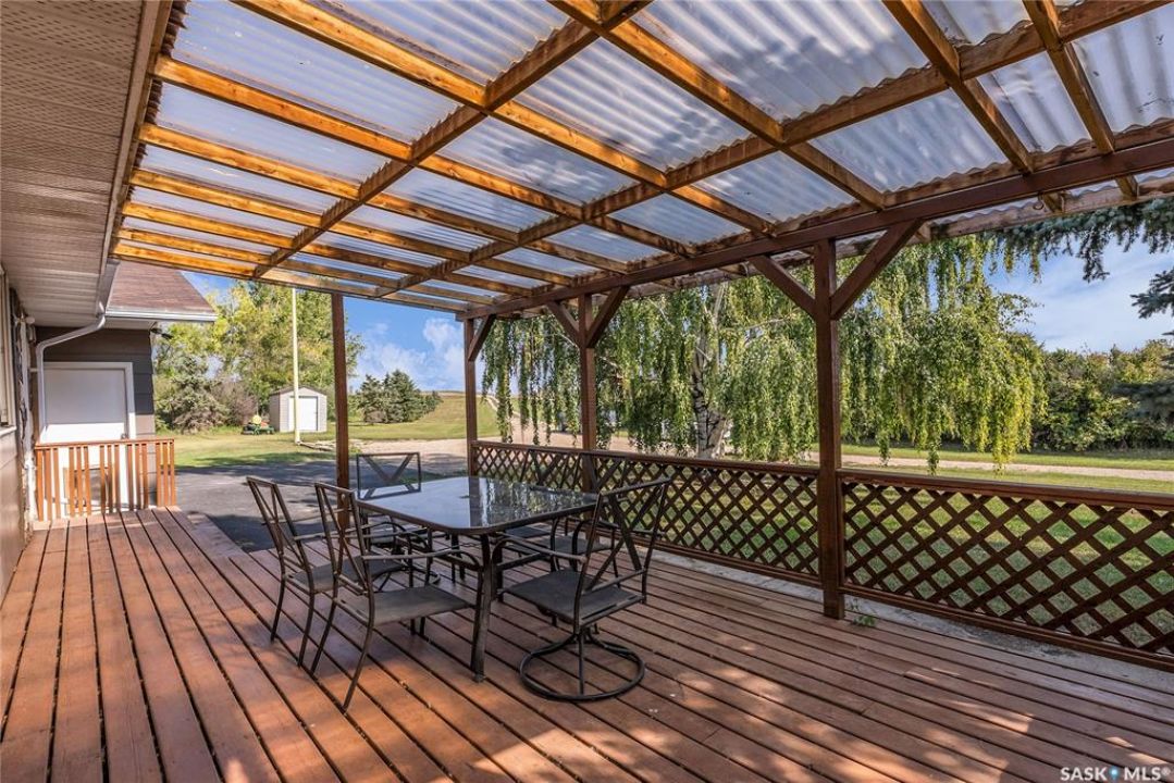 You will appreciate this family sized, country bungalow located SE of Allan and or SW of Young. This 10 acre mature treed yard site is a great place to raise a family or enjoy what country living has to offer. When you enter this home, you are welcomed to a spacious mud room with cabinetry and storage spaces for clothes and footwear. There is a home office off the mud room with a view of the backyard. The kitchen and open eating area is a great space to gather around the kitchen table. The island provides a great spot to prepare the meals. Sliding doors for quick access to the east facing deck from the dining area. Large living room and three spacious bedrooms, 5 piece bath (2 sinks) and a dedicated main floor laundry room with a sink and cabinetry. The basement features a large family room and an area for games, 3 pc bath, storage and utility room. The insulted attached garage with direct entry is a great benefit. Come and view this great property. You could be spending your next Christmas in the country?
