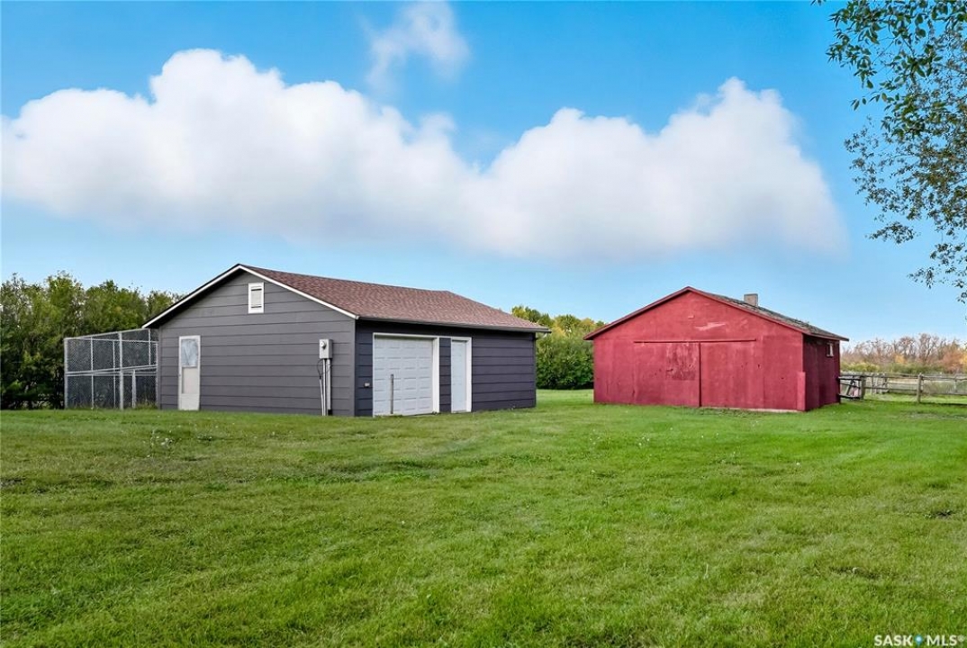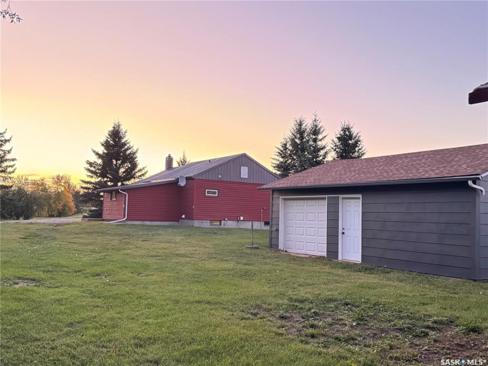 Located only 6km from Osler, tucked into this well treed acreage you will find this 1120sq ft renovated bungalow. If you have been searching for a property close to Saskatoon that can accommodate horses, chickens or you desire more space for hobbies, then this is a great option for you. The property includes a double detached garage, shed, a barn with corrals and pasture land on just under 10 acres. Over recent years 4 bedroom, 2 bathroom home has received quite a facelift with new windows, metal roof, vinyl siding, updated front door and front deck with perennial flower beds(2024). When you enter the home you will immediately notice the spacious front porch with fresh paint, vinyl flooring and space to accommodate everyone in the family and their gear too! The functional kitchen is clean and tidy and has updated appliances. Hosting big family get togethers is no problem with the spacious dining and living rooms with beautiful cottage like views of the property. The main bathroom has been completely renovated and features a beautiful soaker tub with surround, black accessories, vinyl flooring, new toilet, modern vanity, mirror, fan and lighting. The master bedroom is complete with new walk-in closet, vinyl flooring, recessed lighting, 2 windows and fresh paint. The second bedroom has also been similarly upgraded to match and would be perfect for a childs room or office. The basement offers a family room with new carpet and paint, with a newer laundry area located just off of it as well. An entirely new 3 piece bathroom recently developed is an extra bonus. There is 2 additional bedrooms (one of which does not have a closet) to utilize as you wish. This home has been well taken care of and is full of possibilities. Other improvements include newer furnace and water heater updated trim, lighting. With extras like central air conditioning, and city water, this property won't last long. Presentation of offer will be on Wednesday, September 24, 8pm.