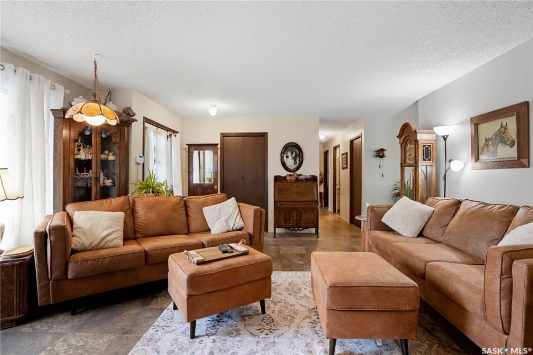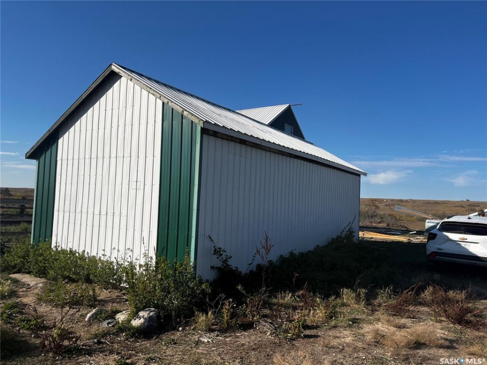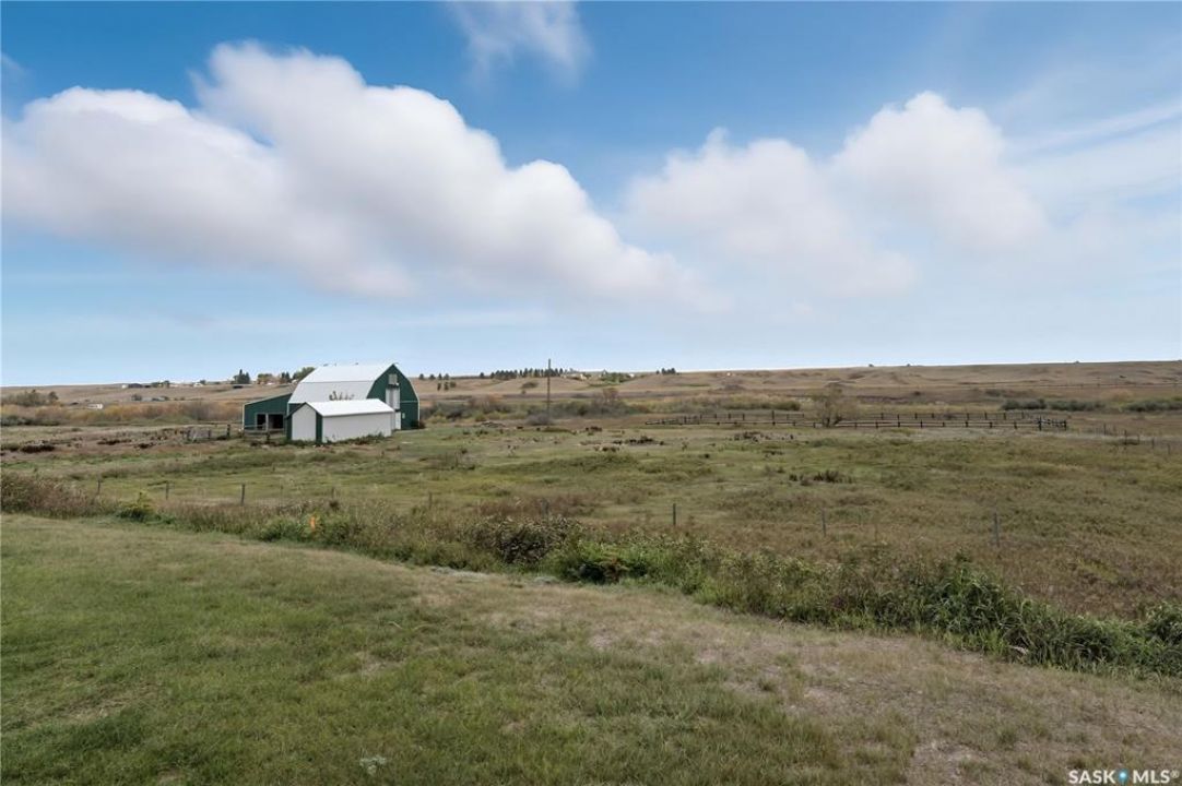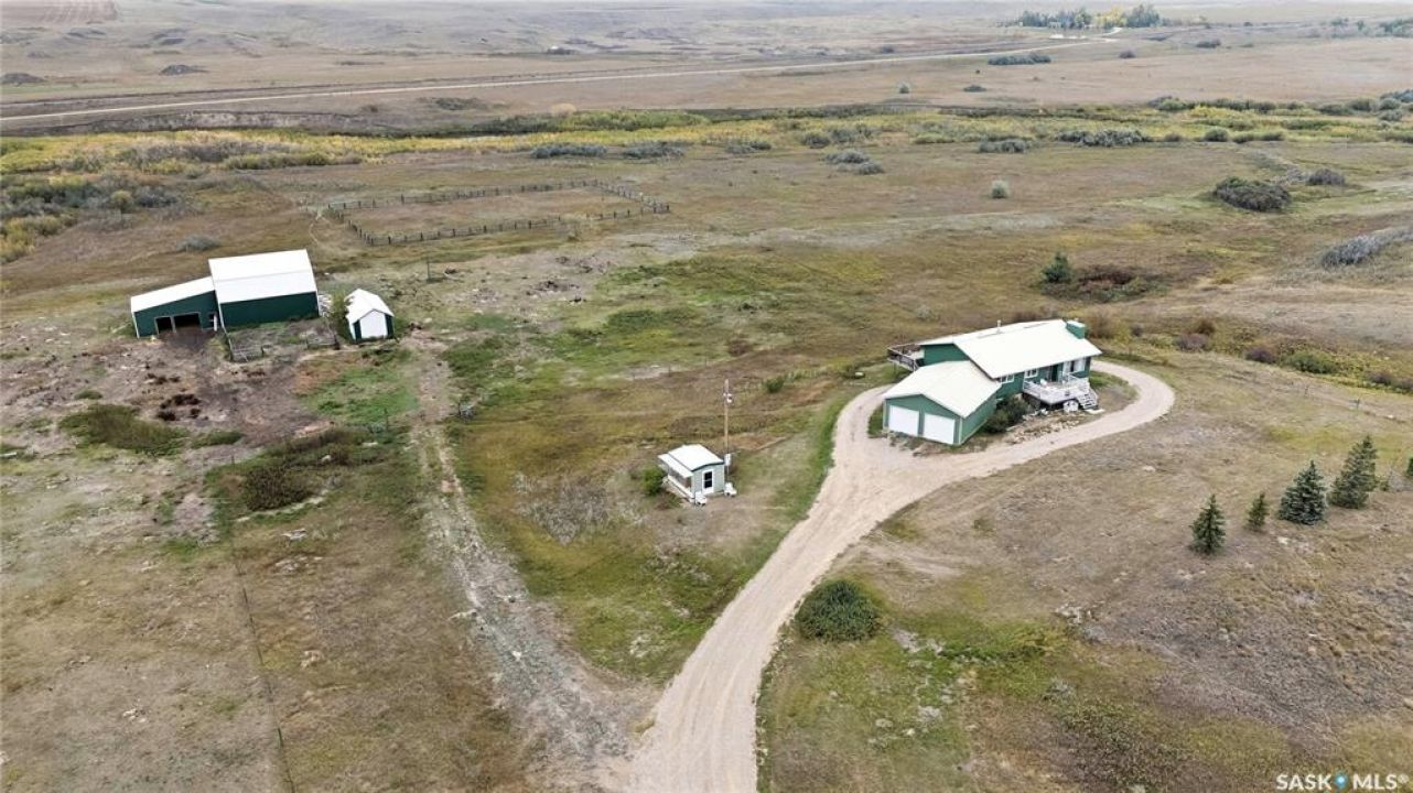 Exceptional Acreage Living – Just Minutes from Moose Jaw!! Discover the perfect blend of rural tranquility and modern convenience with this stunning 49.6-acre property, located only minutes east of Moose Jaw. Offering ample space and a thoughtfully designed home, this acreage is ideal for those seeking comfort, functionality, and the beauty of country living. This 1,334 sq. ft. bungalow features a spacious living room and an open-concept kitchen and dining area, creating a bright and welcoming layout. The home offers three comfortable bedrooms and three bathrooms, making it an ideal choice for family living, with a partially finished basement open for your design. Expansive north and south-facing decks provide the perfect setting to take in the prairie views, relax with your morning coffee, or host gatherings in every season. There is a 14 x 32 steel sided building perfect for all your storage needs down close to the barn. The Equestrian and hobby farm enthusiasts will appreciate the barn with six stalls, a fully usable loft area, attached horse shelter that are both sheeted with steel along with a large corral that was used in the past for outdoor riding arena. There is an automatic waterer at the barn along with a hydrant inside the barn to water all your animals. Acreage also offers endless potential for storage, livestock, or future development. A private well with sustainable water supply (and a filtration system), that you can use for your home yard and animals to complete this acreage's self-sufficient appeal. Whether you're looking for a family home with room to grow, a hobby farm, or simply the peace of the countryside within minutes of city amenities, this property delivers it all!! The exterior was painted last year.