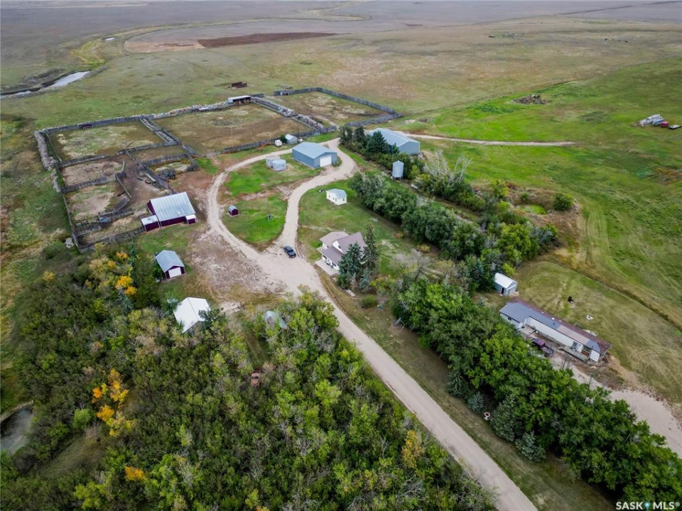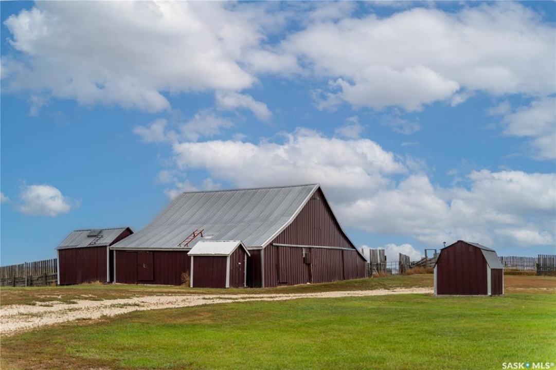 Opportunity knocks in the Holdfast, SK area — a nicely configured ranching yard site on one quarter section of mixed-use land in RM of Sarnia #221. Ideal for expanding your cattle operation or starting a hobby ranch, this property combines infrastructure, reliable water, and prairie charm. Located on the west side of Last Mountain Lake, it also offers great nearby recreation. SAMA field sheets report 125 cultivated acres, currently in tame hay but suitable for crop production. The land is partially fenced with 4-strand barbed wire in excellent condition; about 57 acres are not yet fenced and could add grazing capacity. Water is key, and this property is well supplied with an artesian well, another water well, and two spring-fed dugouts. The 1,800 sq ft home, built in 1915, has been very well cared for and offers 4 bedrooms, 2 bathrooms, a spacious living room, south-facing rec room, and a private primary bedroom tucked away from the main living area. The yard is sheltered by mature trees and well arranged for mixed farming. Outbuildings include: 40x56 quonset with power, 78x42 pole shed, 36x58 barn, butcher house with power & heat, 3-car detached garage, smoking shed, well house, and 3 sheds. The artesian well feeds a 400-gallon trough for livestock. Wooden corrals with gates/panels (some included) provide livestock handling. Carrying capacity for fenced land is ~15 head, with potential to increase by fencing ~57 additional acres. If you're looking for more land, two extra quarters are available separately just southwest (SK019387). With infrastructure, water, and proximity to recreation, this is an affordable opportunity to farm and ranch in a productive area.
