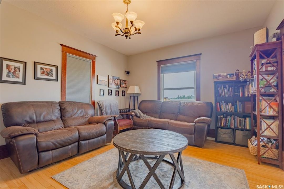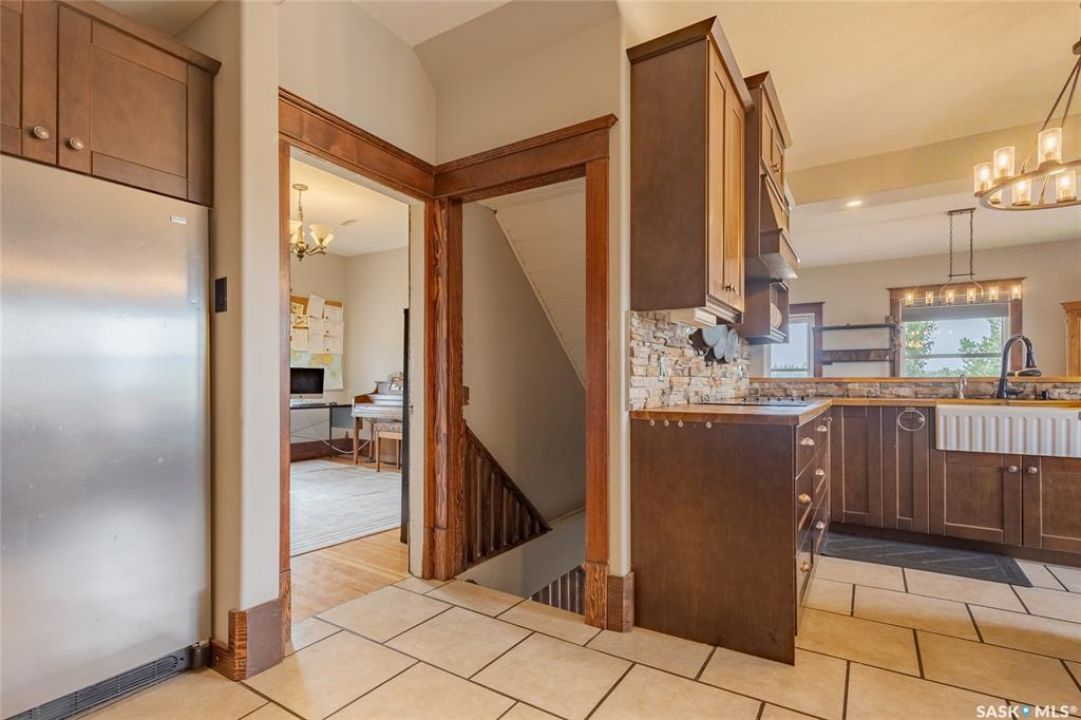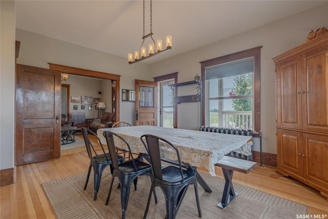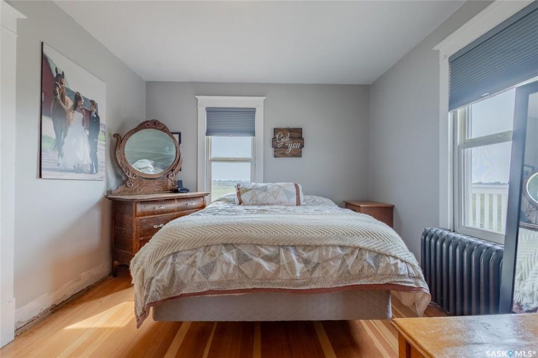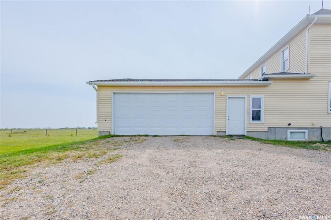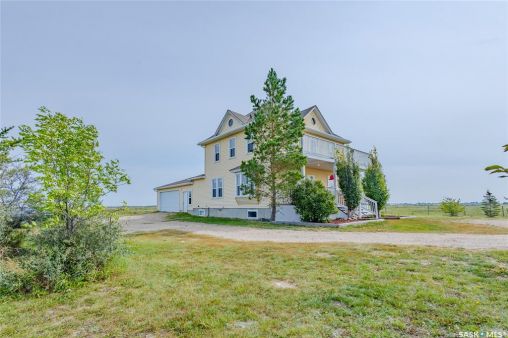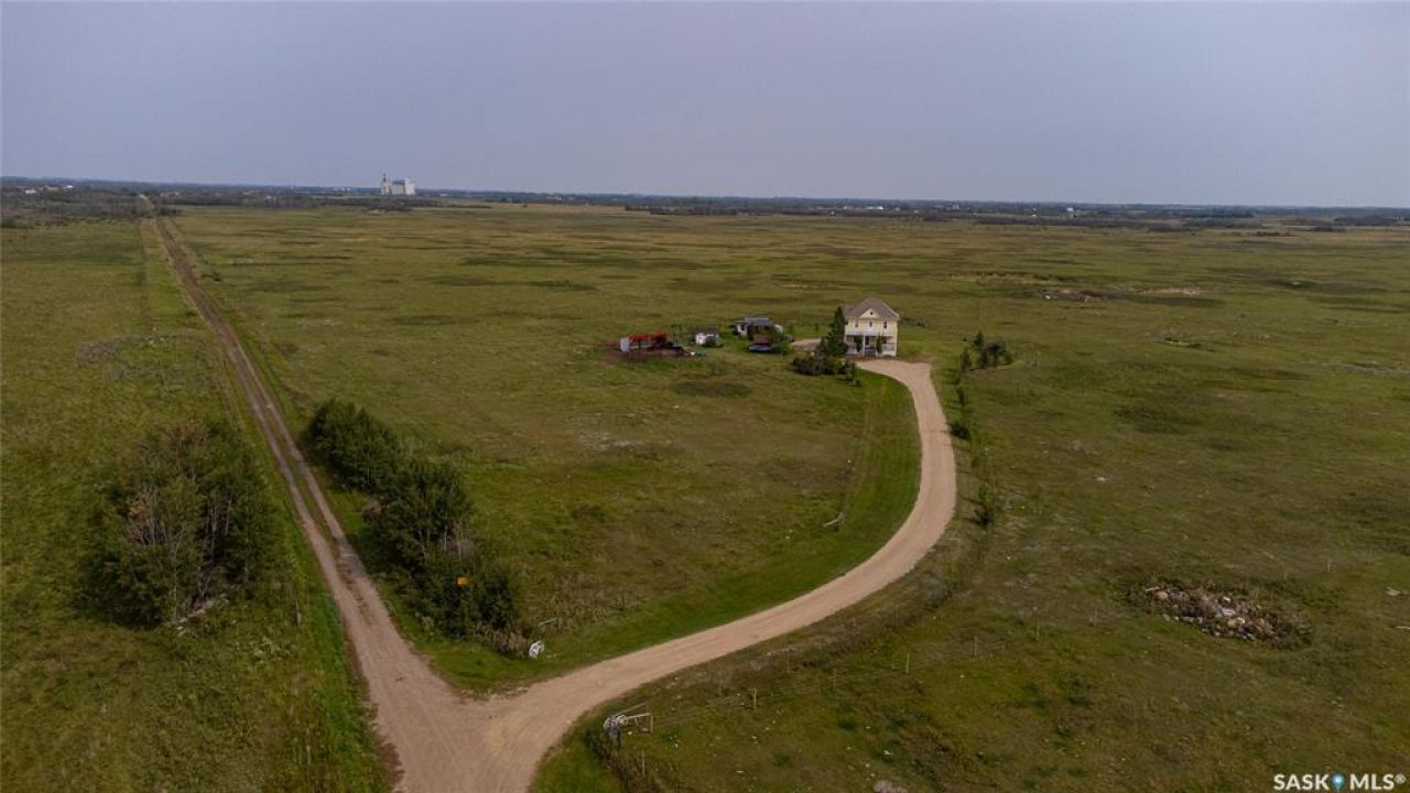 Ideally situated near Martensville just 2 km NW of the new Rec Center and a short drive to Saskatoon! This 10-acre property offers country living with nearby city amenities. Inside you're welcomed by 9' ceilings, hardwood floors, and a spacious main floor designed for everyday living and entertaining. The kitchen features a large eat-up island, additional peninsula with butcher block counters, a built-in oven, cooktop, stone backsplash, oversized fridge and stand-up freezer, plus a back prep area with loads of counter space. A generous dining room, main floor laundry with half bath, bright living area, and a den/office complete the level. Upstairs you'll find four bedrooms (one without closet), a large updated bathroom with tiled shower, and access to a second-level balcony perfect for taking in those Saskatchewan sunsets. The insulated attic provides extra storage or could be developed into a bonus room. The home was moved onto a new foundation in 2006, with egress windows in the basement offering the potential to add more bedrooms. The lower level also has a spacious rec room,, bathroom, and plenty of storage. A triple attached garage was added in 2009, 30'x30', fully insulated with in-floor heat and a floor drain. The acreage is fully fenced and connected to city water. Recent upgrades include newer windows and shingles. The yard includes a chicken coop, corral, and shed, with a nicely maintained lawn front and back and is fully fenced! Call your Realtor today to book your private showing!
