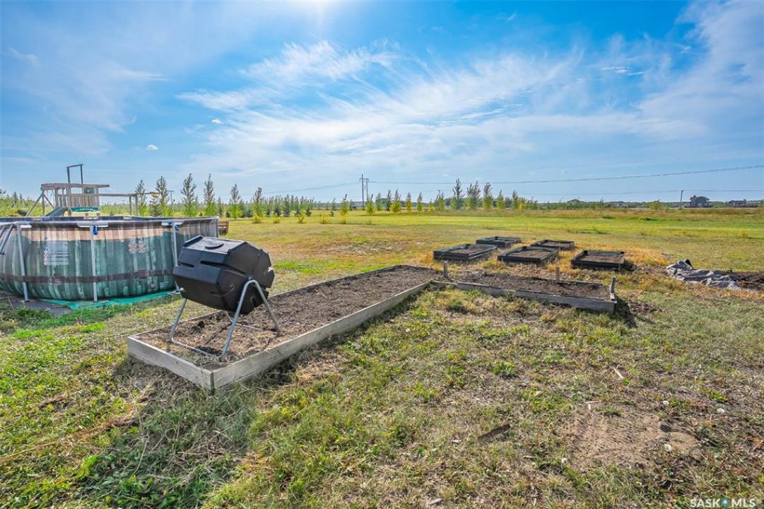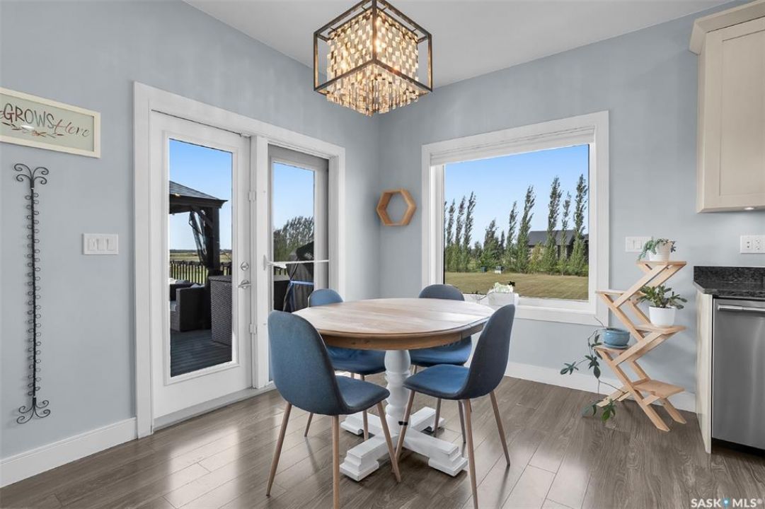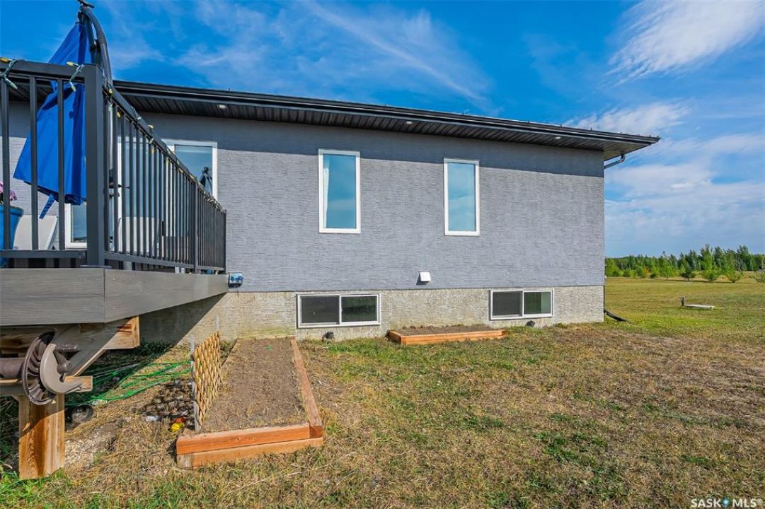 Welcome to this South Country Estates acreage, just 10 minutes south of Saskatoon off HWY 11 in the RM of Dundurn. This 1,348sqft custom bungalow blends modern comfort with country charm. The main floor boasts an open layout with a bright living room, cozy fireplace, and stylish kitchen featuring granite counters, island, and walk-in pantry. The dining area leads to a west-facing deck with gazebo and natural gas hookup—ideal for entertaining. The primary suite includes a walk-in closet and 4-pc ensuite, with two more bedrooms completing the main floor. The basement offers excellent potential, with a family room, games area, 4-pc bath, laundry, den, and 4th bedroom awaiting your finishing touches to the ceiling. A heated 24x26 garage with 8-ft door provides ample storage. Outdoors, enjoy the above-ground pool, play structure, garden beds, and wide-open space. Fibre internet, natural gas, and public water line add convenience, while Clavet School bus pickup is right at the driveway. Perfect for a growing family seeking a peaceful acreage lifestyle with an easy commute to the city.