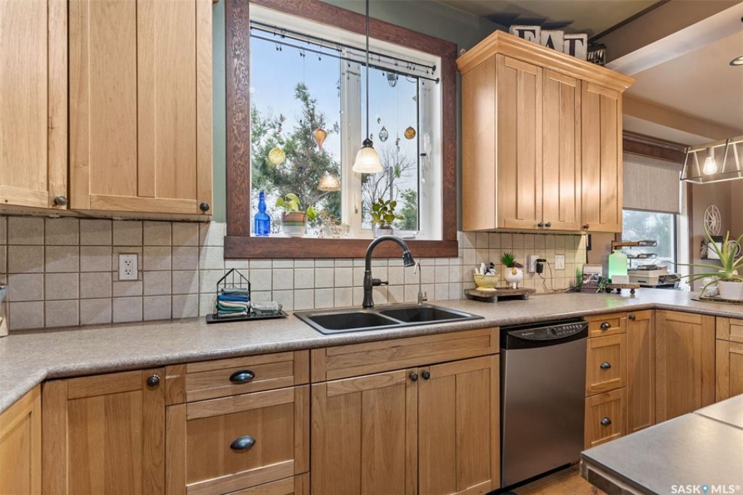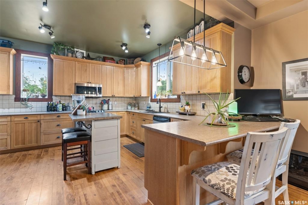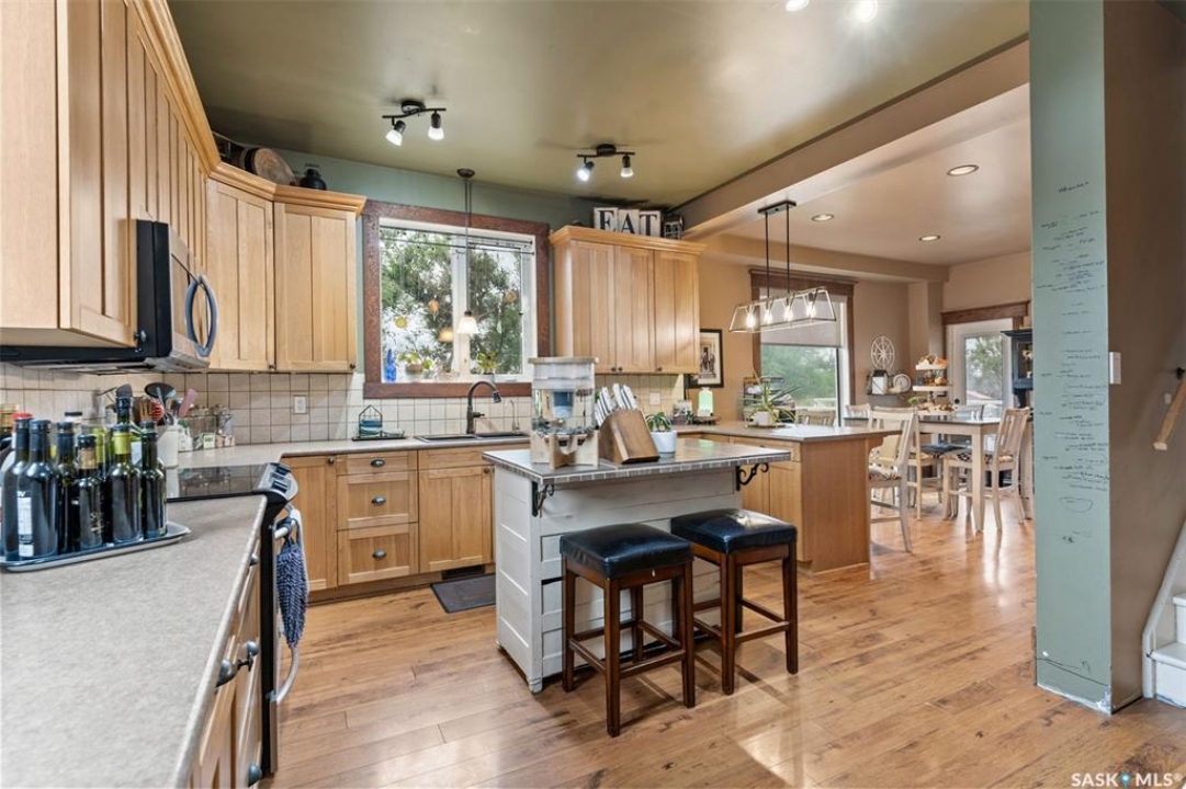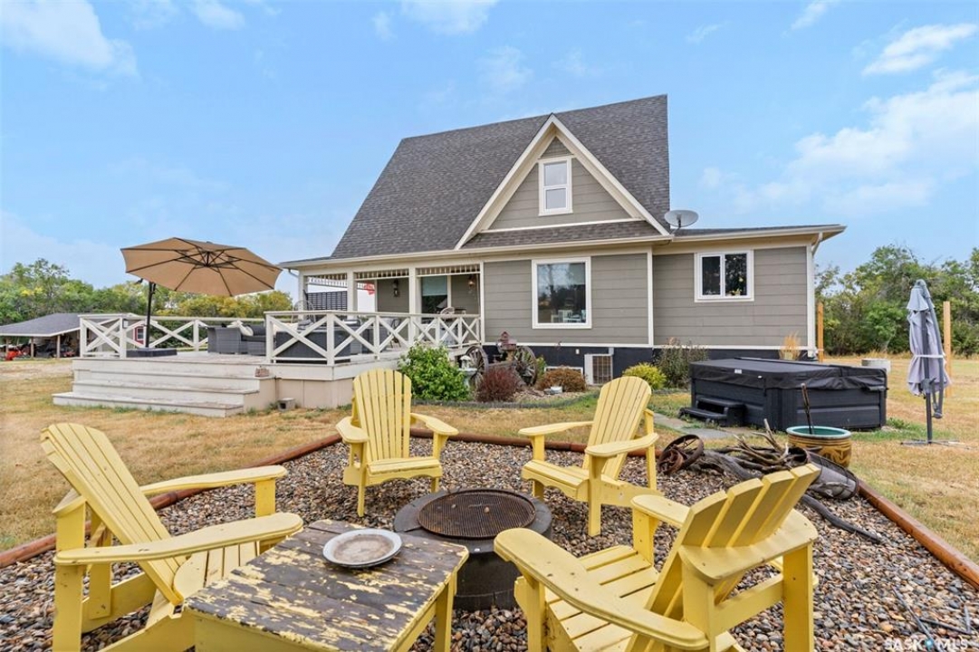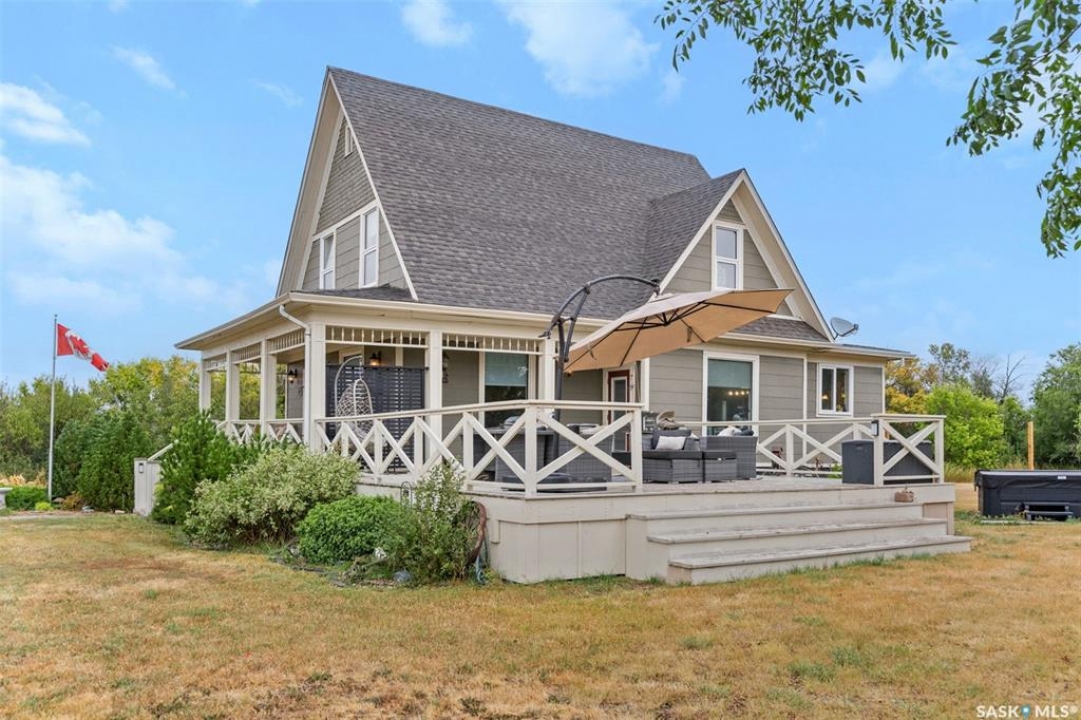 Welcome to this one-of-a-kind Eaton's character home, where classic charm meets modern living on a picturesque 13-acre estate near Lucky Lake. This meticulously restored property invites you into a world of timeless elegance, from the inviting wrap-around deck to the expansive, tree-lined yard that offers complete privacy and tranquillity. Originally relocated to its current location with a brand-new basement in 2007, this home has undergone extensive updates, including newer plumbing, wiring, and windows, ensuring that the historic beauty remains while offering today's modern conveniences. The spacious kitchen, remodelled with maple cabinetry in 2008, is a cook's dream, perfectly designed for creating memorable meals. The main living area, with large windows and 10-foot ceilings, floods with natural light, offering breathtaking views of the countryside. Upstairs, the primary suite is a peaceful retreat, complete with a cozy loft space, ideal for quiet moments or creative pursuits. The fully renovated basement, with 9-foot ceilings, provides ample space for a home gym, family room, or guest quarters. The updates continue with a high-efficiency furnace (2015) and a 2022 on-demand hot water tank for added comfort. Step outside to experience the full beauty of this property. The covered and uncovered portions of the deck are perfect for savouring the peaceful sounds of nature or watching the sunset over the rolling hills. For those dreaming of country living with modern amenities, this acreage is fully fenced for livestock and features both a pond and a dugout. An old barn and woodworking shed add even more character, while the meticulously tended gardens offer endless potential for the green thumb. With natural gas heating, municipal water, and paved access right to the property, convenience is at your fingertips. Schedule your viewing today and experience firsthand the charm, history, and peace that await you at this extraordinary acreage home!