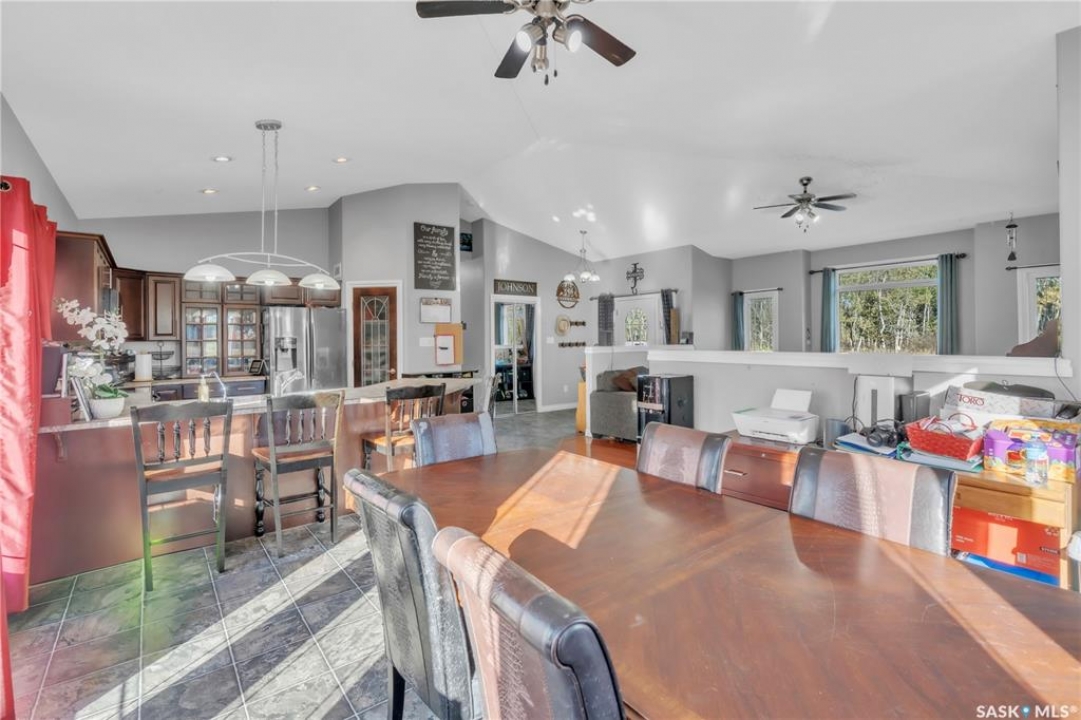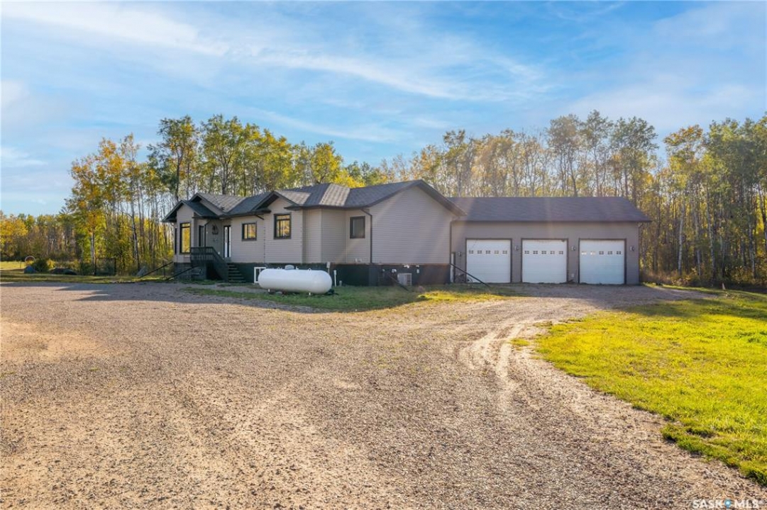 This 2008 home, boasting almost 1700sqft of main-floor living space and held by its original owner, is perfectly situated on ten acres of unparalleled privacy. With three bedrooms and two full bathrooms (plus two more bedrooms and another bathroom roughed in downstairs), step inside to an expansive open-concept layout designed for both effortless family gatherings and grand entertaining. The thoughtfully designed kitchen features sleek stainless steel appliances, rich maple espresso cabinets, and copious storage, with garden doors leading to a generous deck two tired deck. The main level hosts the tranquil primary bedroom with a walk-in closet and a large ensuite showcasing a luxurious jetted tub, along with two additional bright bedrooms, and a practical main-floor laundry room/mudroom. The basement offers exciting potential with two bedrooms and a bathroom roughed-in, ready for your custom touches making this home have the potential of a 5 bedroom/3 bathroom home. You will be impressed by the massive, dedicated hot tub room that has access from the house, featuring 20-foot ceilings, which also provides access to the attached three-car heated garage. Comfort is guaranteed year-round with in-floor heating in the garage, hot tub room, and basement, plus central air conditioning, all efficiently supported by propane heat, a septic tank and open discharge, a drilled well, and a recently installed (2023) reverse osmosis system for pristine water.
