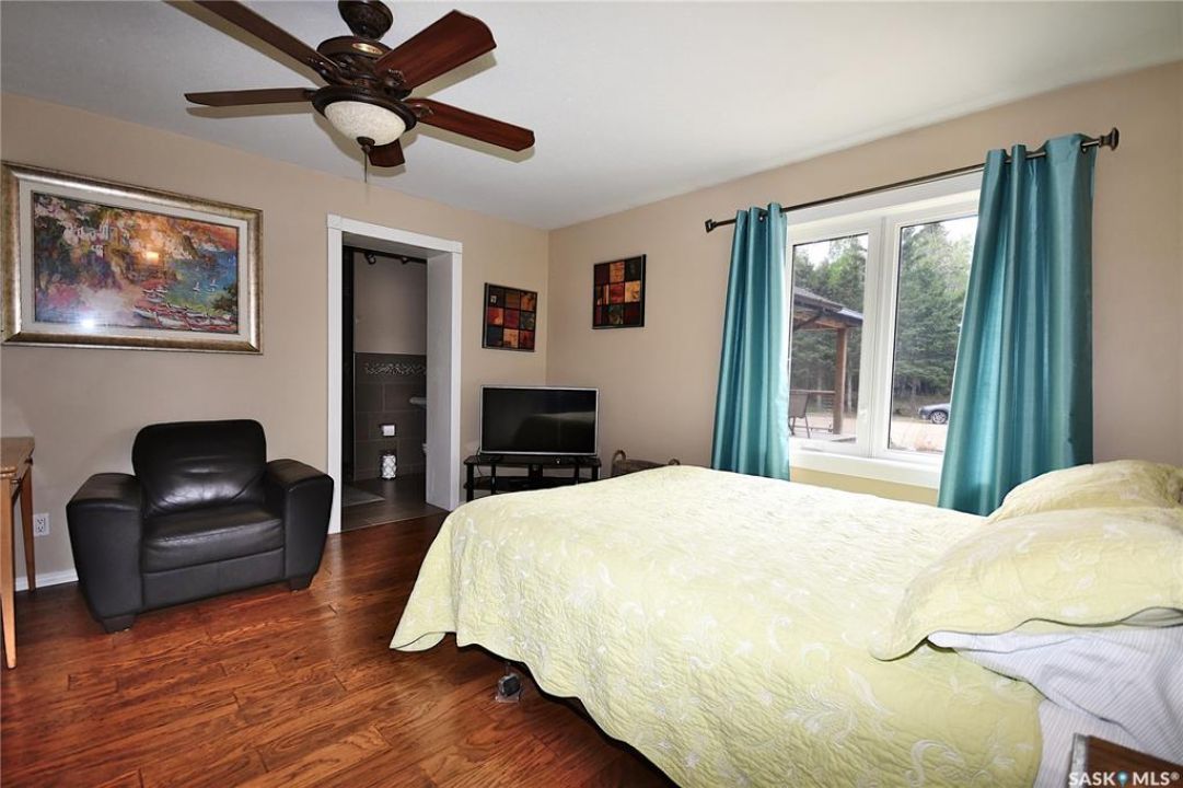 Expansive ranch-style home boasting over 4,500 sq. ft. on the main level, featuring 5 bedrooms—each with its own ensuite bathroom—plus 2 additional bathrooms. This charming home includes a luxurious chef's kitchen and an 800 sq. ft. suite of equal elegance. The original home was built in 1989, with seamless additions of 2,000 sq. ft. in 2010 and another 1,100 sq. ft. in 2022. Nestled amidst serene forest surroundings, this retreat sits just 1.8 km from pavement on 154 acres, close to lakes, numerous recreational attractions, and the vibrant resort town of Big River. A stone fireplace warms up to 2,000 sq. ft., complemented by wood and propane furnaces, with Generac power backup in place. Whether for a large family, a business opportunity—which the current owners have established as an income producing Bed and Breakfast—or a personal sanctuary, this home fulfills every need. The open basement awaits minimal finishing. The 800 sq. ft. suite offers an aging-in-place design with double vanity sinks, an age-friendly shower and toilet, laundry facilities, a kitchenette, and a scenic backyard view. Covered decks at the front and back enhance entertaining possibilities, while a water filtration system ensures pristine drinking water. The chef's dream kitchen boasts double ovens, ample fridge and freezer space, expansive countertops, and abundant storage, complemented by outdoor perennials, fruit trees, perennial berries and vegetable garden. Details regarding the sturdy construction and excellent insulation—as well as outbuildings (24'X32', 20'X20', 8'X8', 12'X26') —are available upon request for serious, pre-qualified buyers. Viewings require reasonable advance notice and promise to impress!
