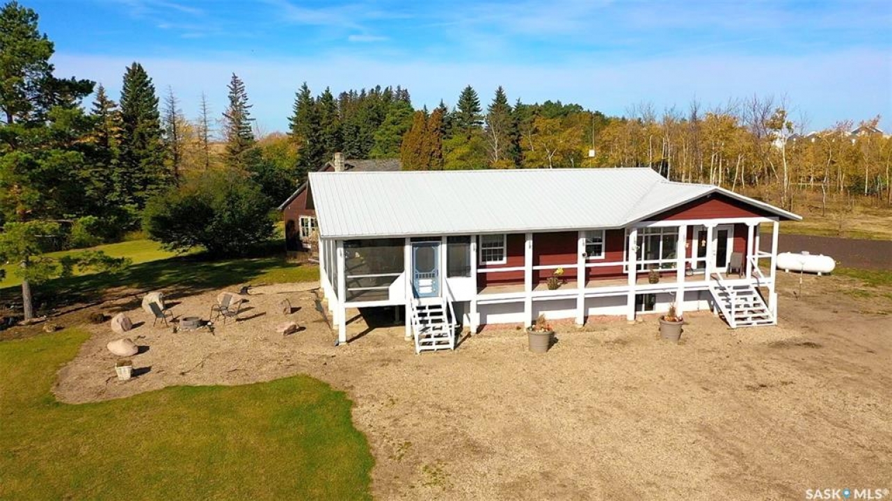 S H Acreage Orkney Rm No. 244 is this truly unique one of a kind property located only minutes to Yorkton. The home was built in 2009 with total of 3 bedrooms (The 3rd bedroom is converted to laundry/office and can be converted back) and three bathrooms boasting 1209 square feet. The main floor kitchen/dining rooms are excellent size for meal preparation ,with newer ceramic tile. Window Air conditioning for your comfort on a hot day ,located in the living room . The house has in-floor water heating and electrical baseboards as a back-up. The deck has plumbing for a sink and has electrical for a bar fridge. The water supply is a dug out ,2019 it was dug , connected to a well to supply the house. The property has a green house and other storage buildings for your possessions .The well treed yard has fruit trees to include apple ,cherry ,pear and Saskatoon bushes. The Sump pump is included with the property , as well as the 45 inch television in the living room .Call today to view.