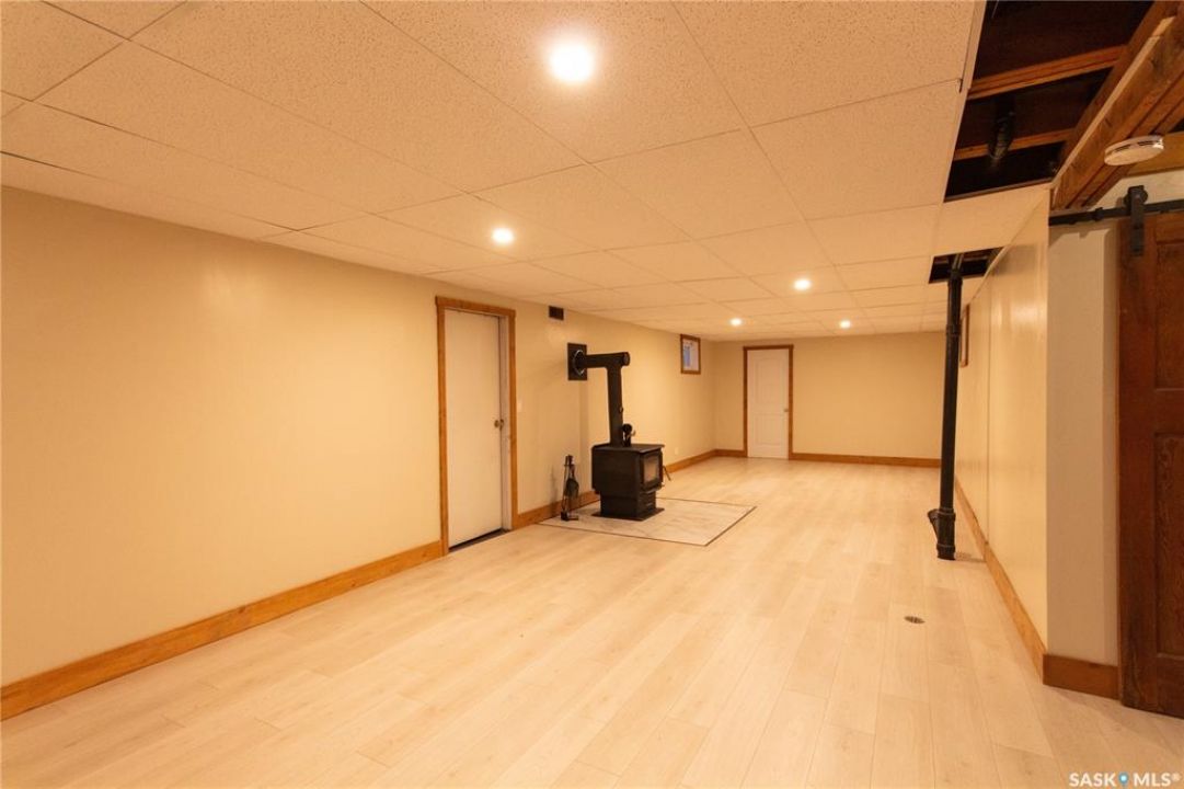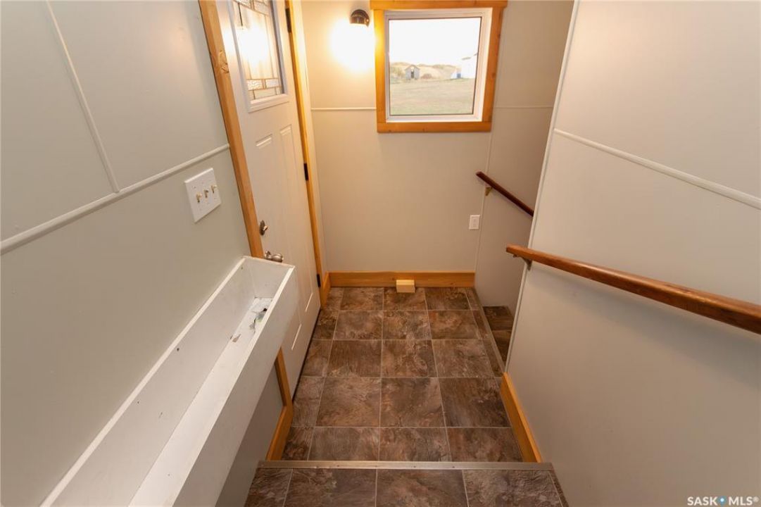 Country living at its best, this 10.28 acre acreage is just what you're looking for! Take a drive through the beautiful rolling hills of Saskatchewan to this updated and move in ready 1380sqft house! Step up into an entrance where memories will be made, featuring a large mud room to store all your jackets and boots. To the right, an open kitchen with timeless oak cabinets and a spacious living room with large bay windows to enjoy every sunset and sunrise. Upstairs features two bedrooms with fresh flooring and an updated 4 piece bathroom. Upstairs laundry and storage area is just past the kitchen. Continuing downstairs, you'll find a landing and separate entrance, providing easy access to a fire pit/gathering area. Heading downstairs, you'll find a beautiful 3 piece bathroom and large rec room with a wood burning stove. On either side are two spacious bedrooms and a mechanical/workshop room in the middle. The land features a 20'x28' garage/shop (has its own electrical panel. Natural gas line is ran to this garage, natural gas heater is included but not connected), a 26'x48' quonset with a 100amp panel, a chicken coop, garden area, and many other storage sheds. For the hobby farmers, the perimeter is fenced and the land is planted for grazing. Many updates include:House metal roofing (approx 5yrs), all new windows upstairs and new basement bathroom in the house, garage roof (approx 5 years) & quonset roof and complete basement renovation, and a 200 amp panel.