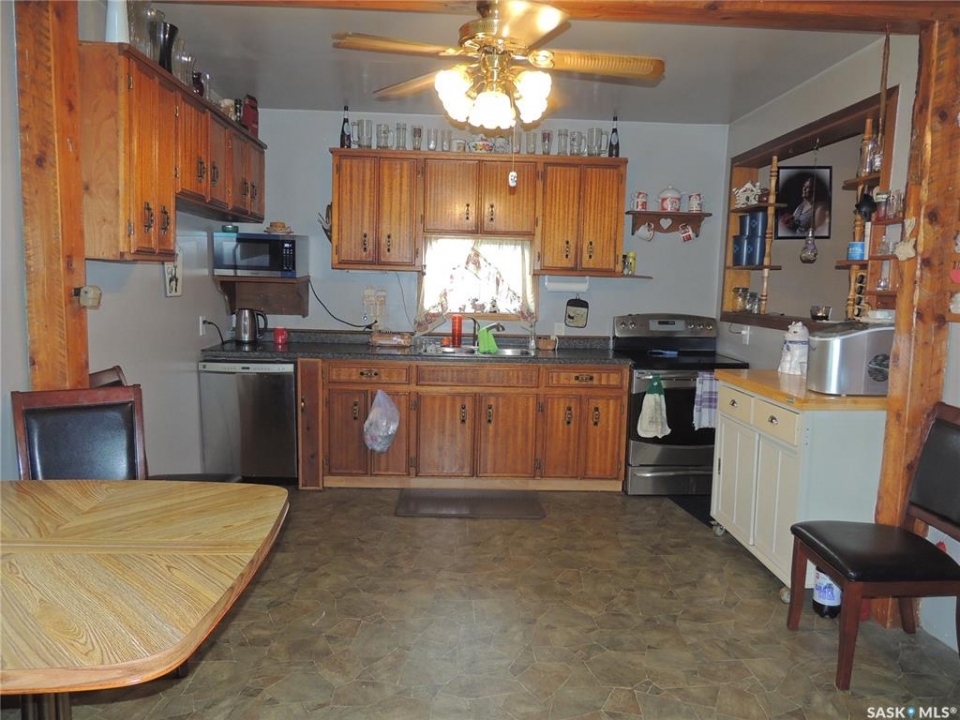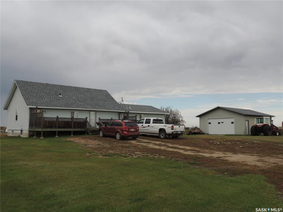 This acreage is on 80.45 acres. It is set up for someone with horses or cattle. There is a portion fenced with corrals and wind break building with watering bowl. A portion of the land is good for hay. The yard has plenty of grass and trees. There is a detached garage with power and concrete floor. The storage shed provides extra room to keep lawn care items in. The front of the home has a large deck. The main entrance has access to the living room with dining room off of it. There is a full bathroom also off the entrance. The side entrance has the laundry room and access to the basement. The main floor has three large bedrooms, and a den. The basement is partially finished with the utility room, 3 piece bathroom, and rumpus rooms.