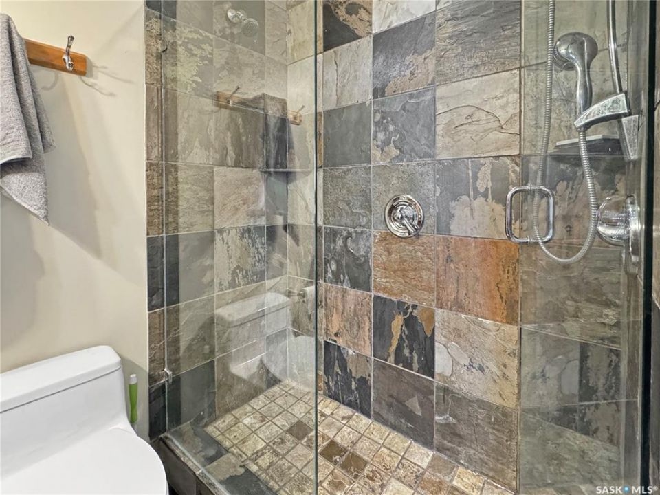 Discover your own piece of paradise just 5 minutes from Battleford with this stunning 4-bedroom, 4-bathroom acreage, situated on 12.5 acres of countryside. This thoughtfully designed home offers modern comforts, incredible views, and endless space—inside and out—including a fully equipped basement suite with its own kitchen and laundry, ideal for extended family or rental potential. Step into a spacious foyer accented by custom tile flooring, leading into an open-concept living space filled with natural light. The living room features custom built-ins surrounding the entertainment area. The beautifully designed kitchen boasts custom cabinetry, sleek quartz countertops, and a large island with a built-in sink—providing space for effortless meal prep, casual dining, or entertaining at the island seating. The adjoining dining area offers direct access to a large deck—perfect for morning coffee or hosting gatherings while overlooking the backyard. The main floor includes three generous bedrooms, a dedicated office, and a stylish 4-piece family bathroom with slate tile flooring. The primary suite is a true retreat, featuring custom closet cabinetry, a 3-piece ensuite with a beautifully tiled shower, and private deck access. The fully developed walkout basement offers a spacious rec room, an additional 4-piece bathroom, convenient access to your hot tub, and a self-contained suite for guests, family, or rental income. This home is built for year-round comfort with in-floor heating, central air conditioning, and a durable ICF foundation for energy efficiency and peace of mind. Additional highlights include a double attached garage, a large shop for extra storage or projects, and plenty of room to enjoy acreage living at its finest. If you're looking for privacy, space, and modern living just minutes from town—this property delivers it all. Call today to arrange your private viewing and experience the lifestyle this acreage has to offer!