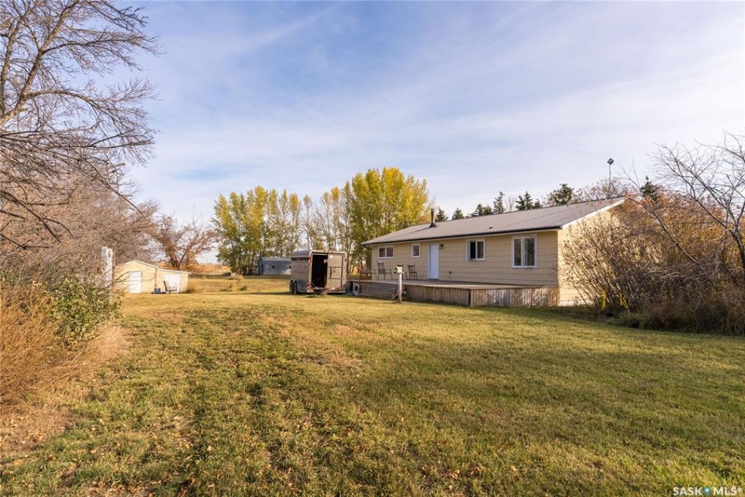 Step into this dream hobby farm!!! Ideally located less than 30 minutes from Saskatoon and only 7 min from Asquith in a mature parklike setting with loads of upgrades and tons of appeal. This over 1300 sqft bungalow features newer windows, paint throughout,updated kitchen, bathrooms, roof and flooring. The main floor is flooded with abundant natural light and sweeping views showcasing a sunken living room, dining room and kitchen with warm cinnamon cabinets, main floor laundry 3 good size bedrooms with an ensuite off the master bedroom. The lower level is super spacious with a family room finished in warm tong and groove pine, large den with walk in closet and pedestal sink, 4th bedroom and large 3-piece bath. Additional features include central air, separate entrance to basement, deck 16 X30 overlooking back yard, a double detached garage insulated, drywalled and exclusive air brush painting inside by local and renowned artist James McCall making this the ultimate man cave, and for all the hunters out there check out the abattoir that is wired and plumbed, and the bunk house is heated! This property is partially fenced with 3 watering bowls. This is the ultimate opportunity for horse enthusiasts seeking the perfect lifestyle to raise their family and live their dream! Only 10 min from the river and riding arenas! Don't miss this!! Schedule A must accompany all offers.