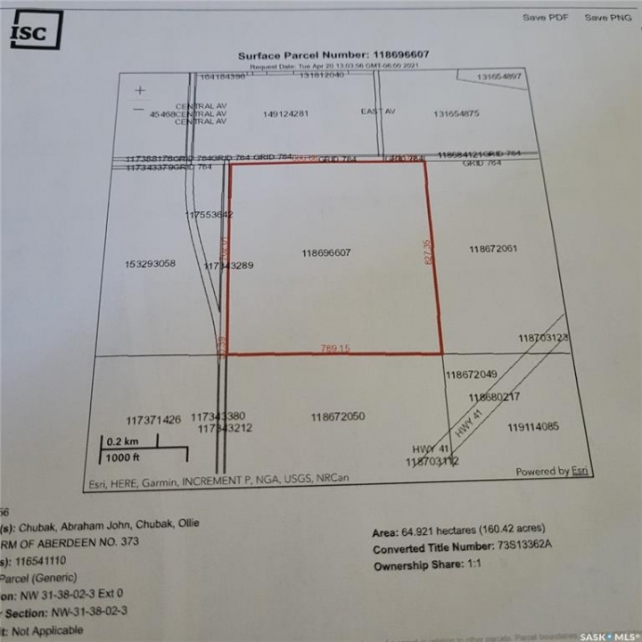 153.84 Acres with a Large Ranch Style Bungalow a Mature yard well Treed with a Park like setting. Only 1 mile from Aberdeen that features K-12 School Shopping A Rec Centre. The Farmyard Features a large Arch Rib Shop and outbuildings School Bus Available to driveway and has City Sourced water and additional well and Dugout .