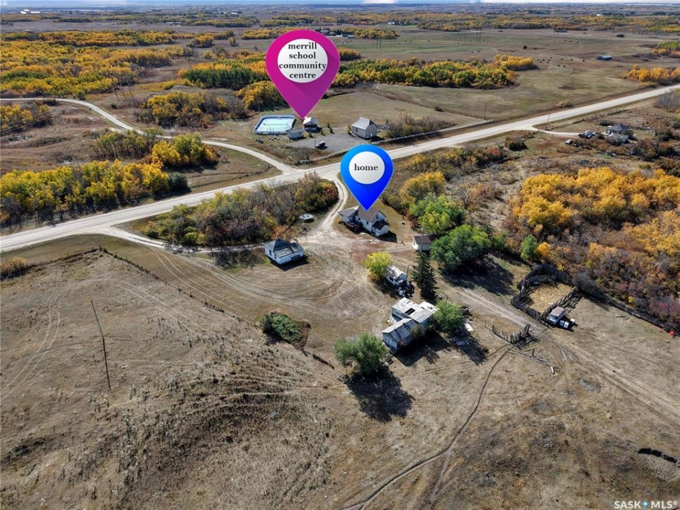Welcome to this charming 10-acre acreage nestled in the rolling hills across from the Merrill Community Centre. This cozy three-bedroom, one-bath home offers the perfect balance of country tranquility and everyday convenience. A detached garage provides practical storage or workspace, while several older outbuildings add rustic character and endless possibilities for hobby farming or restoration. The property is beautifully framed by natural shelter belts and mature trees, giving you privacy and protection from the prairie winds. You'll appreciate the pavement drive right up until the last half kilometre, making year-round access a breeze. The landscape features gentle slopes and open areas ideal for gardening, pasture, or future expansion. Inside, the home is comfortable and inviting ready for your personal touch to make it shine. Enjoy morning coffee with sweeping countryside views and peaceful sunrises that define rural Saskatchewan living. With plenty of amenities on the way out, you'll have both convenience and solitude at your fingertips. Come for a drive and see this hidden gem for yourself—you just might find your next chapter waiting here.