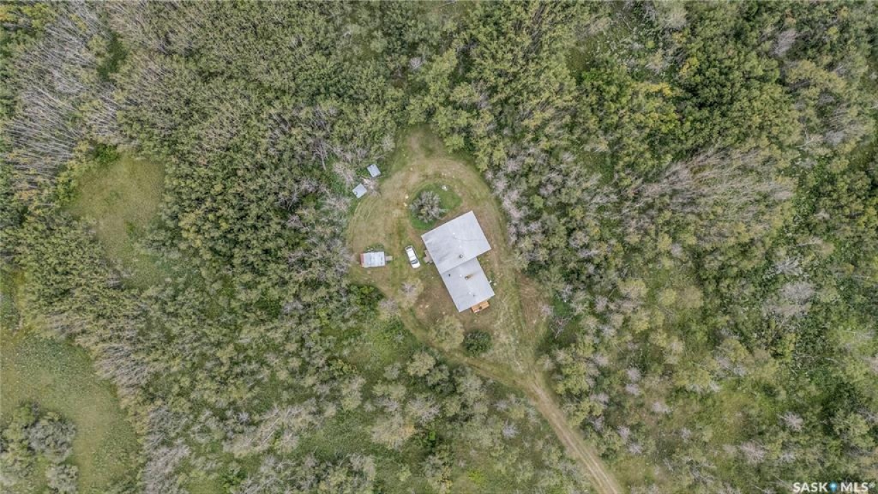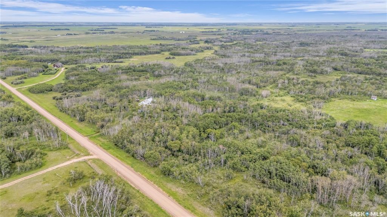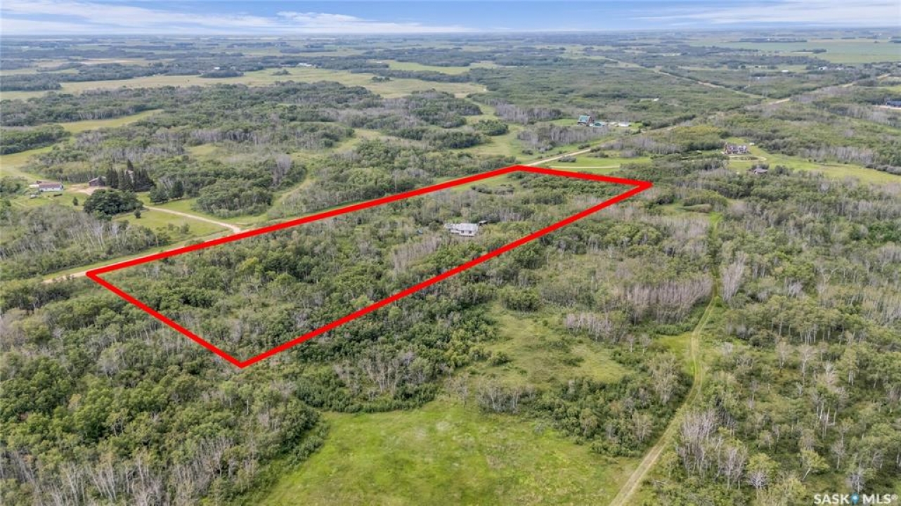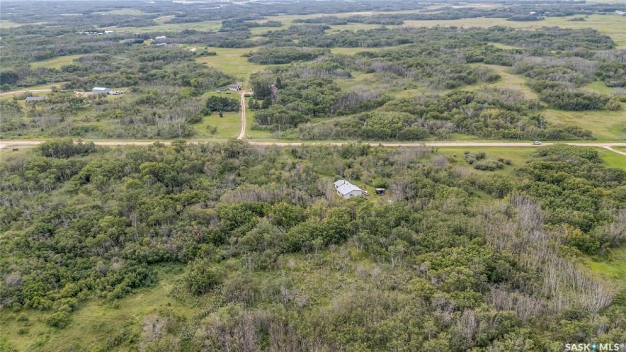 A rare opportunity to own10 acres just 15 minutes from Saskatoon, make this acreage your own personal sanctuary. Heavily covered by poplars, it's not uncommon to see deer, moose, fox, and a vast array of bird species. This 720 square foot bungalow is 1984 built, with an attached heated 26 X 36 shop for wood work, art studio or hobby space. Primary heat is two Osburn wood stoves and electric baseboards, natural gas to the property line & well water source. Features handmade oak & ash cabinets, custom stained glass door, 4 piece bathroom, front & back deck, and more!