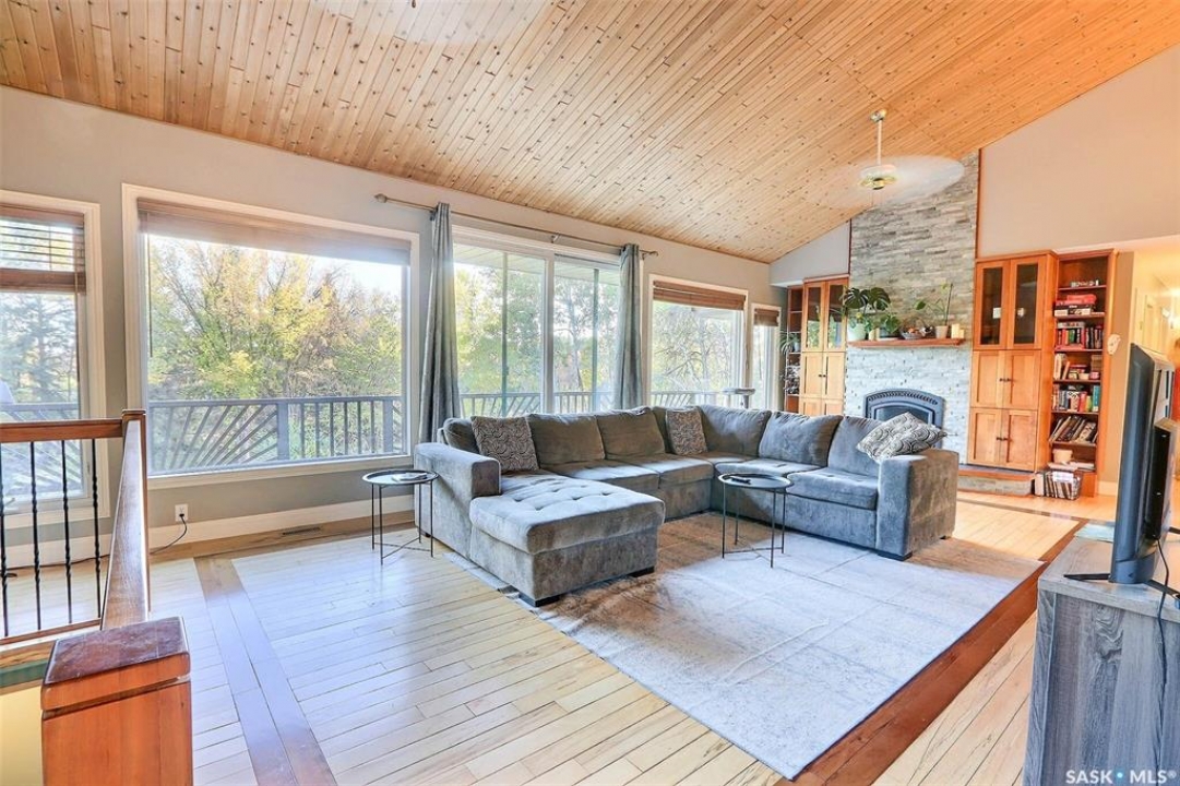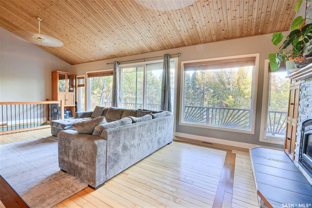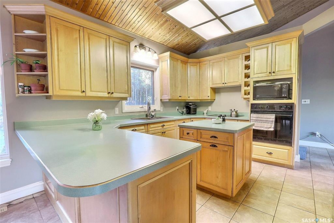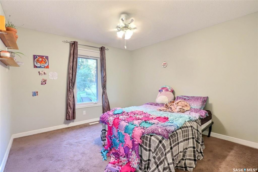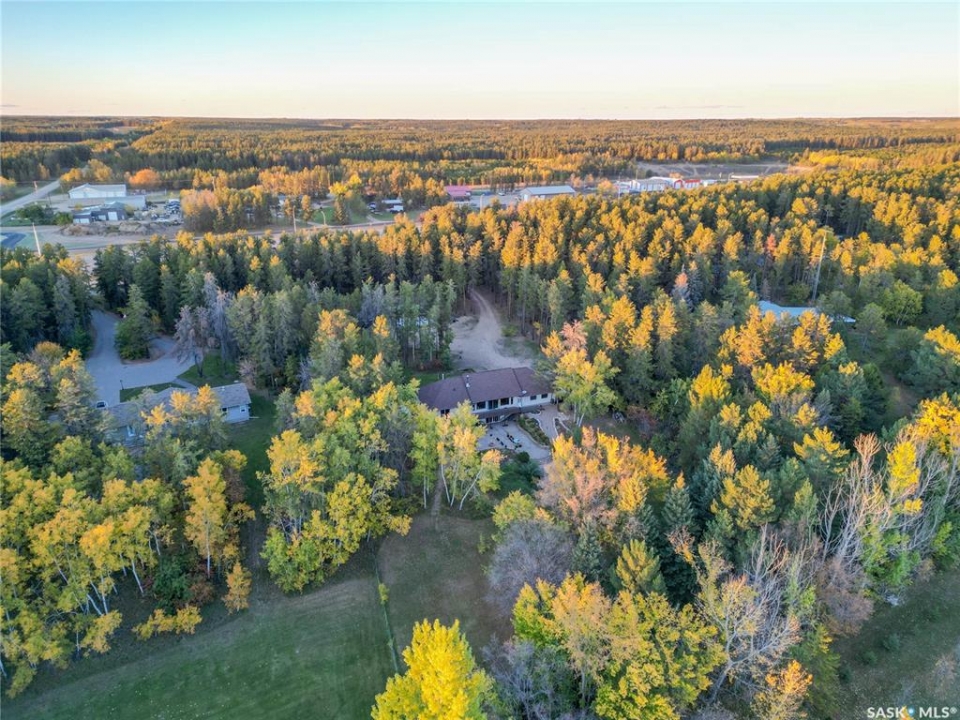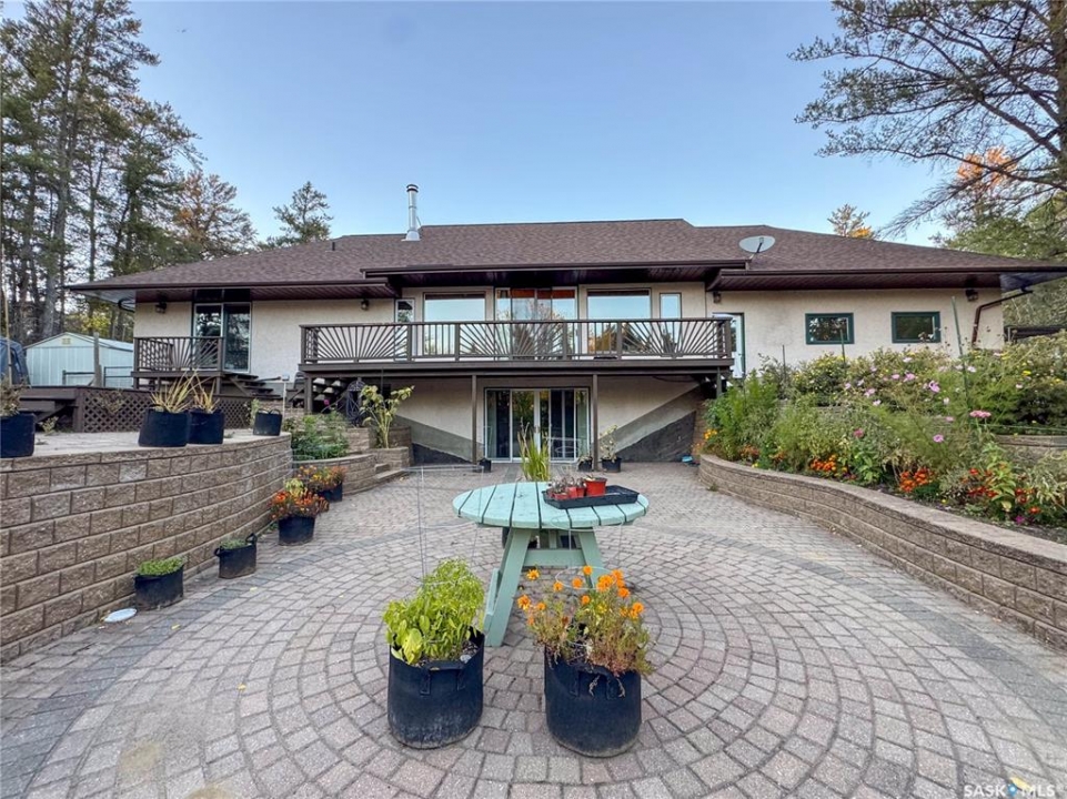 Immaculate 4 Bedroom + Den Acreage with Walkout Basement & Dream Garages only 5 Minutes from Prince Albert! This stunning and meticulously maintained 1,518 sq/ft bungalow offers the perfect blend of luxury, privacy, and convenience on a beautifully landscaped 2.47-acre lot. Built in 1994, this home features a spacious walkout basement, attached 26' x 28' double attached garage, and an incredible 24' x 48' heated detached triple garage complete with a carport and fully finished loft space above — ideal for hobbies, storage, or a home business. The main floor welcomes you with vaulted ceilings, hardwood flooring, and a cozy wood-burning fireplace with stone surround and built-ins in the bright south-facing living room. The kitchen offers an abundance of cabinetry and opens to the dining area. Three spacious bedrooms, a full bathroom, and a private ensuite in the primary which also has access to the deck and hot tub overlooking the breathtaking yard. The walkout basement is an entertainer's dream with a massive games room and family room featuring built-ins, cork flooring, and access to the covered patio. You'll also find a fourth bedroom, den, full bathroom, laundry, and plenty of storage space. Outside, the fully fenced and heavily treed property provides complete seclusion with green space, and manicured landscaping that must be seen to be appreciated. Additional features include central air conditioning, central vac, multiple sheds, and pavement right to your driveway. A one-of-a-kind property offering the best of acreage living with city convenience — truly impressive inside and out!