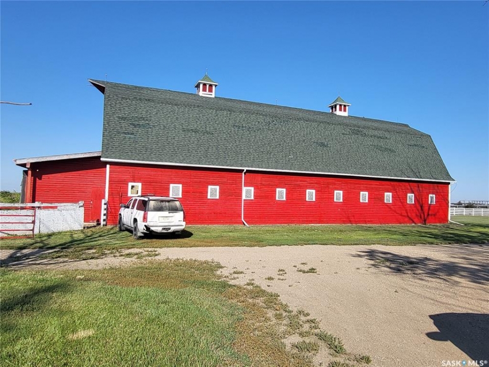 265 Acres – Prime Farmland & Former Feedlot – Just West of Saskatoon, SK An exceptional opportunity to acquire 265 acres of grain farmland located just � mile from the west boundary of Saskatoon. This versatile property offers agricultural potential, valuable infrastructure, and a prime location for investment or development. This property is ideal for continued agricultural use, agribusiness expansion, or investment purposes. With city water, rail access, and proximity to major industrial operations, this is a rare find near Saskatoon. Property Highlights: • 265 acres currently in grain production; historically used as a feedlot. • Independent city water line to the property. • 3-phase power available adjacent to the land. • CN Rail line borders the south side of the property – ideal for logistics or agribusiness. • Located just south of DG Global West Inc., and only 1.5 miles from the PotashCorp mine entrance. • Paved access from the north via Twp Rd 364. • Excellent proximity to Saskatoon – easy access via 11th Street West and Hwy 7. Residence & Outbuildings: • Bungalow Residence (1,274 sq. ft.), built in 1940, includes a 17.5' x 27' attached garage. • Red Barn / Shop (40' x 90' plus 27' x 14' addition), asphalt shingles, cement foundation & floor, 110V and 220V power, propane forced-air heat, divided into 4 main floor rooms, with solid upstairs loft designed for heavy storage, reinforced metal-sheet flooring – ideal for equipment or grain storage • White Barn (34' x 128'), asphalt shingles, cement floor, includes power and partial hay loft • Guard House (20' x 20'), stucco finish, metal roof, power, currently used for storage Numerous additional outbuildings, corals, and cement slabs provide flexibility for livestock, equipment, or future development (no added value).