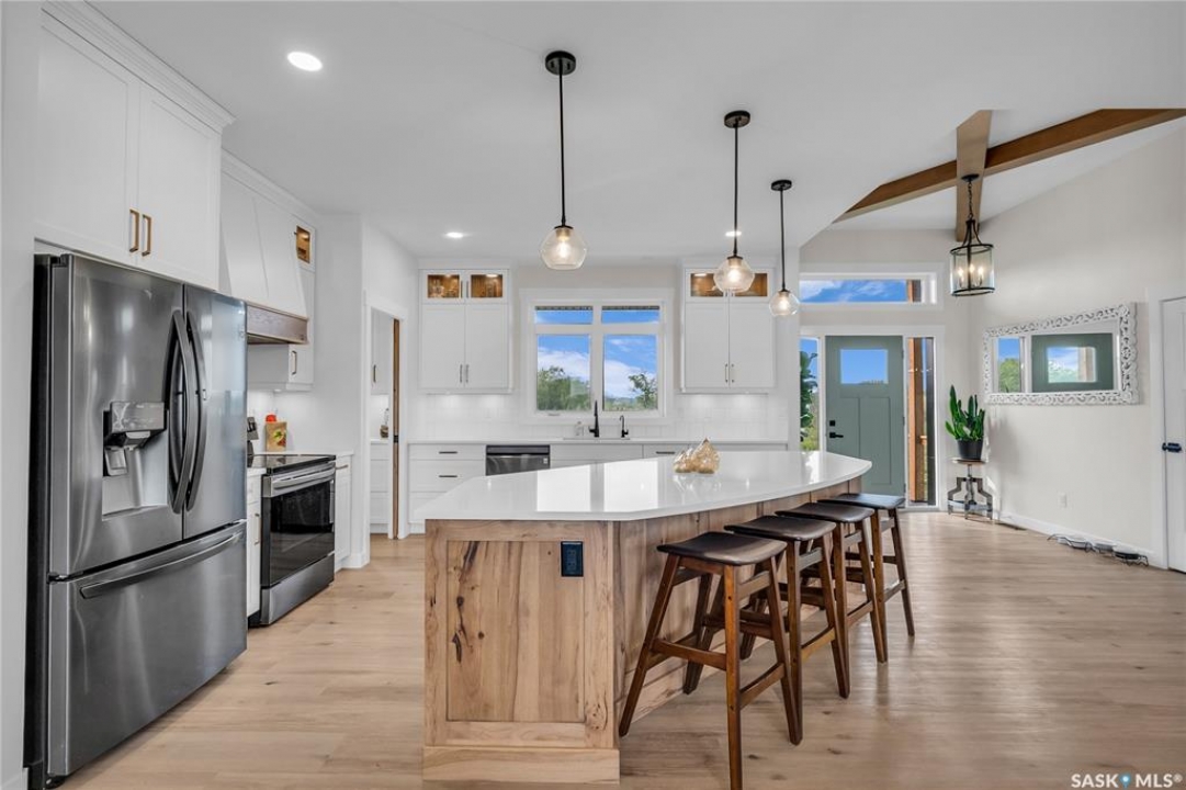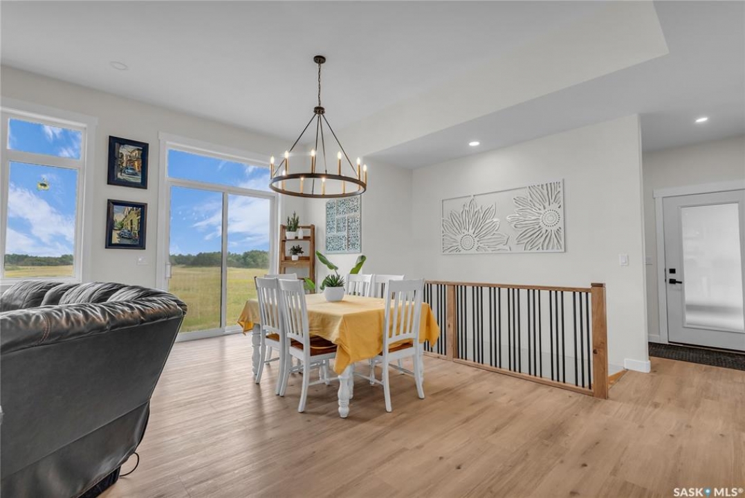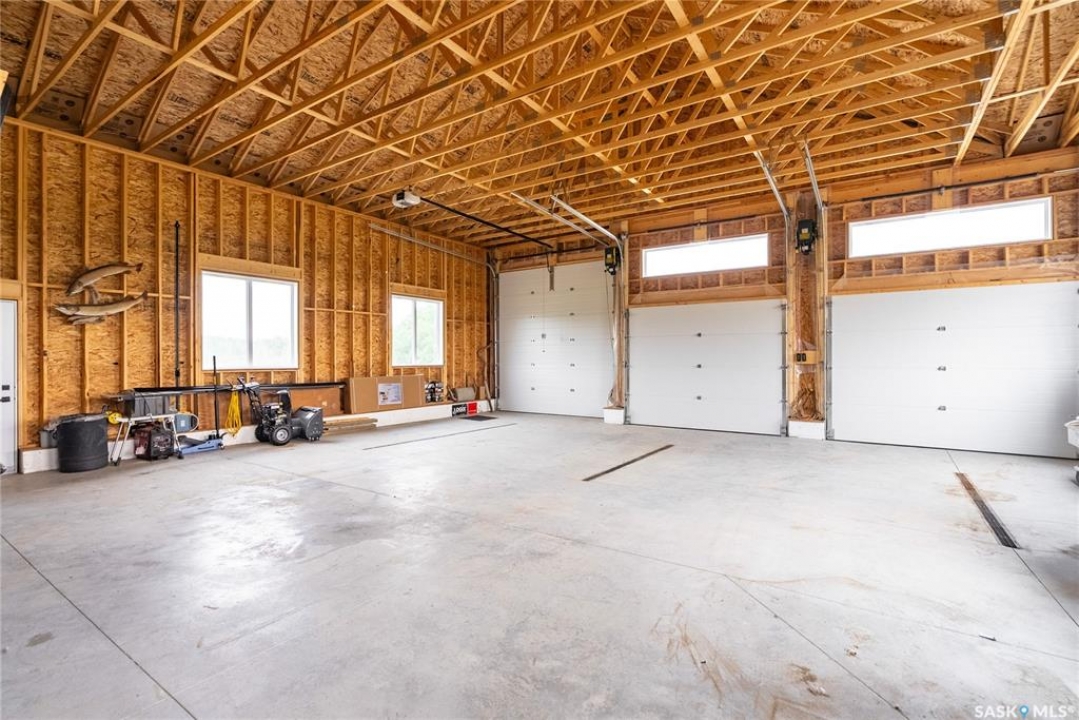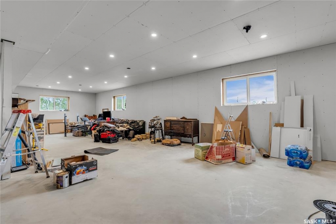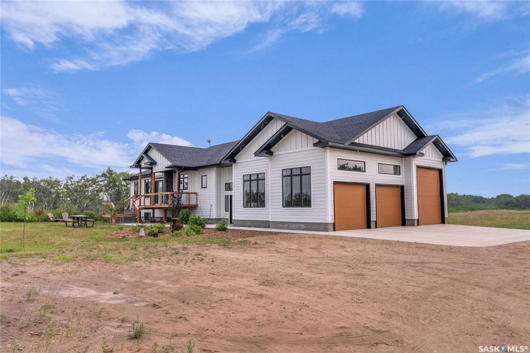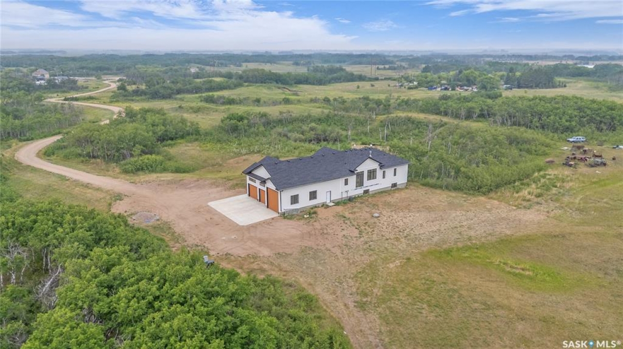 Rare opportunity with this beautiful acreage just minutes south from Saskatoon situated on 69.54 acre's & located just off Merrill school road right beside Merrill school! This peaceful paradise offers the privacy & tranquility of country living, just 7 minutes to circle drive in Saskatoon, close proximity to the popular Berry Barn, a community center, a rink, a heated ice shack in the winter as well as school bus pickup right at the property to many schools in Saskatoon. This one of a kind 1832 sq.ft raised bungalow, Energy Star Certified home features a triple attached garage & shop! The attached shop has a 12 ft. overhead door with 14 ft ceilings, in floor draining, room for 4 vehicles & a future vehicle lift! The exterior of the home has Hardy plank siding, an 8x22 front deck as well as a concrete walkway/patio area. The home features triple pane windows, insulated concrete floors in the garage & basement, an ICF foundation, 14 inch walls, R50 insulation in the attic & energy efficient utility bills. The main floor is inviting with 11” ceilings, vinyl plank flooring & a stunning kitchen that is open to the dining/living area! The kitchen features a large island, quartz countertops, tile backsplash, black stainless steel appliances, a hood fan that vents directly outside & a butler's pantry with sink built in. The Great room has a beautiful gas fireplace with brick surround. There is a commercial grade water heater & reverse osmosis system as well as a rough in for a future wet bar. All services were newly set up in 2022; (1000 Gal Septic tank, Septic field, Well - 50 feet & 40 gal per min). The current zoning of the property allows for a large detached shop or Quonset, & this perfect family acreage comes complete with a firepit, a water softener, central air conditioning, central vacuum, natural gas bbq hookup, all appliances & many Saskatoon berry bushes. Subdivision is a possibility in the future & any remaining SK New Home warranty can be transferrable.