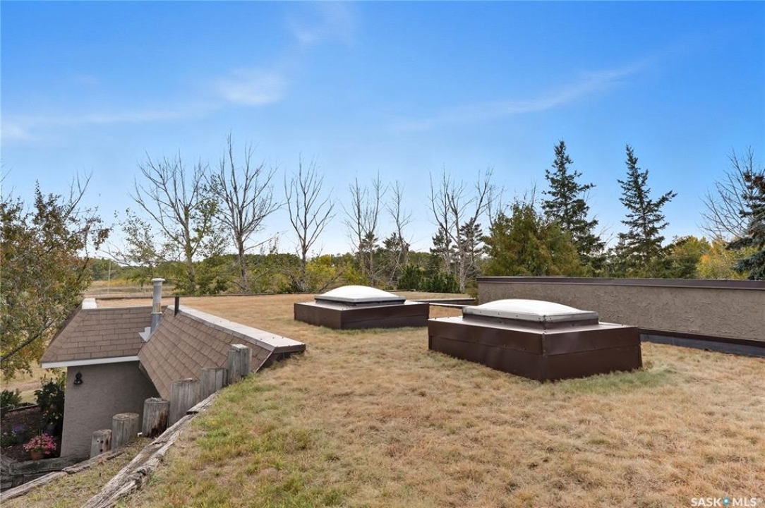 One of a kind acreage at 65 Southwinds Dr in the Hamlet of East Beaver Creek. Tucked seamlessly into the side of a hill, this remarkable earth shelter home is where innovation meets everyday comfort. Built with 14-in thick walls & an 8-in rebarred concrete ceiling, capped with 10 inches of rigid styrofoam & over 3 ft of soil protected by a recent 60mm EPDM rubber membrane (40 yr life span), this home isn't just built to last—it's built to thrive. Naturally insulated, whisper-quiet & wheelchair accessible. Set on 10 fully fenced, gated acres with pavement right to the driveway, just 15 minutes from Saskatoon, this property combines rural tranquility with city convenience. The mature shelter belt creates privacy and wind protection, with beautiful treed walking paths around the entire perimeter and buyers will love the huge heated shop, and plenty of space for animals —ideal for hobby farmers, or anyone craving space to work and play. Inside, every detail has been beautifully reimagined. The fully remodeled interior opens into a stunning open-concept kitchen, dining, & living area that feels surprisingly bright thanks to thoughtful design and skylights that invite the sun in. You'll love the parquet floors, beautiful cabinetry, stainless steel appliances & butcher block countertops. The primary suite offers a peaceful retreat with en suite bathroom and is complemented by two additional bedrooms, full main bathroom, and a spacious laundry room. The dbl attached garage provides everyday convenience, while the home's construction ensures unmatched comfort. SaskTel fibre optic network is already to the house, ensuring fast & reliable connectivity. The property uses its own well water but municipal water has been brought right up to the house, ready for connection if desired. A perfect balance of innovation & country living, this home defies convention yet fits beautifully into everyday life—a one-of-a-kind retreat minutes from Saskatoon. Call your favourite agent to view!