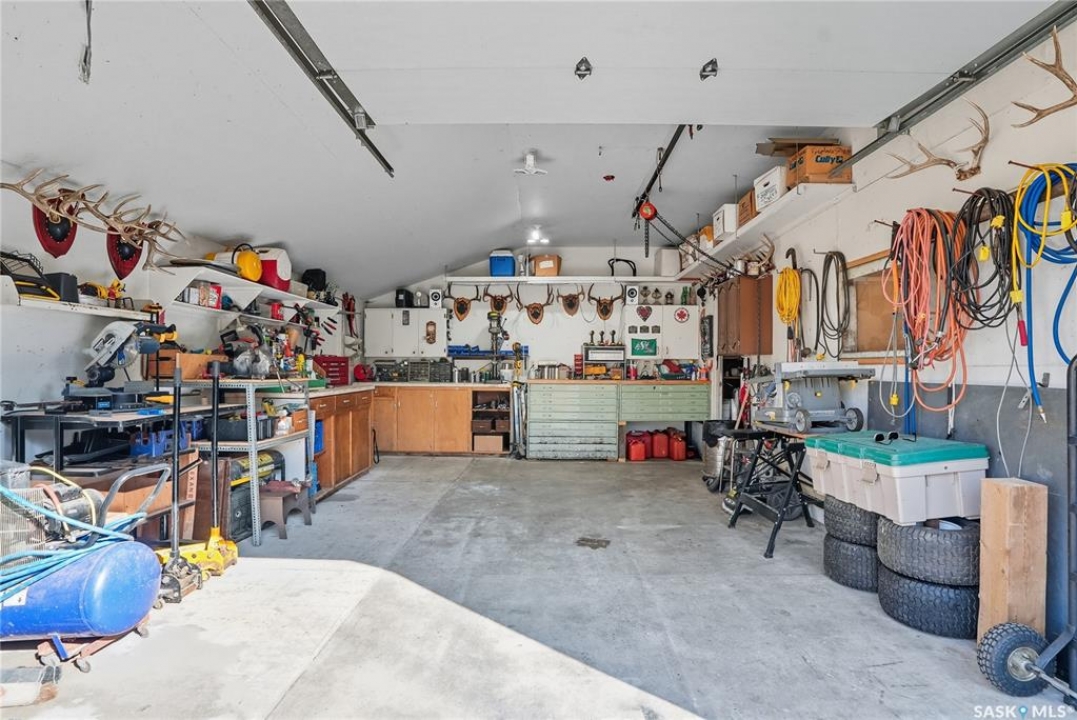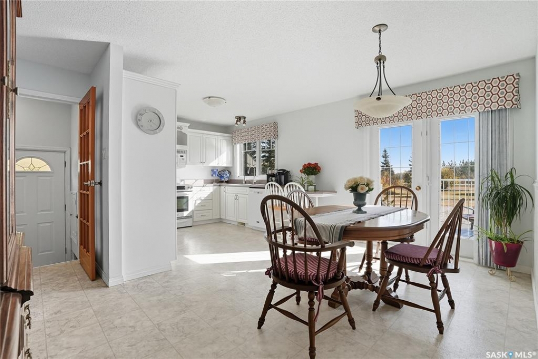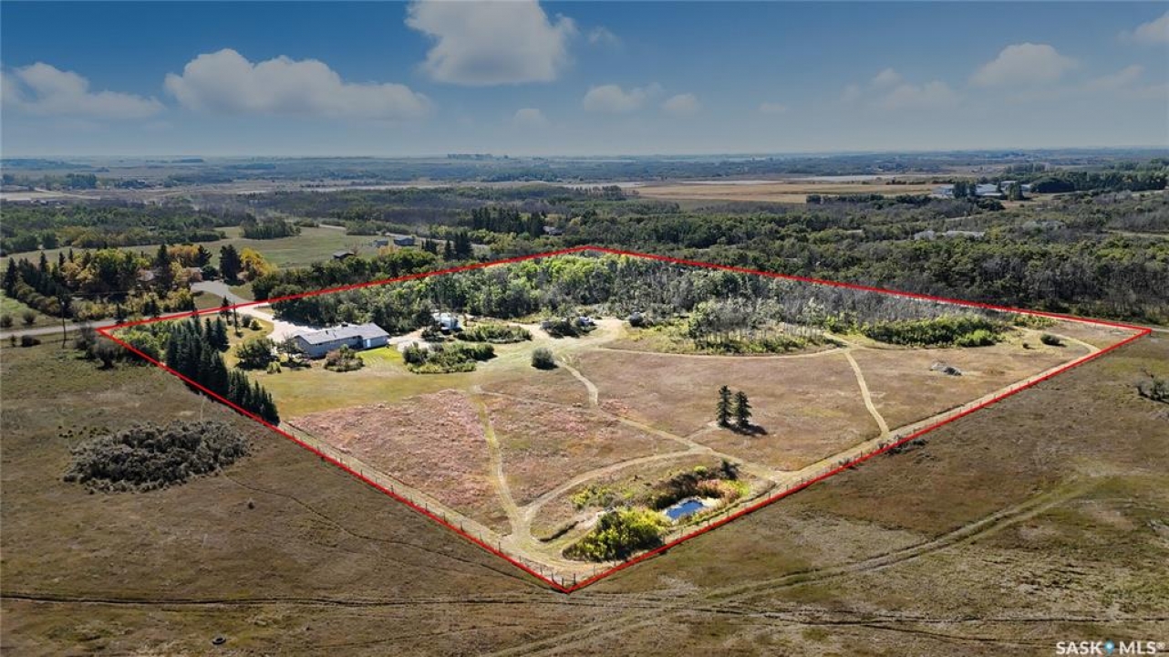 Location, loacation! Only 10 minutes from Saskatoon - this 1392 sq ft raised bungalow is just minutes off Highway 14. Sitting on 10 acres of land that could be easily be subdivided to create revenue and get a return on your investment. Trails wind through the trees and bush, giving you and your family the chance to enjoy dirt biking, quadding, snowmobiling, or even horseback riding right on your own property! The 24'x42' triple car attached garage/shop features 10' ceilings, a spacious work area, and plenty of shelving and storage for tools and toys. Inside the house, you'll feel the character the moment you walk in. The bright living room welcomes you with south-facing windows that flood the space with natural light throughout the day. In winter, the passive solar gain helps keep things cozy, and the wood-burning fireplace adds warmth and charm on a cold winter day. The kitchen is open and functional, with lots of cabinet space and room to host family meals and get-togethers. Just off the kitchen, you'll find a 2-piece guest bath and a convenient main floor laundry room. The main floor also features three big bedrooms and a 3-piece bathroom. Downstairs, the fully developed basement offers two more bedrooms, a large living area, and oversized windows that brighten the space and make you forget that you're in a basement. There's room for a games area, TV room, kids zone, or even a pool table! The property is serviced with natural gas and electricity, and includes a cistern for water that can be easily filled by hauling your own city water, or by delivery. The septic system consists of a concrete holding tank and a grey water pump out. Don't worry about getting the kids to and from school in Saskatoon, because school buses pick up right at the driveway go to elementary, and high schools in Saskatoon! This acreage has had thoughtful upgrades along the way, including newer windows and extra insulation on the exterior walls and in the attic. Book a showing today!