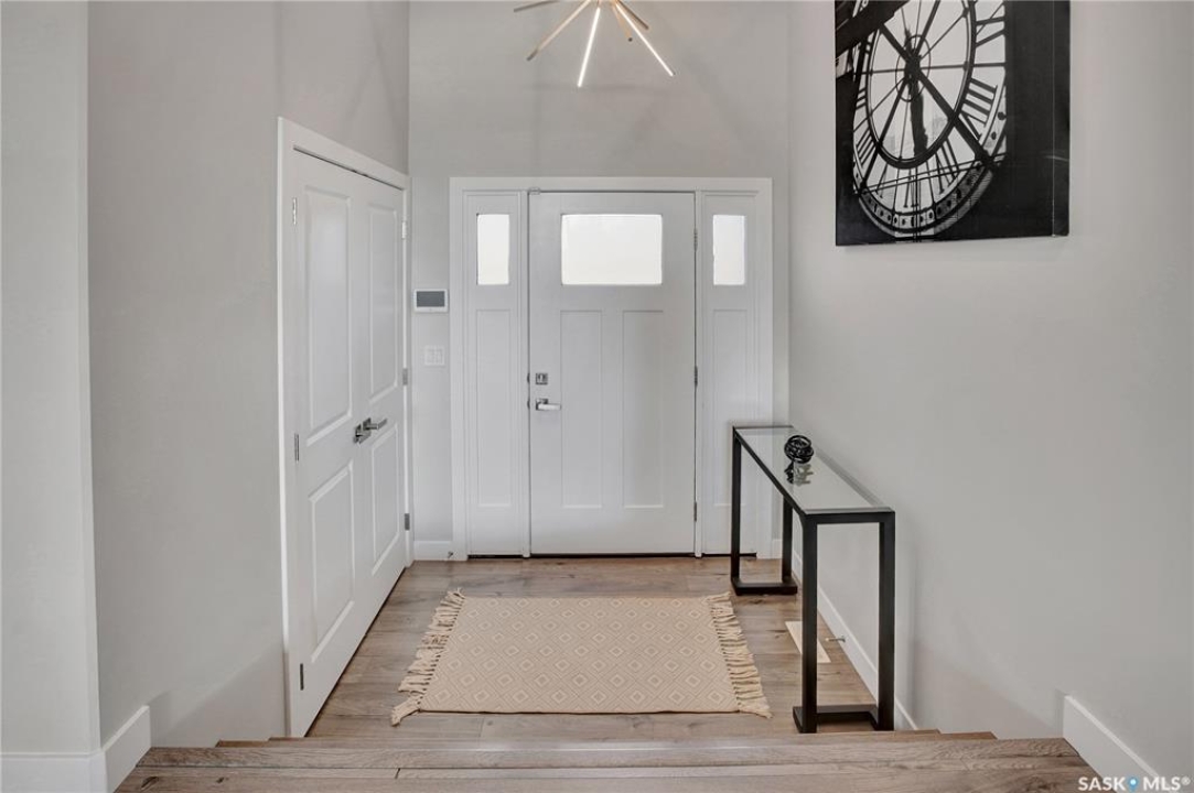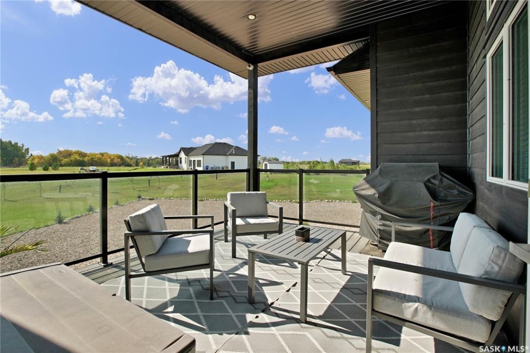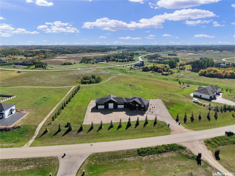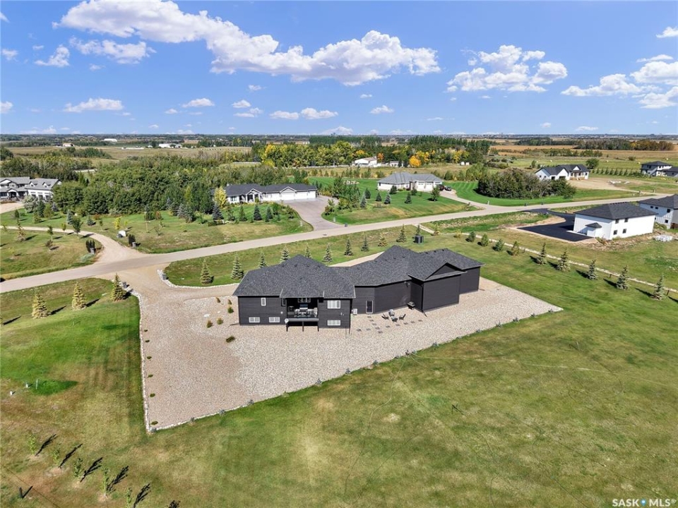 Welcome to this exceptional custom-built estate, a rare combination of sophistication, comfort, and modern design. Strategically located within the exclusive Grasswood Estates, this property provides the epitome of luxury lifestyle both in and out. Walk in and find yourself in a considerate floor plan with 12mm waterproof laminate flooring throughout, in-floor heat in the basement, and central air for warmth all year round. The gourmet kitchen boasts a natural gas hookup, waterfall island, microwave/oven combination, and streamlined finishes to create a fashionable and efficient space. Live outdoors on the front and rear composite decks, including a covered deck perfect for year-round entertaining. The beautifully landscaped yard boasts an irrigation system with a well that provides water only for the irrigation system (drip irrigation system), crushed rock landscaping, and more than 100 mature trees for shade, privacy, and serenity. Relax in the spa-inspired bathroom with a 12-inch rain shower, or withdraw to the huge 2400SQFT heated garage with a 20-foot interior room, ideal for truck parking or 10 vehicles or workshop layout with industrial ceiling fans, industrial heaters and industrial led lights. Among these are natural gas BBQ hookup, high-end construction, and an unmatched combination of luxury and usability. Whether entertaining guests or simply soaking up peaceful prairie sunsets, this rare property was crafted to awe. Enjoy the finest combination of estate living and contemporary convenience - only minutes from Saskatoon. Buyer and Buyer's agent to verify measurements. Please don't hesitate to call me or your favourite realtor to book a showing.