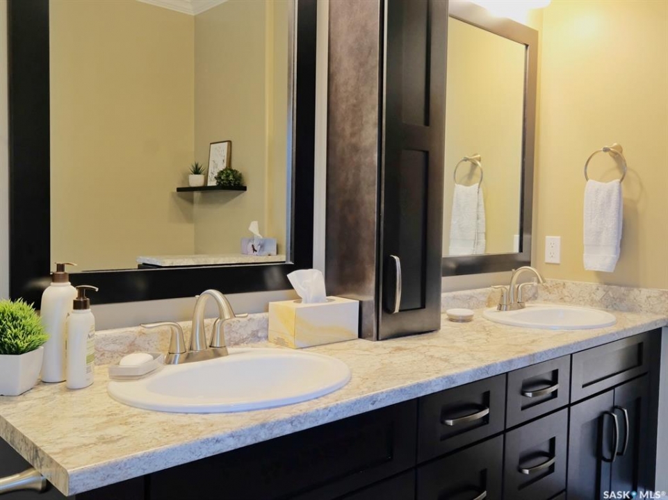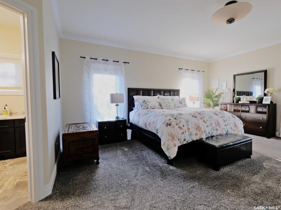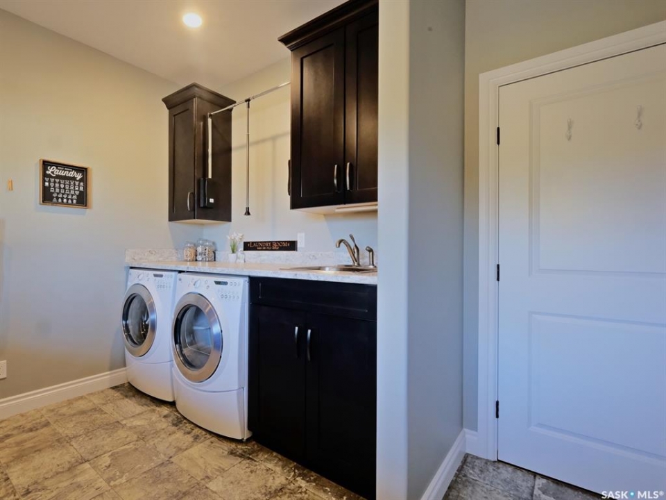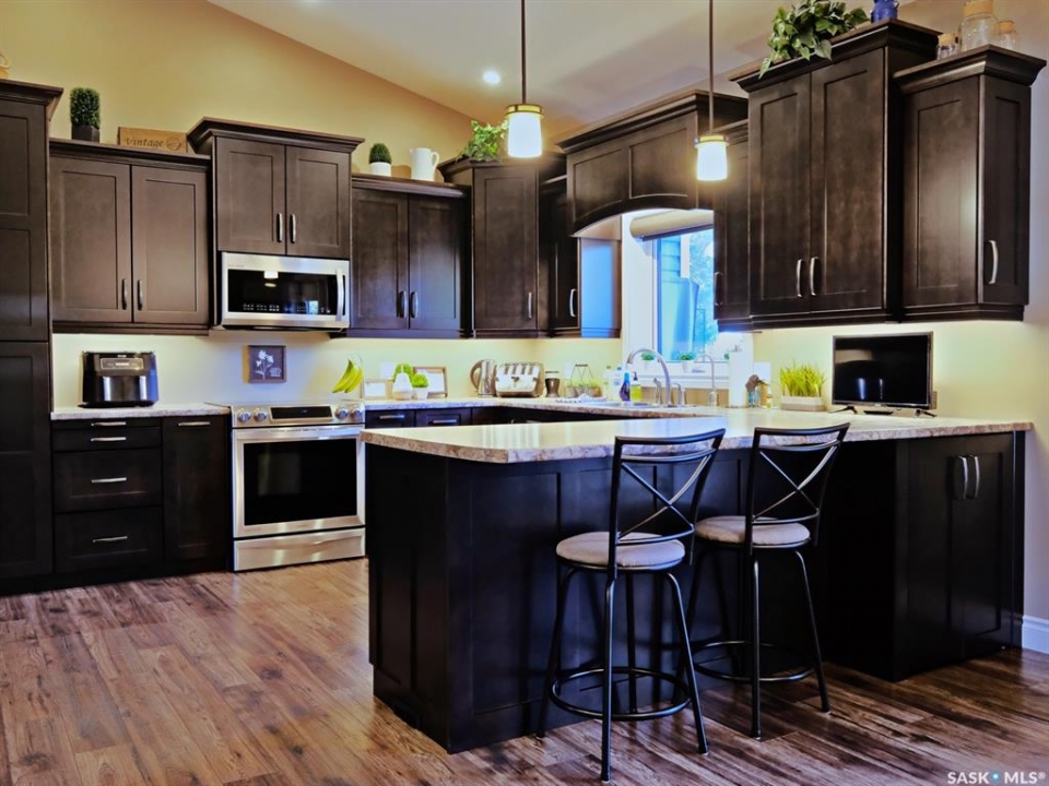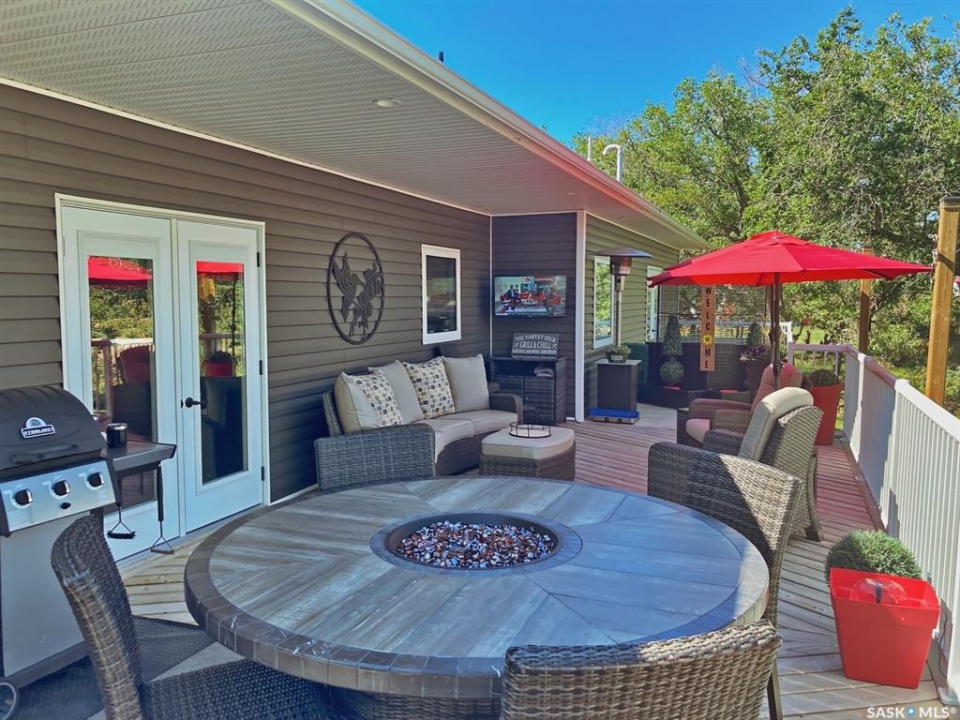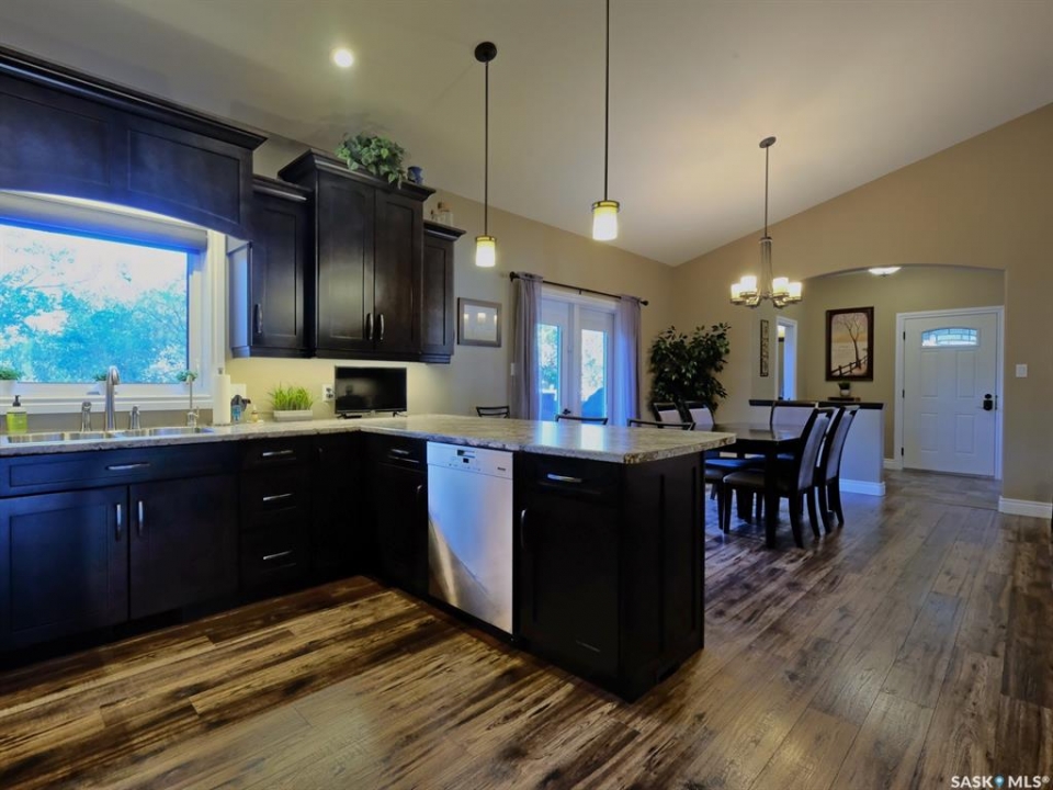 This stunning 2,298 sq. ft. executive bungalow, built in 2015, offers exceptional quality, modern comfort, and country living at its finest. Designed with attention to detail and built to impress, this home combines luxury finishes with practical features, all set on a beautifully developed 14-acre property, located directly across the road of the west side of town limits. Inside, the home features an open and inviting layout with two spacious bedrooms and an optional third, along with a main floor office/bedroom and laundry/bedroom for ultimate convenience. There are 3.5 bathrooms, including a luxurious 5-piece ensuite off the primary bedroom complete with double sinks, a soaker tub, and separate shower. The fully developed basement, built with 9-foot ICF walls, provides generous living space ideal for family recreation or entertaining. The attached 1,398 sq. ft. heated garage is fully finished, offering ample room for vehicles, hobbies, or storage. Outside, the property is equally impressive — a fully fenced 14-acre yard with a keypad remote entry gate ensures both privacy and security. The yard is beautifully landscaped with approximately 1,200 planted trees, all supported by a drip irrigation system. A Generac generator provides full-yard backup power, adding peace of mind in any situation. Additional features include central air, central vacuum, a hot tub, and several outbuildings — including a 60x100 canvas-covered storage building, a quonset, and a shop — providing incredible versatility for work, storage, or recreation. This property is truly in like-new condition and showcases pride of ownership throughout. With its exceptional craftsmanship, thoughtful layout, and impressive amenities, it offers the best of both luxury and practicality — a rare opportunity for those seeking an executive home with space to live, work, and play. Buyers now have the option of buying the quarter section the acreage is located on! See MLS SK026532