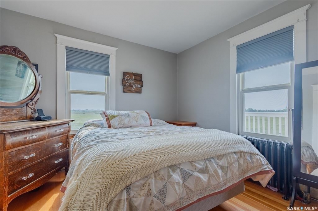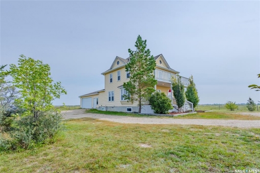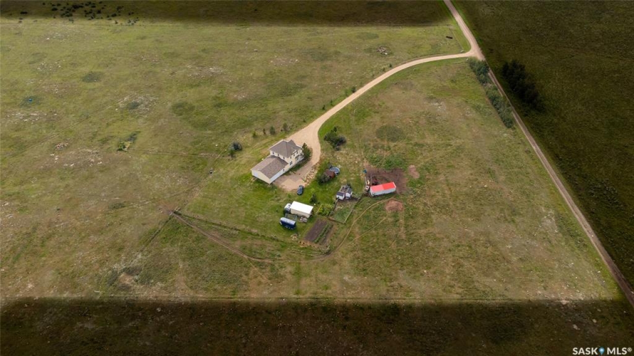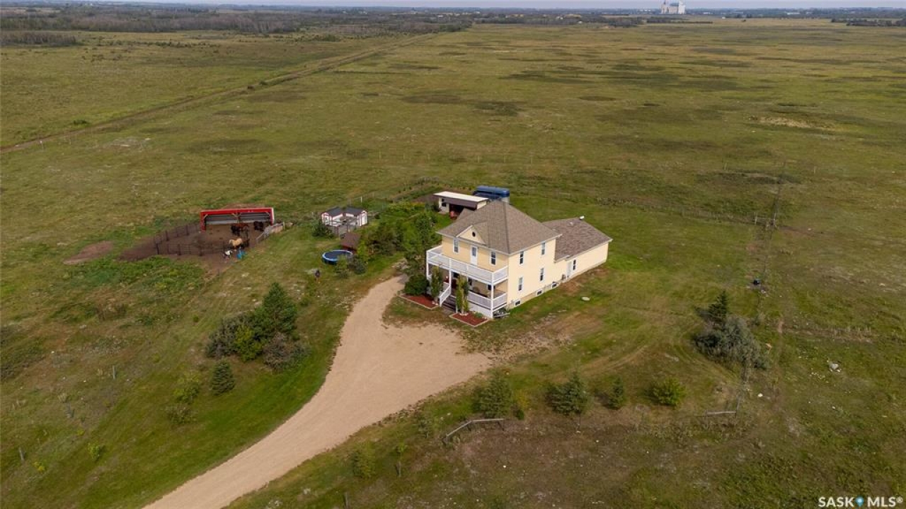 Prime Acreage & Long-Term Investment Opportunity! Located just 2 km NW of the new Martensville Rec Center, this 10-acre property offers the rare opportunity to enjoy acreage living today with strong, built-in future development potential. Surrounded by land already annexed into the City of Martensville and included in the Trilogy Ranch West Sector Development Plan, this is a strategic location positioned near a future commercial district and joint-use school. Whether you're looking for space, privacy, and a place to call home, or you're searching for a smart buy-and-hold, this property checks both boxes. Inside, the home offers 9' ceilings, hardwood floors, and a thoughtful layout. The kitchen is ideal for cooking and gathering, featuring a large eat-up island, butcher block peninsula, built-in oven and cooktop, stone backsplash, oversized fridge and stand-up freezer, plus a convenient back prep/storage area. The main floor also includes a spacious dining area, bright living room, home office/den, and main floor laundry with a half bath. Upstairs you'll find four bedrooms (one without closet) and an updated bathroom with tiled shower. A walkout balcony offers beautiful prairie sunset views, and the insulated attic provides future expansion potential. The home was moved onto a new basement in 2006 with egress windows, offering additional bedroom options if desired. The lower level features a rec room, bathroom, and ample storage. A 30'x30' triple attached garage (added 2009) is fully insulated with in-floor heat and a floor drain, ideal for extra equipment or a workshop. The acreage is fully fenced, connected to city water, and includes a chicken coop, corral, and shed. Recent upgrades include newer windows and shingles. This is a unique property where you can live the acreage lifestyle now, while also securing land in the direct path of Martensville's future growth. Opportunities like this are few and far between. Call your Realtor today!