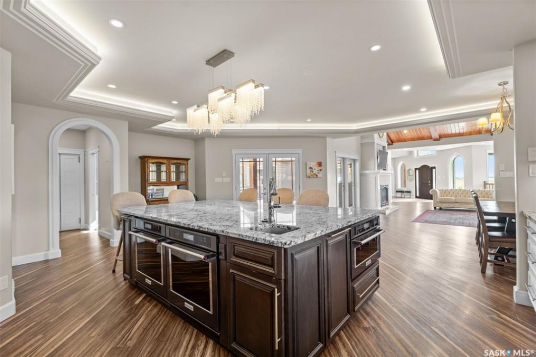 Welcome to luxury country living just outside the town of Kamsack, SK, where you overlook the town and have a large plot of land sitting on 14.37 acres. This parcel has a shelterbelt with plenty of trees planted, a 48 x 35 detached shop with solar panels to help offset the cost of the house and the shop. This luxury custom bungalow is 3,283 sq ft with a triple attached garage, two furnaces, three Van-ee systems, an on-demand hot water system with an additional hot water tank, two AC units, an emergency generator to power the house, and it's connected to city water. The main floor consists of a primary bedroom wing, the dining/kitchen/living room, and on the far side, children's bedrooms, laundry, and entry to the garage. This floor has vaulted ceilings, plenty of natural light, and beautiful views of the backyard, with luxury lighting throughout. The primary bedroom wing has a vaulted ceiling with doors exiting to the deck, a walk-in closet, and a beautiful 5-piece ensuite with a get-ready table, jacuzzi tub, steam shower, and his-and-her sinks. Also in the wing is a nursery room (or additional closet space), a 3-piece bathroom, and an office turret. Coming back into the living room, with an open floor plan and a gas fireplace with 4 different entrances to the backyard. The kitchen has two ovens, a 5x9 island that can seat up to five people, and off to the side is a butler's pantry with an additional fridge, sink, and plenty of storage. The children's rooms come with a Jack-and-Jill bathroom (5-piece), and down the hall is the laundry room equipped with a dog wash station. Downstairs has a family room with in-floor heat, a luxury bar with keg taps, dishwasher, fridge, microwave, and an additional office with a bedroom, kids' playroom, and a 4-piece bathroom. The backyard has a hot tub, kitchenette with a BBQ/griddle, sink, sunken fire pit, and a gas fireplace with a TV mount to enjoy those late summer evenings.