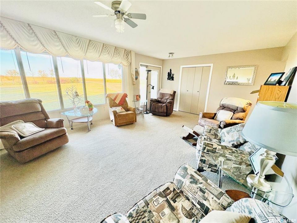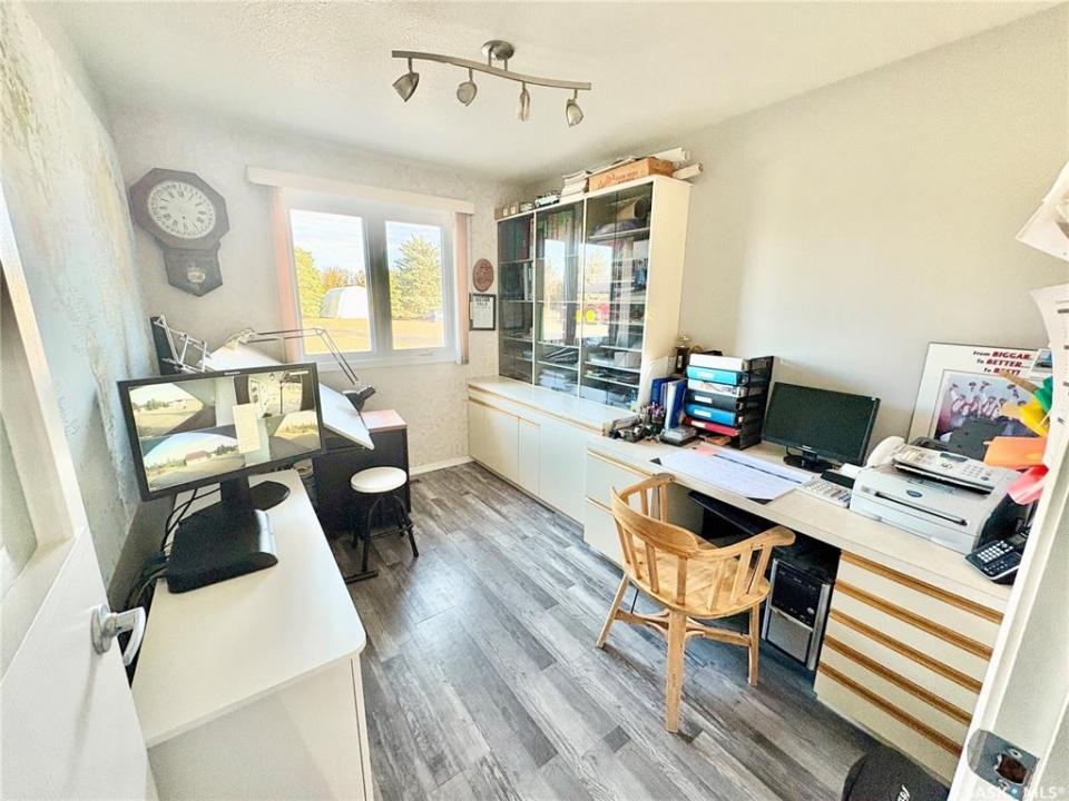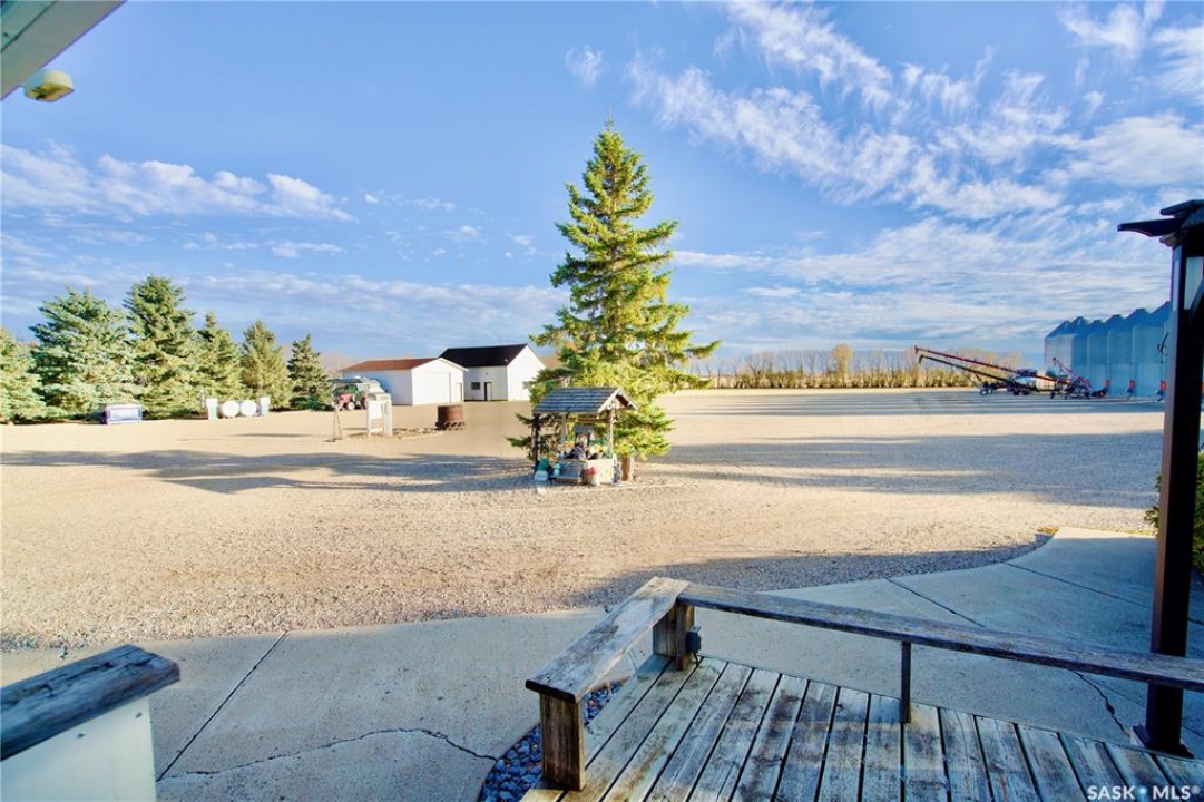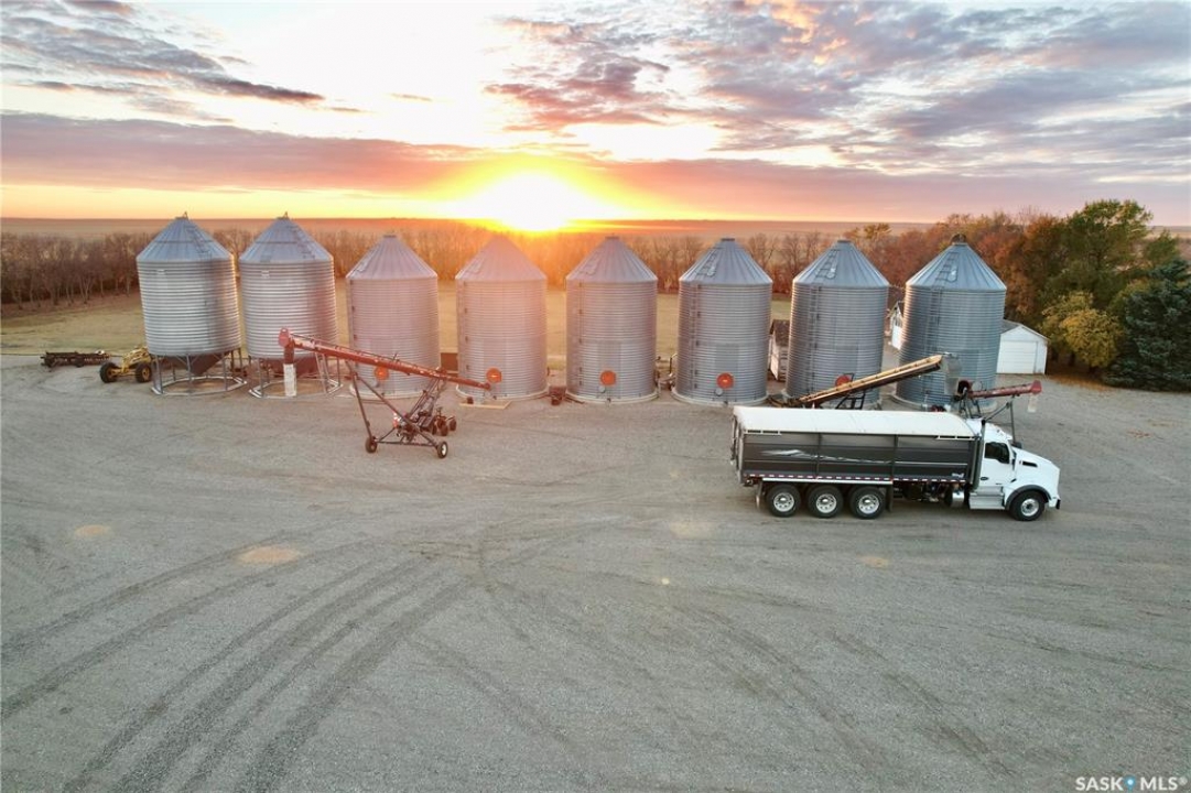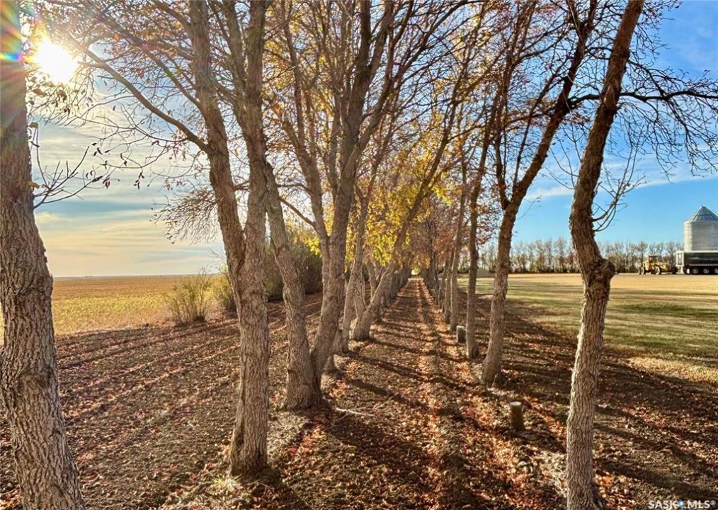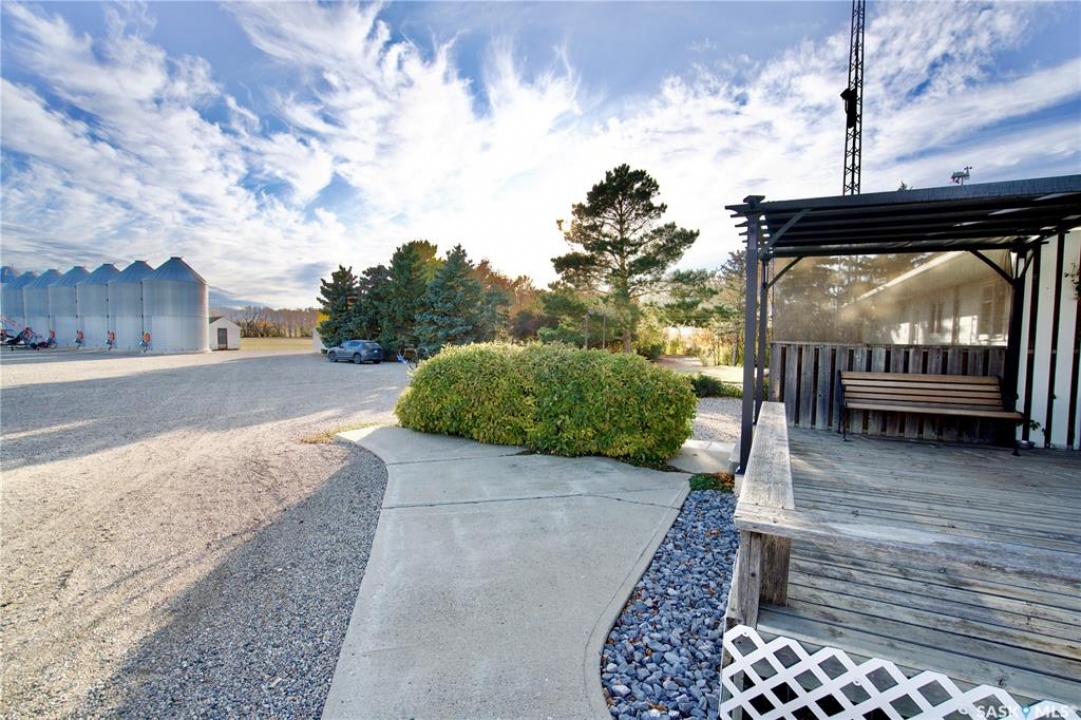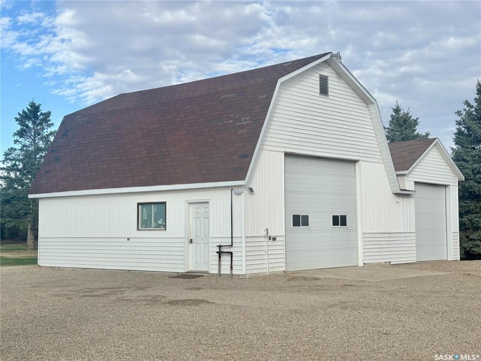Immaculately maintained 12.59-acre acreage located just west of Wiseton in the RM of Milden (pending subdivision). The spacious 2,416 sq ft bungalow offers 5 bedrooms, 2.5 baths, a heated double attached garage, and a bright, functional layout designed for family living. The home features newer shingles within last 3 years, a high-efficiency Lennox furnace, central A/C, natural-gas fireplace, and Generac backup generator. The yard has been professionally laser-levelled for perfect drainage to the dugout (no spring puddling) and includes a large garden, mature shelterbelt, and open meadow laser levelled for a future Quonset. Outbuildings include a radiant-heated auto shop with lift and paint booth, an in-floor heated woodworking shop with upper storage, and multiple cold-storage buildings, including a quonset and concrete-floor sheds. The well-planned bin yard offers 2 hopper bins and 6 cement-bottom bins (29,200 bu total); hopper bins can be removed for a price adjustment, and the cement bins provide rental-income potential. Serviced with Elrose Pipeline potable water, natural gas, and septic pump-out, this acreage combines comfort, functionality, and true pride of ownership. See attached supplement for additional information and aerial footage of acreage.