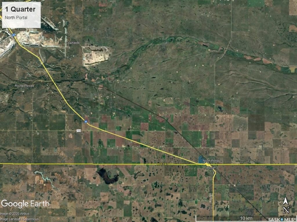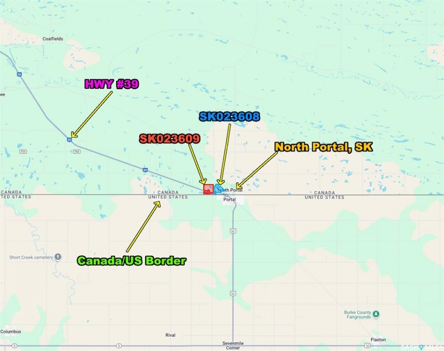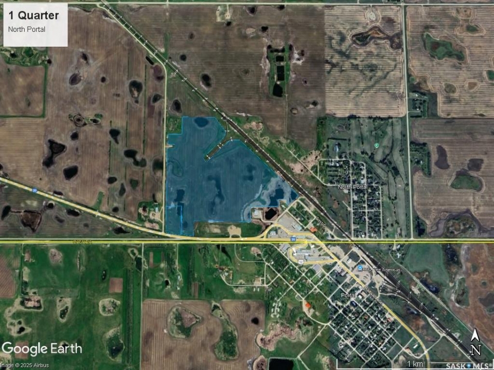 104.14 acres for sale that reside within the Village Of North Portal in southeast Saskatchewan right along the Canada/US border with Highway #39 frontage. The land is currently being utilized for crop production. SAMA Field Sheets identify 86 cultivated acres with a 48.39 final rating. Sask Crop Insurance rating is “J”. Parcel 1: Blk/Par X-Plan 101385176 Ext 2 is comprised of 100.07 acres and is currently zoned Agriculture. Parcel 2: Blk/Par W-Plan 101385132 Ext 3 is comprised of 4.07 acres and is currently zoned residential. There is one older fertilizer hopper bin on this parcel that is included. With its strategic location within the Village limits, Highway 39 frontage and proximity to an international border crossing, this property presents an ideal site for potential commercial or residential development, or as an addition to an existing farming operation. Available for the 2026 crop season. Looking for more land? There is a contiguous quarter section for sale, SK SK023609. *All property boundary outlines in images are an approximation only*