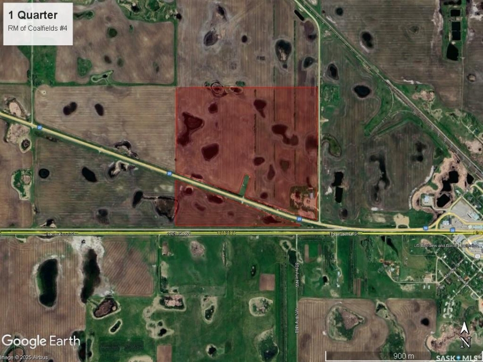 146.28 acres for sale located just west of North Portal, SK in the RM of Coalfields #4 right along the Canada/US border with Highway 39 frontage. The land is split into two parcels by Highway 39, offering both north and south highway exposure providing opportunity for potential future development. The land is currently in crop production. SAMA Field Sheets identify 129 cultivated acres with a 45.1 final rating. Sask Crop Insurance rating is “J”. There is a yard site with a power, a 100' x 50' Quonset with concrete floor and some trees. All of the bins located in the yard site are NOT included in the listing. There is a surface lease in place with Enbridge providing approximately $800/year of annual surface lease revenue according to the Seller. Available for the 2026 crop season. Looking for more land? There is 104 contiguous acres for sale, SK023608. *All property boundary outlines in images are an approximation only*