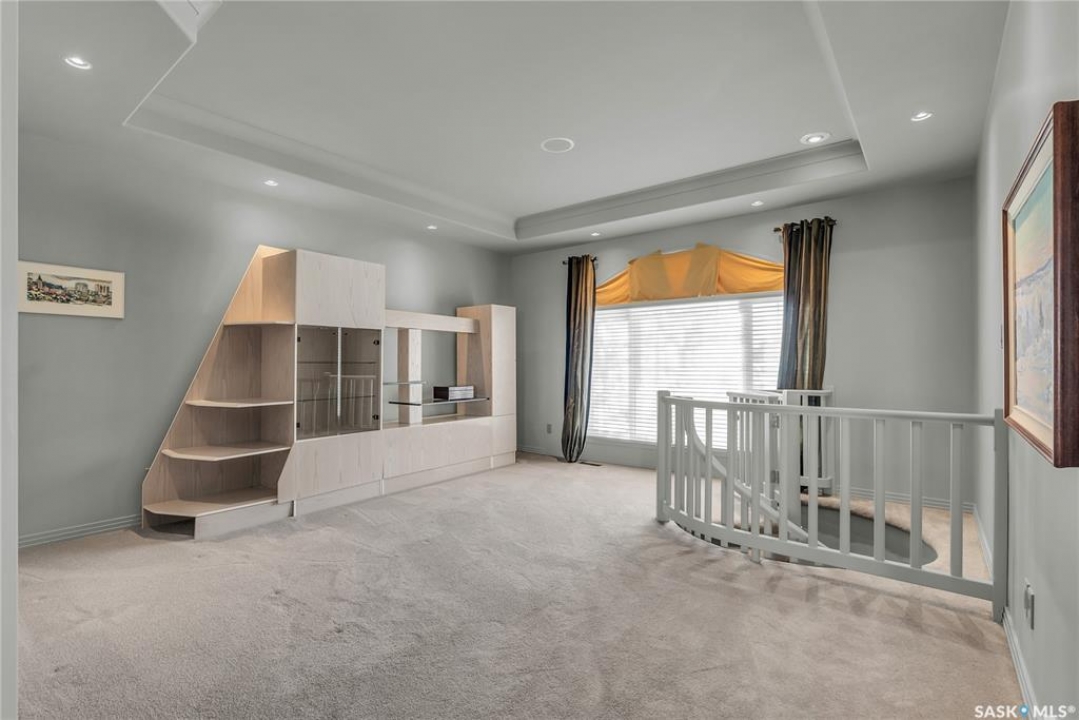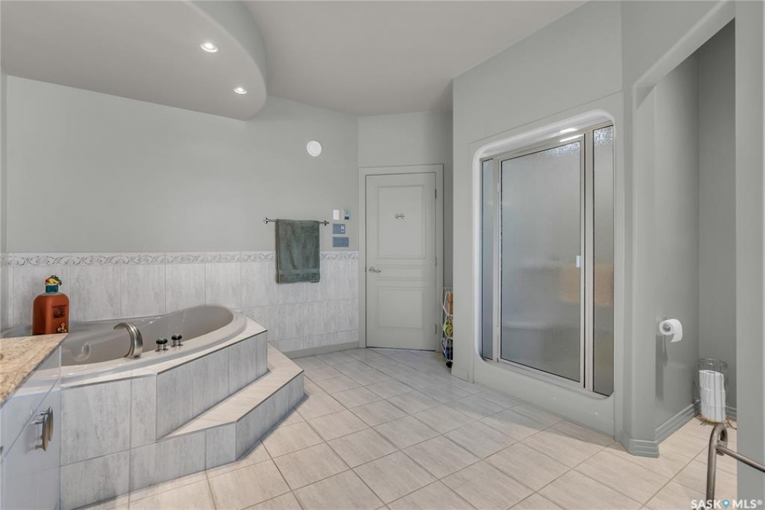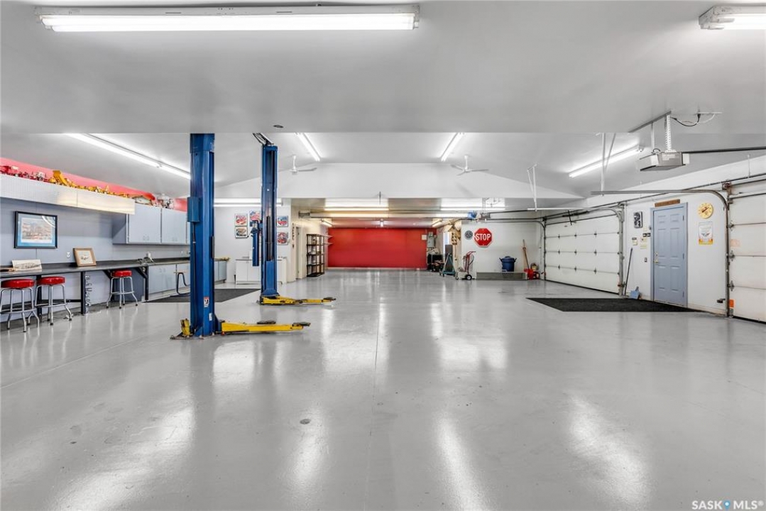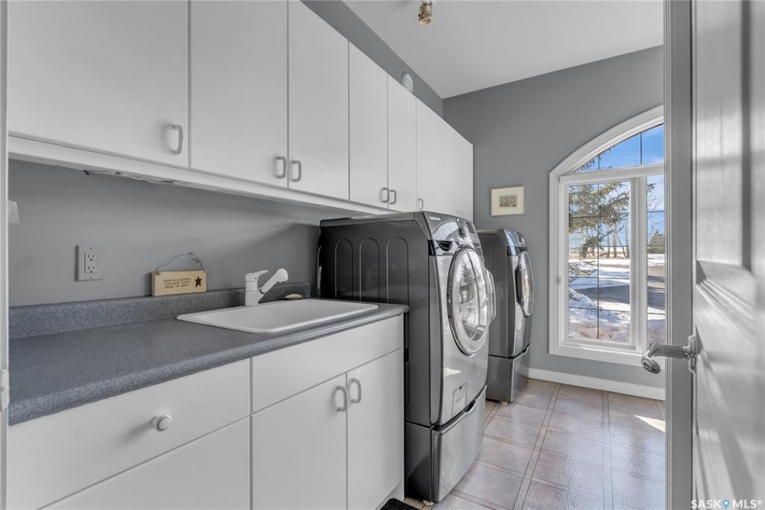 This 3640 sq ft Walkout Bungalow is situated on a 8.8 acre parcel with views of the South Saskatchewan River. With a wonderful location in an active community with rink & play center. Walking into this home, you are welcomed with double-door entry with phantom screens and a spacious foyer leading to an open floor plan with 10 ft ceilings. Great Room features a gas fireplace and custom Redl built-ins, large windows with scenic views. Custom Redl Kitchen is a perfect space with an abundance of cabinets, oversized island with seating, storage, gas cooktop, sink with garburator, granite countertops, baking counter with appliance storage, wall pantry with roll outs, Sub Zero Fridge, built in dishwasher, brand new trash compactor, built-in oven & microwave, coffee bar, dining nook with garden door to composite deck. Formal dining room with a buffet niche. Primary Bedroom is a full retreat with views of the river and access to the deck, gas fireplace with built-ins, dual walk-in closets(1 with stackable washer & dryer), a 4 piece en-suite with in-floor heat, air jet soaker tub, separate shower, dual vanity with granite top & linen closet, sitting area with direct access to basement gym and 3 piece bathroom. Den with a tray ceiling and bayed window.2-piece bathroom with custom stone countertop, laundry room with cabinets, sink, & craft/sewing desk complete the main. Walkout basement features in-floor heat, large family room with 3-way gas fireplace, garden door to covered, partially enclosed patio,games area with wet bar feature seating, fridge,dishwasher & sink. 2 large bedrooms with jack&jill 4- piece bathroom, den/craft room with closet, large mechanical/storage room with wine room. Home is wired for sound system,LED lighting up the driveway, new carpet(2023), new boiler(2023), central vac,4 furnaces & central air, window treatments, & generator for backup power. Attached 8-car heated garage, detached 12-car heated garage/workshop with hoist &cabinets &2-piece bathroom.