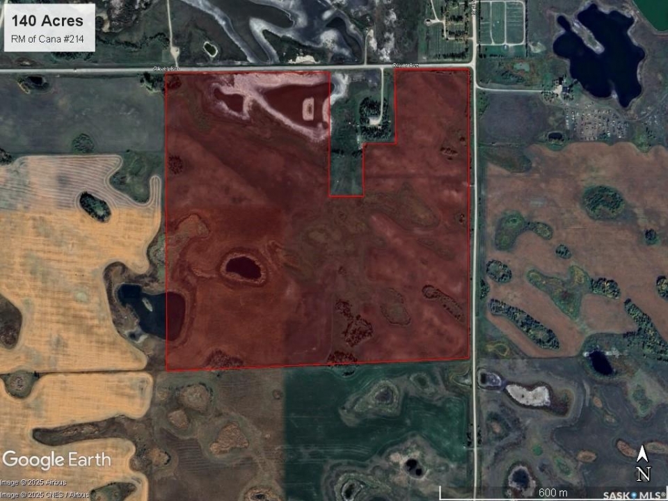 140 acres for sale (NE 20-22-06 W2 Ext 1) bordering the city of Melville, SK in the RM of Cana #214. The owner states that there are approximately 120 cultivated acres, buyer to do their own due diligence as to the number of cultivated acres. The owner did some bush clearing and cleanup to increase cultivated acres and the assessed value of the land has not been updated to reflect the work that has been done. The land is primarily T2 topography (gentle slopes) with some T1 topography (level/nearly level). “K” Saskatchewan Crop Insurance rating. Location & Access: The land has great access with roads on the north and east sides, located just south of the city of Melville. Lease: The land is rented out for two more years, expiring at the end of 2027. Asking Price Breakdown: $2,677.62/Titled Acre, 1.84 x 2025 SAMA Assessed Value