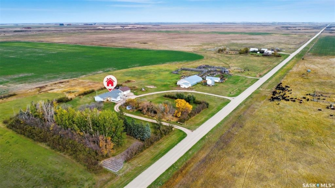 Discover the perfect blend of rural tranquility and modern living with this spacious 1,521 sq ft bungalow situated on 7 acres, under 10 min to Watrous and a short drive to Nutiren Lanigan and BHP Jansen mine sites. Ideal for families, commuters, or anyone seeking space and privacy in a convenient location. Step in the side door to a large mudroom that gives access to the attached single garage, basement or kitchen. Kitchen offers tons of workspace and storage - you'll love the custom oak cabinets! This well-maintained home offers 3 bedrooms, 3 bathrooms, and an open-concept layout that includes a bright kitchen, large living room, and dedicated dining area with patio doors that lead to a newly added covered deck. Basement offers additional living space with a wood fireplace and storage. Recent upgrades include new boiler January 2025,New septic line/RO System April 2025, upgraded electric panel 2021. Boiler heat is cost efficient, with floor heat in kitchen. Enjoy panoramic prairie views, mature yard site, and plenty of space for hobbies, gardening, or outbuildings. Access is easy via a well-maintained road, and services including well power, well and septic are in place.