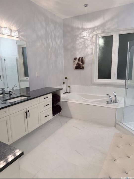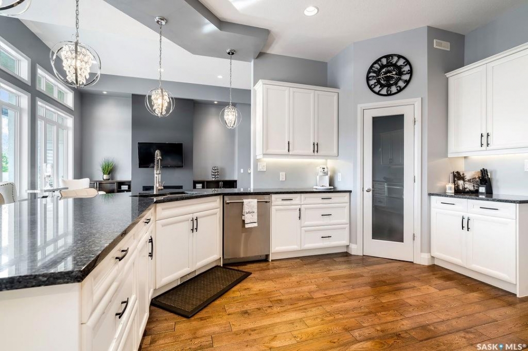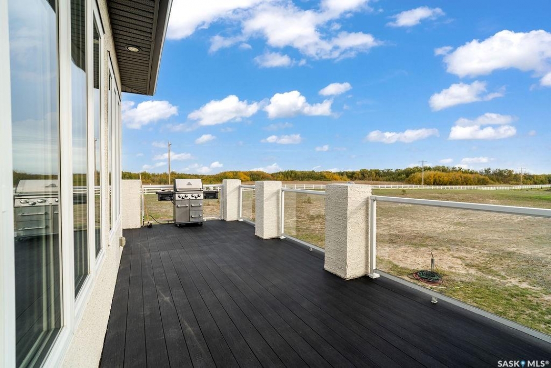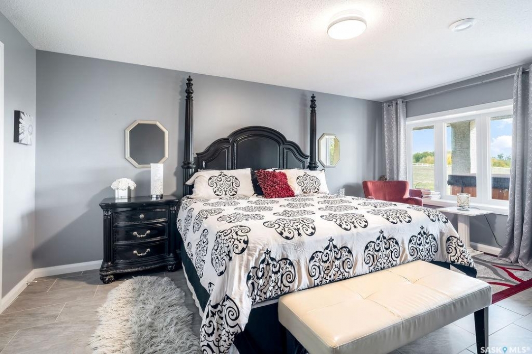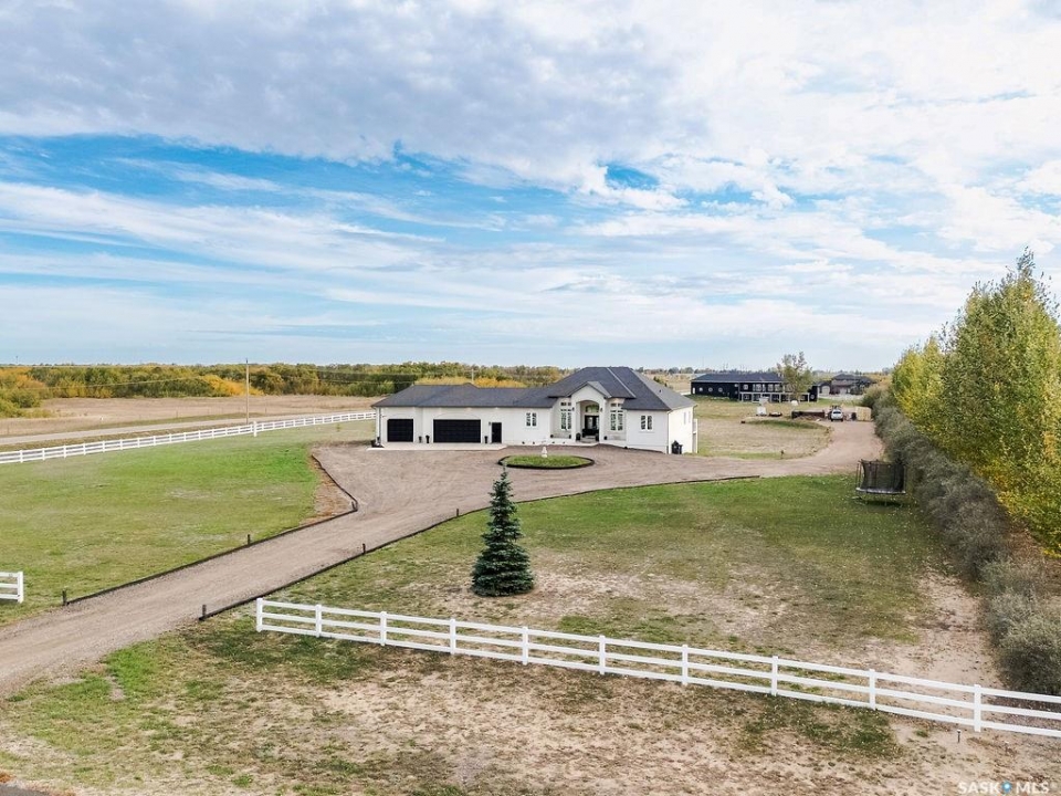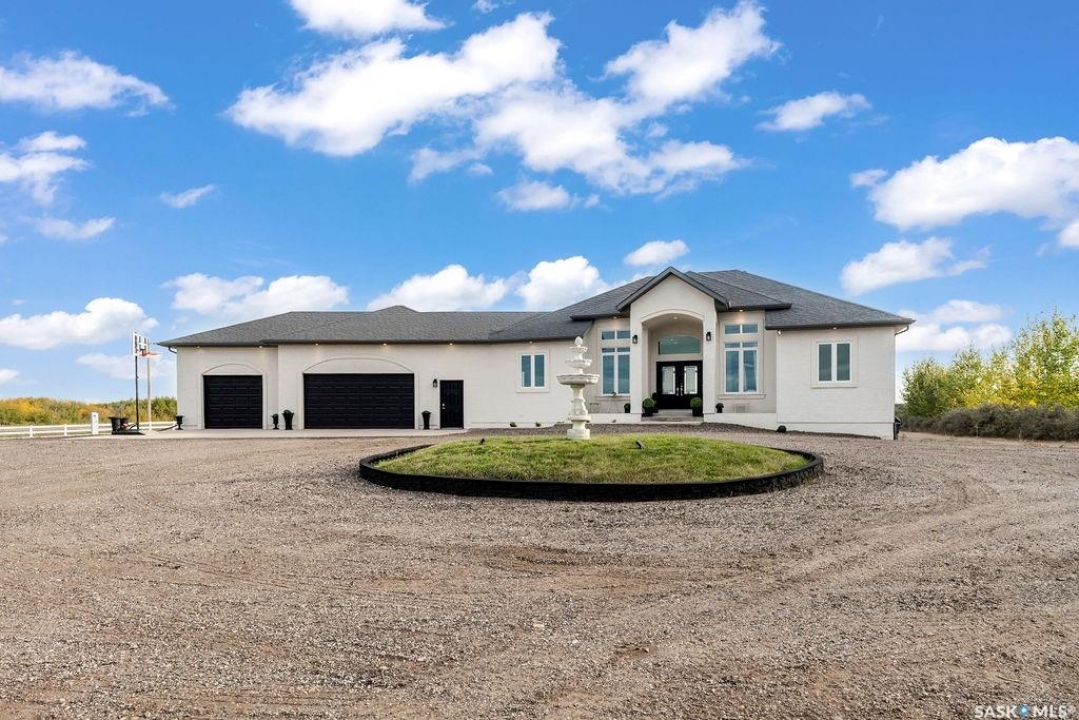 This peaceful 3.5 acre retreat features a sprawling walkout bungalow with close to 4,800 sq ft of living space designed for luxurious country living, yet still close to city amenities. Built on an ICF foundation, this bright open-concept layout has high ceilings and lots of windows allowing for plenty of natural sunlight. The gourmet kitchen showcases elegant cream cabinetry, granite countertops and high-end stainless steel appliances, along with a convenient kitchen sweep, and walk-in pantry. A spa-inspired primary bedroom has cozy fireplace and direct access to the back deck, also features a relaxing jetted tub, spa shower and a huge walk-in closet complete with custom built-in dressers. Second bedroom on main floor would also make a great home office. Main floor laundry room is thoughtfully designed with plumbing and electrical setup for a potential conversion into a nail or hair salon. Walkout basement is ideal for entertaining or multi-generational living, with room for theatre seating and hook up for potential bar or kitchenette. 3 bedrooms with large windows, 2 bathrooms, a workout room and furnace room complete the basement. No shortage of storage space in this home! Comfort is elevated with in-floor heating in all of the bathrooms. Garage floor and basement floor have separate boiler system, which would also work to heat potential swimming pool. Oversized triple-car garage provides ample storage and workspace with heated floor and 220 amp service. Large driveway for plenty of parking space and eco-friendly driveway constructed from recycled highway asphalt. Step out onto the expansive deck, perfect for morning coffee or evening sunsets, surrounded by nature, this property offers tranquility, space, and sophistication!