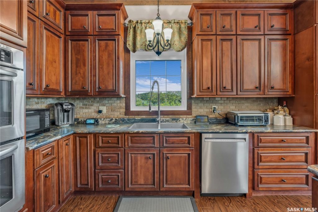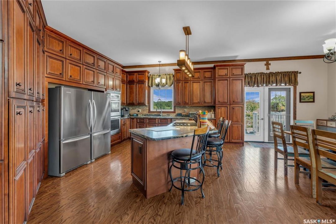 Welcome to the Barndominium at Turtle River — 159 acres of Saskatchewan countryside offering upscale rural living, income potential, and endless recreation. Just 14 km from Edam (home to a K-12 school only 14 km away, with bus pickup right at your door) and 62 km from North Battleford, this gently rolling property includes 90 cultivated acres currently rented out for income, with the remainder in pasture, bush, and the scenic Turtle River. At the heart of the property is a custom-built 3,060 sq. ft. barndominium (2013) with an ICF block foundation, in-floor heating, and durable metal siding and roof. Inside, soaring 10' ceilings, a rustic stone fireplace, and solid fir interior doors and trim add warmth and character. The chef's kitchen boasts two built-in ovens and two full-sized refrigerators—perfect for entertaining. Three spacious bedrooms each have walk-in closets, with the primary suite offering an elegant ensuite and a patio door leading to a private deck. An additional sitting room provides another comfortable space to relax, which could easily double as an extra bedroom if needed. Connected to the home is a 2,940 sq. ft. heated shop with a three-car garage and RV bay. The landscaped 3-acre yard includes a two-tier deck, orchard with multiple fruit trees, fire pit, three garden plots, a 100-yard shooting range, and a hunting blind—making it an ideal hunting lodge or retreat. With a deep well, propane heat, septic system, and new air conditioning, the Barndominium at Turtle River blends comfort, privacy, and nature into one exceptional package. This isn't just a home—it's a lifestyle. Here, you can grow your own food in the gardens and orchard, watch deer and other wildlife wander through your yard, and breathe in the fresh country air. Spend your days surrounded by nature's beauty, and your evenings taking in the peace and quiet you truly deserve. Book your private showing today and experience everything this incredible property has to offer.