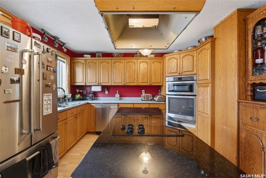 Stunning 10-acre retreat offering the perfect blend of country living and modern efficiency. This well-maintained 4-level split features significant high-ticket upgrades, including a new natural gas furnace, central air conditioning, and recently replaced shingles. The interior is bright and refreshed with newer countertops, updated windows, and fresh paint throughout. The functional floor plan boasts a master suite with a walk-in closet and 3-piece ensuite, plus a cozy lower-level family room with a wood stove and direct access to the double attached garage. Step through the garden doors off the kitchen/dining area to a spacious SW-facing deck, ideal for enjoying the well-maintained, park-like grounds. The property is a hobbyist's dream, featuring an established orchard with Saskatoon, plum, cranberry, and apple trees. The acreage is also fully set up for horses or cattle with fencing, corrals, stalls, and a dugout. Connected to city water and located just minutes from Silver Hills Golf Course, local schools, and Prince Albert. This solid home offers peace of mind and incredible outdoor space!