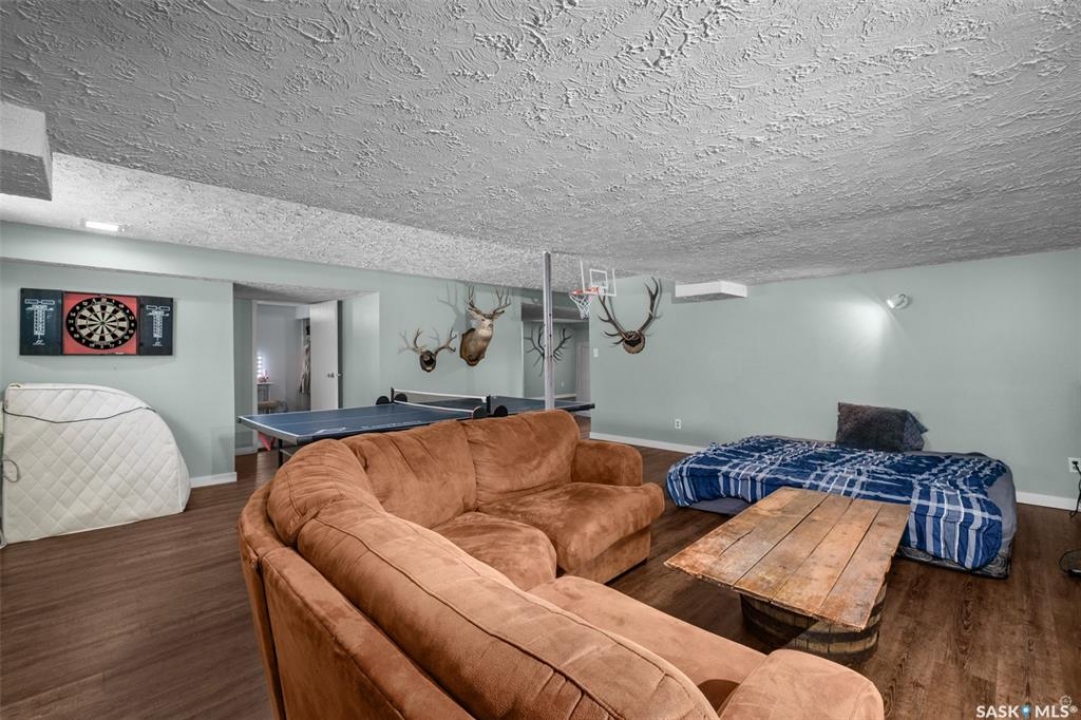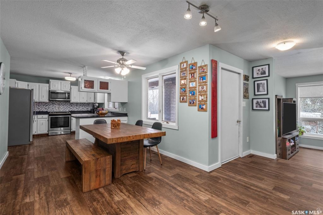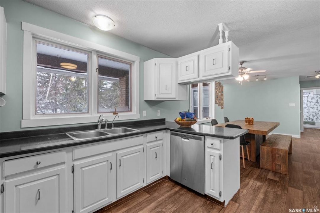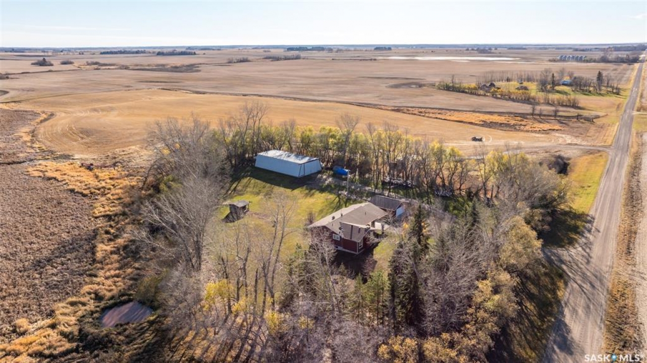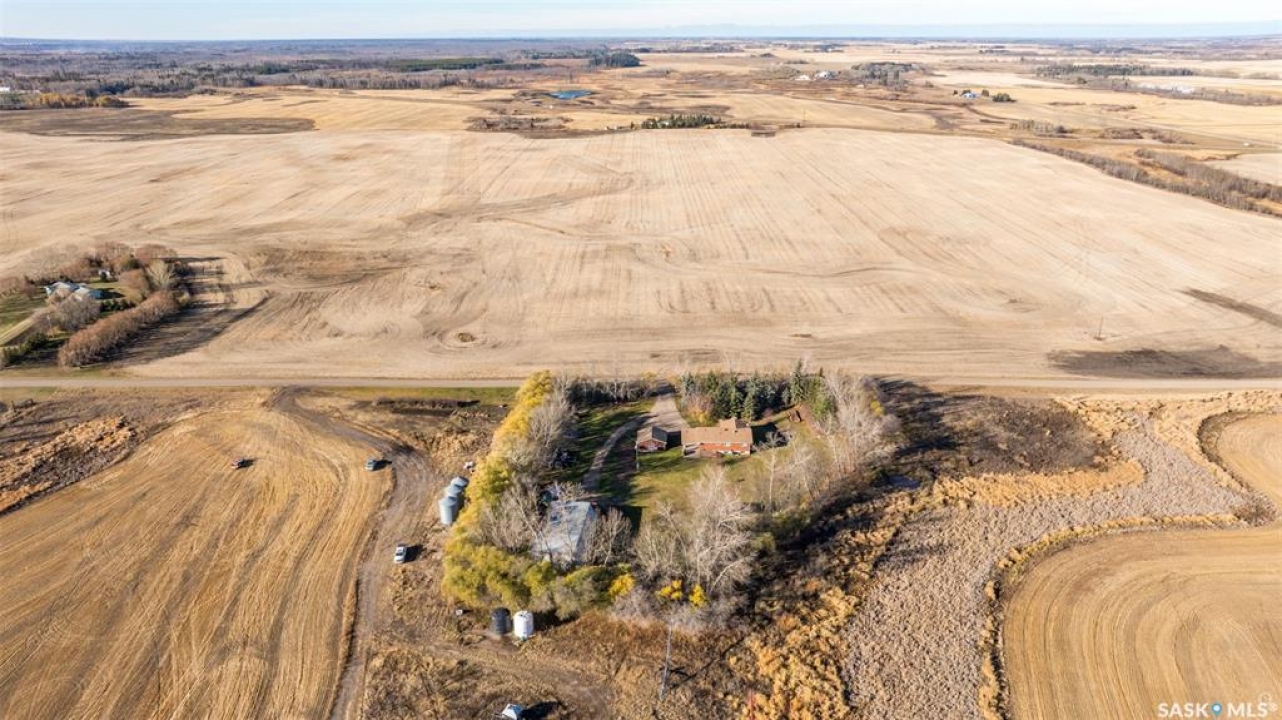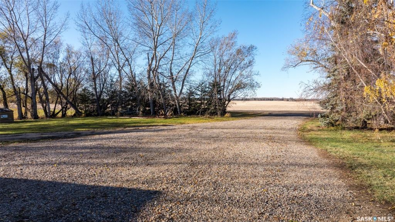 Stunning 1,364 sqft bungalow situated on 9.88 acres, just 20 minutes from Prince Albert and 10 minutes from Meath Park! This beautiful property welcomes you with sleek vinyl plank flooring throughout and an abundance of natural light. The main floor features a large living room with a nice wood burning fireplace, a spacious dining area and a bright kitchen complete with white cabinetry, stylish backsplash and stainless steel appliances. There are also 3 generous bedrooms, a 4 piece bathroom and a convenient combined laundry and bathroom with a stand up shower that completes the main level. The fully finished basement offers plenty of room for hobbies, movie nights and gatherings with family and friends, featuring an expansive family room, a 4th bedroom, a 2 piece bathroom and a utility room. Step outside to enjoy your morning coffee or unwind in the evenings on the deck or patio that is surrounded by mature trees that provide privacy and serene views. Car enthusiasts, hobbyists or anyone in need of extra space will appreciate the insulated double detached garage, carport and large quonset with concrete flooring, perfect for parking, storage or a workshop. There is also a garden area, ideal for someone who enjoys gardening and cultivating a vibrant outdoor space. The property is connected to a well water system and has a lagoon sewer system. Experience the best of country living with this exceptional property. Don't let this opportunity pass by!
