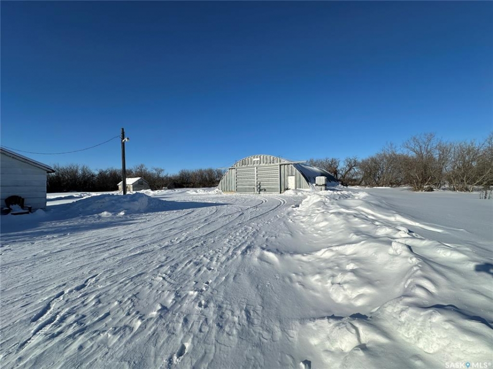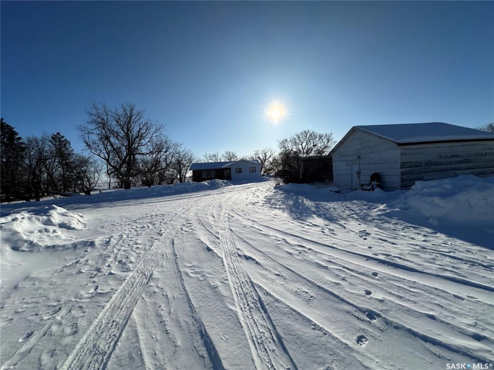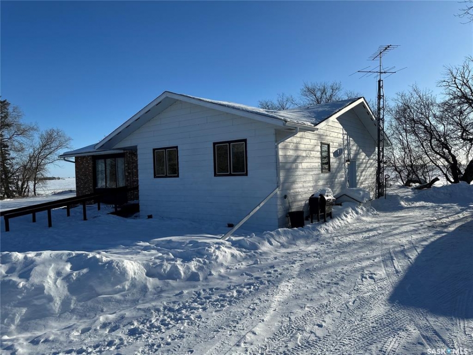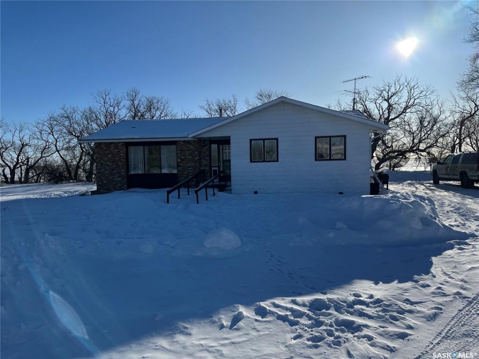 Tree sheltered mature acreage 40 min from Saskatoon North Costco on 3.92 acres 2 miles West and 1 mile North of Laird SK. 1408 sq ft solid built bungalow with older but quality finishes and a wheel chair ramp to the front door. Serviced by Sask Energy & Sask Power and on its own well makes for very economical utility costs! The yard has a detached 12'x24' garage, a 50x80 steel arch ribbed quonset, & other out buildings. Lots of space for gardening and a great place to raise a family! Only a few miles of gravel to Laird with a K-8 school, the High School is a little further at Waldheim. Main floor features a living room with a large window, kitchen & dining facing the driveway and the yard, 3 spacious bedrooms and 2 bathrooms, 2 entries, & a great laundry room. The basement has an additional bedroom, a roughed in bath, games room, family room, office, & a storage room. Here is your opportunity to escape to the country but with great amenities!