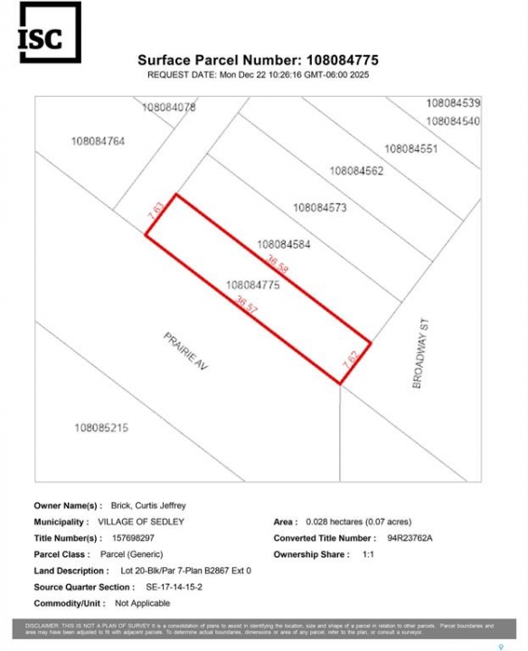 Build your dream home or invest in Sedley with this incredible triple-lot bundle! Spanning a total of 75' x 125', this oversized corner parcel combines three lots into one unbeatable price, offering endless flexibility for a sprawling custom residence, large shop, or potential multi-home development. Seller states existing services are conveniently located at curbstop to jumpstart your build. Enjoy the best of small-town living with a quick, easy 30-minute commute to Regina. Whether you're a developer looking for ROI or a family seeking more space for less, this versatile property is a rare find. Don't miss this opportunity to create something special!