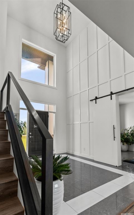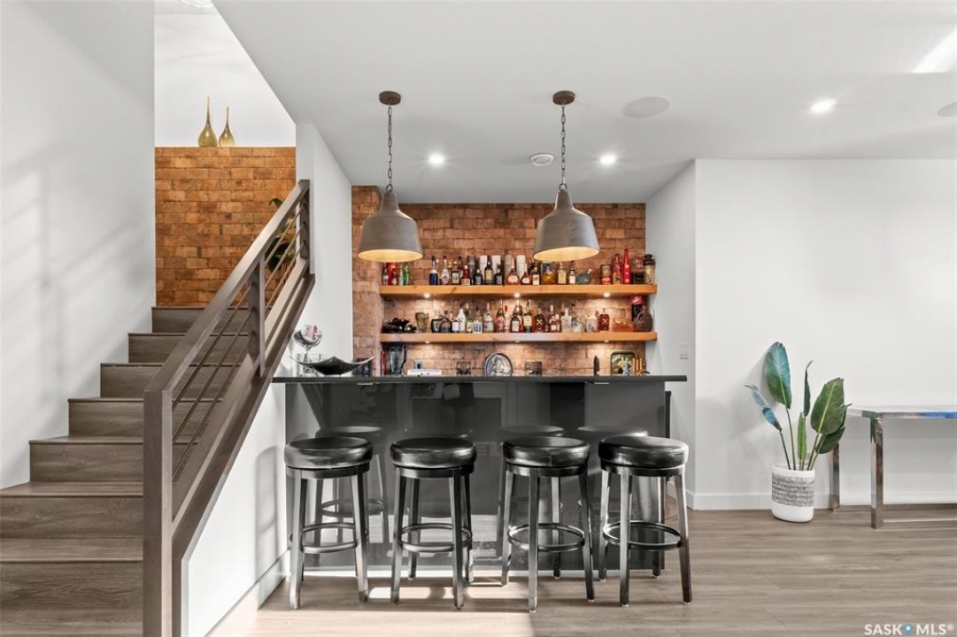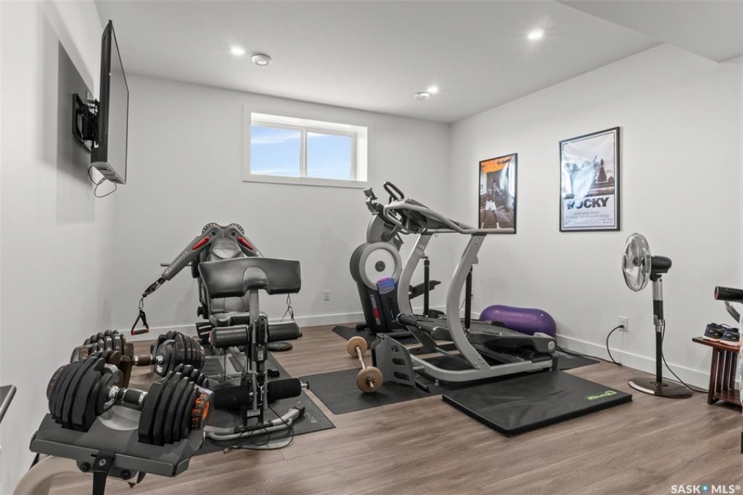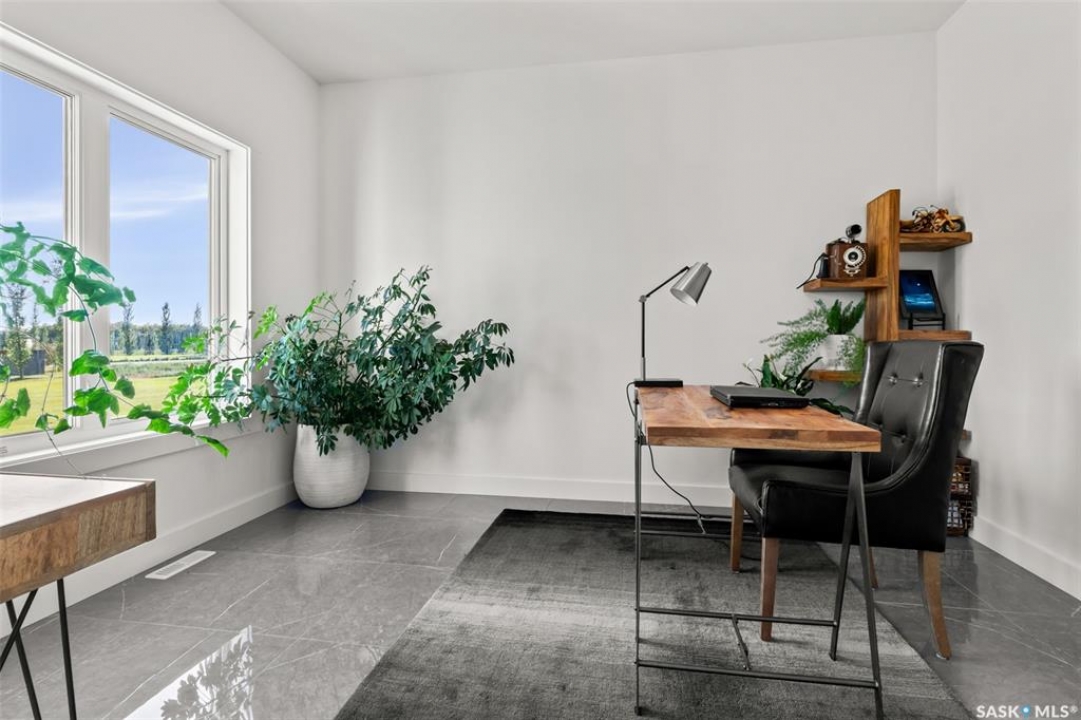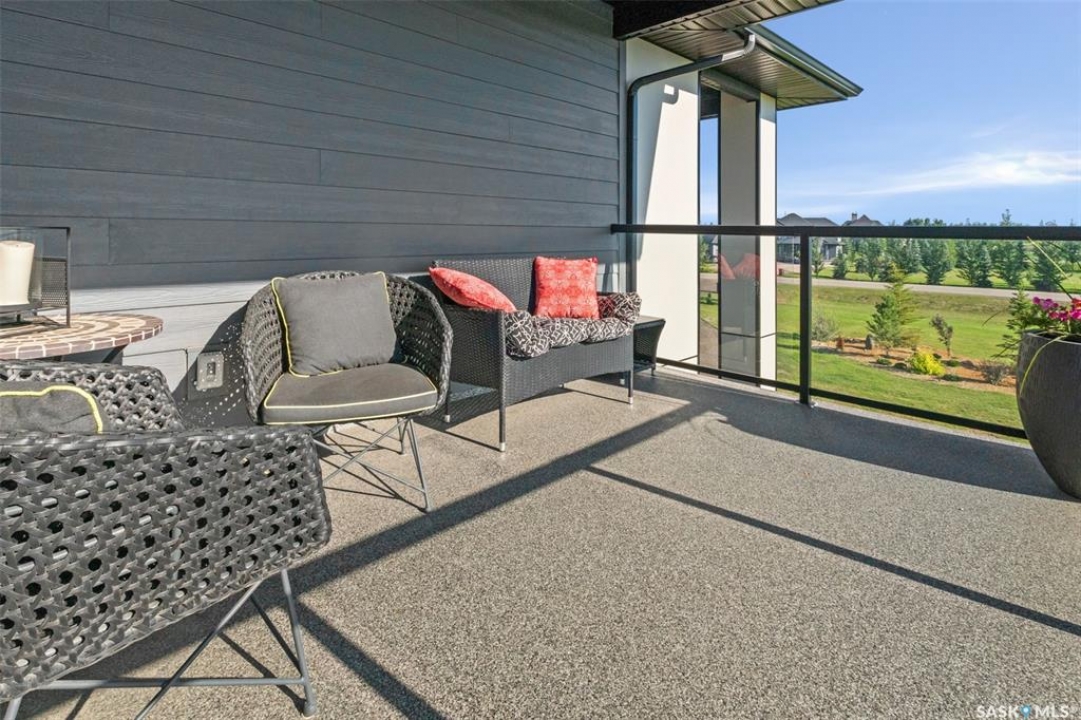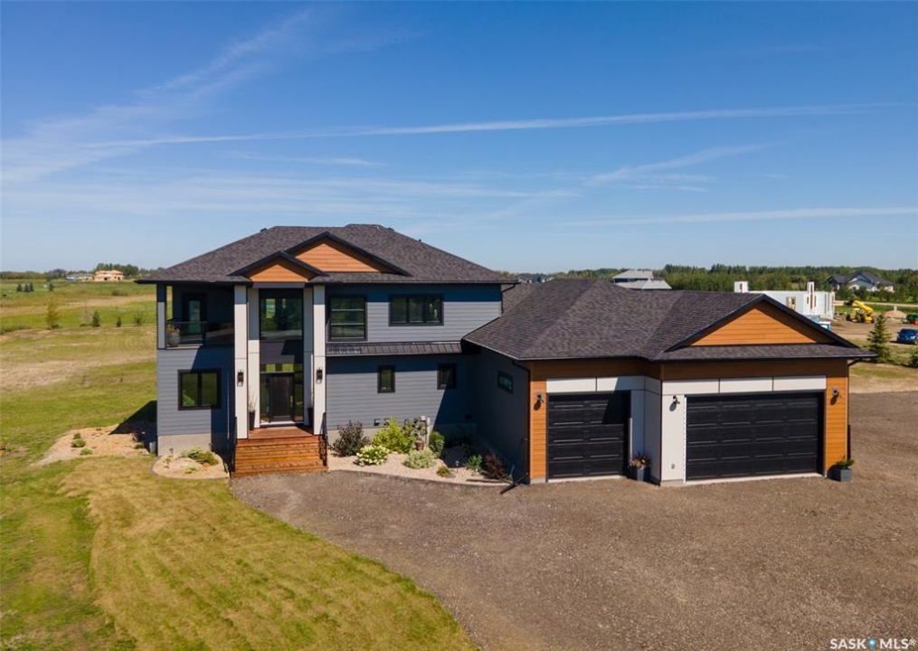 Welcome to 172 Grandview Trail, an exceptional residence in the prestigious Grasswood Estates. Set on three acres, this custom-built home combines modern design with functional elegance, offering four bedrooms, four bathrooms, and a spacious five-car attached garage. The interior is thoughtfully designed with high-end finishes throughout. The chef's kitchen is a true highlight, featuring acrylic cabinetry, quartz countertops, a built-in double oven, a gas stove with a pot filler, and a convenient butler pantry. Perfect for entertaining or everyday living, the open layout flows seamlessly into the living room, where a striking stone fireplace, custom built-ins, and expansive windows create a bright and welcoming atmosphere. The home itself is supplied with city water, ensuring convenience and reliability. The bedrooms are generously sized, designed with both comfort and style in mind. The bathrooms feature granite countertops and spa-inspired finishes, offering a retreat-like experience in your own home. The fully developed lower level provides even more living space, complete with a large family room, stylish bar area, private theatre, and a gym that can also serve as a versatile fourth bedroom. Step into the backyard made for both entertaining and unwinding. The three-tier deck with a built-in pizza oven provides multiple areas to host friends and family, while the meticulously landscaped grounds feature underground sprinklers and a drip irrigation system sourced from the well to keep everything vibrant and low-maintenance. Whether enjoying summer gatherings or quiet evenings under the prairie sky, this outdoor space is designed for every occasion. With its striking modern design, spacious five-car garage, and carefully crafted interior, this home perfectly balances luxury and functionality. Situated just minutes from Saskatoon, yet offering exceptional privacy and room to roam, this home provides the ideal combination of estate living and city convenience.