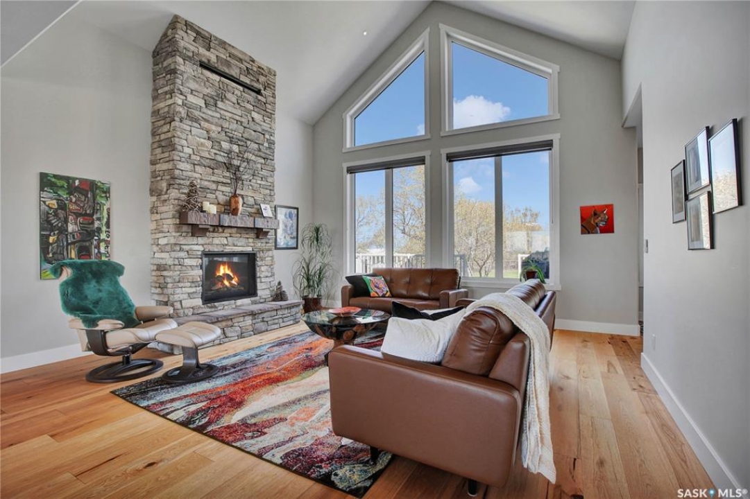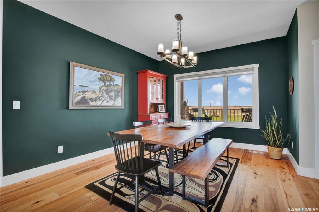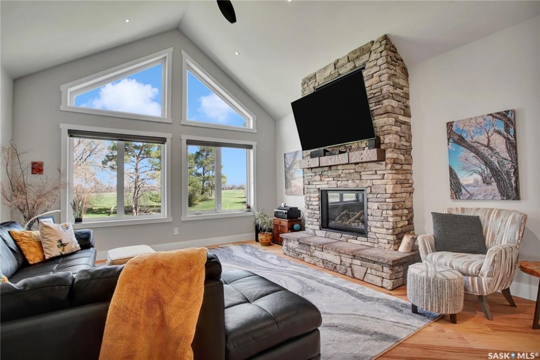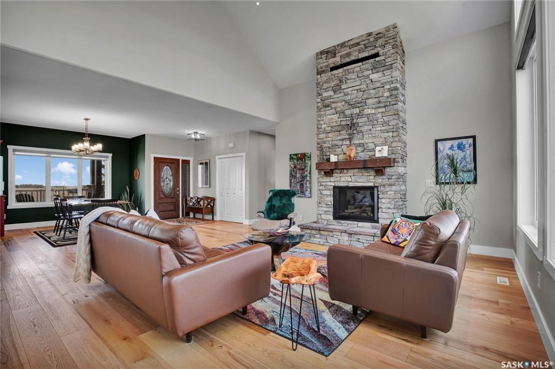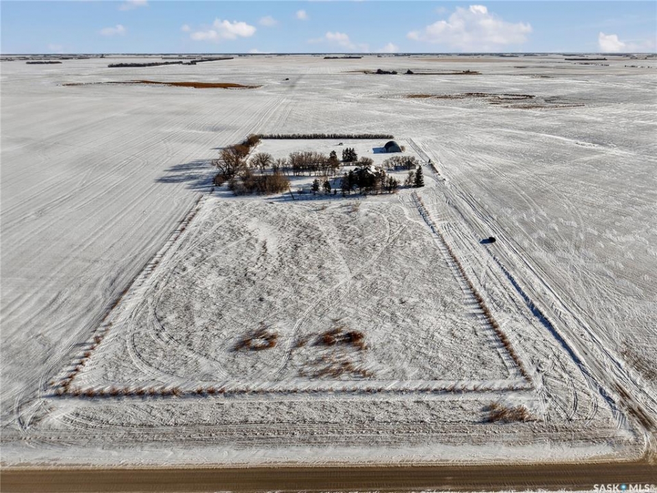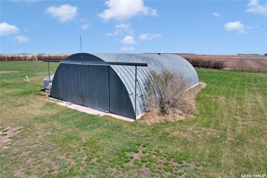 This beautiful, private acreage features 5 bedrooms, 4 bathrooms, a triple-car attached garage, and multiple outbuildings. Located just 22 minutes from Saskatoon, this acreage sits just outside the town of Delisle which features all amenities such as schools, grocery, gas, recreational activities and more. This 2020 built bungalow was customized with high building standards. The veranda at the front of the home provides entry into both the dining room and front hall. The spacious front entry gives access to the triple attached heated and insulated garage, half bathroom and main floor laundry room. The kitchen offers a large island, custom soft closet cabinets and drawers, glass tiled backsplash, quartzite countertops, large pantry and Jenn Air appliances. The kitchen is open to the family room with vaulted ceilings, a propane fireplace and large windows providing both a scenic view and an abundance of natural light. The sun room is fully insulated and can be used year round with a space heater or by leaving the doors open to the main living space. The great room boats 18ft ceilings and a second propane fireplace. Down the hall are three bedrooms including the master suite and the main bathroom. The master offers a walk in closet, five-piece ensuite with a water-air tub, separate stream shower, double sinks and access to the back deck. The outbuildings include the following: Quonset (42 X 70), Shop (20.5 X 33), Horse Stable, 24.5 X 14.5). The workshop is heated and insulated. The large Quonset is finished with a concrete floor and large double doors. The horse stable features two sliding doors and is perfect for horses. The home is finished with 50 year fiberglass shingles, commercial grade ROXUL insulation, triple pane windows, fiberglass doors, high efficient furnace and 100 gallon hot water tank with circulation system. There is a two stage system septic field with pump out and 1500 gallon – fiberglass tank.