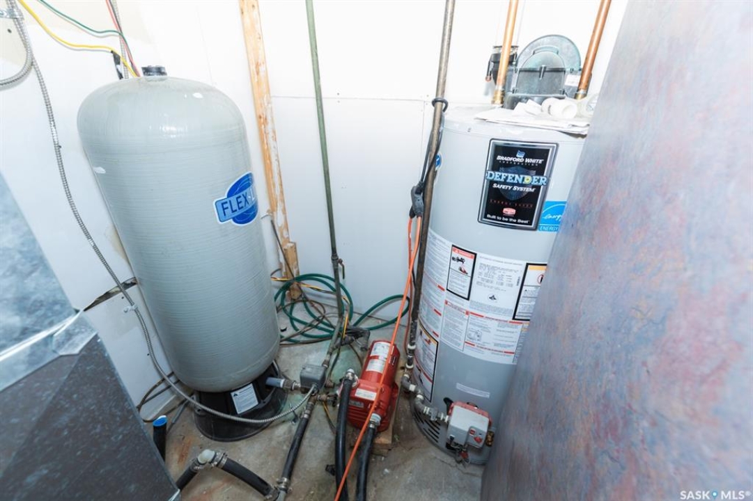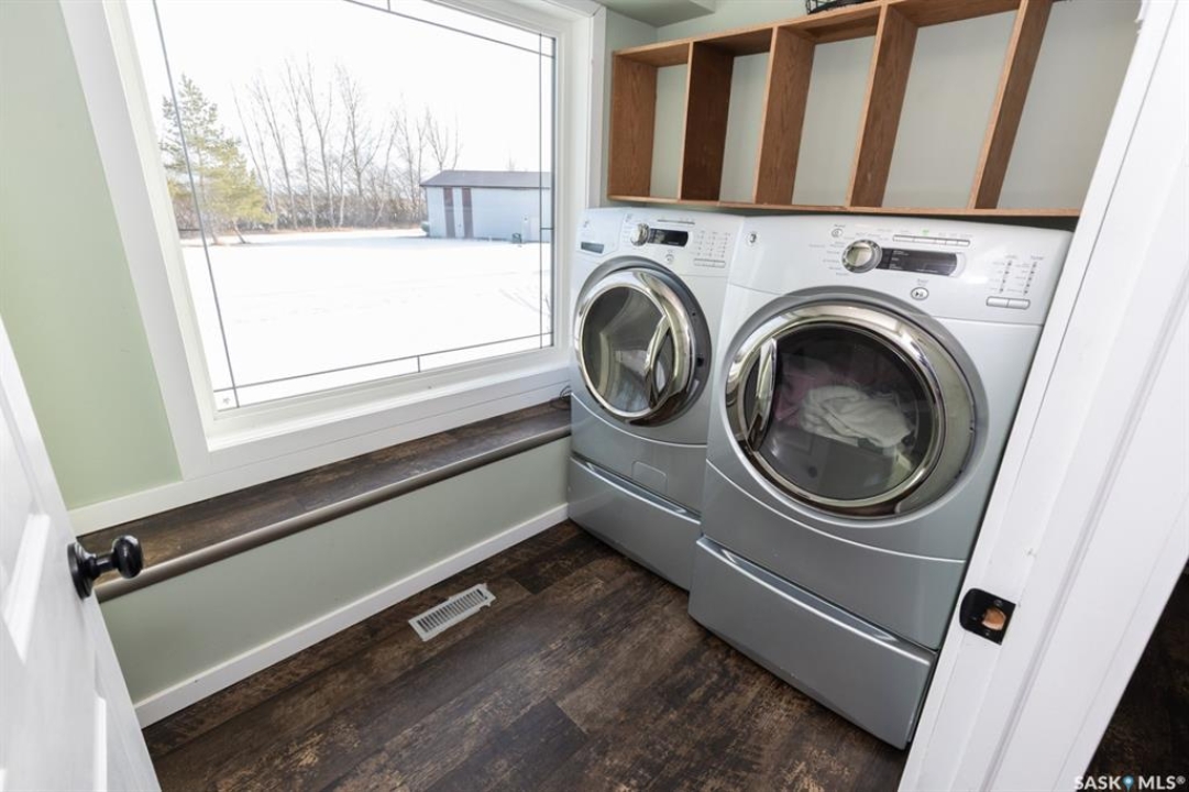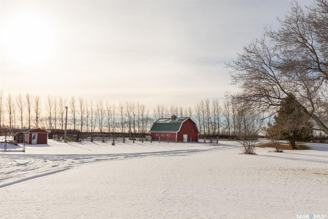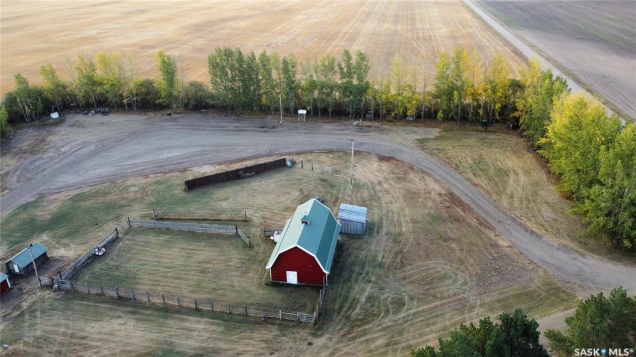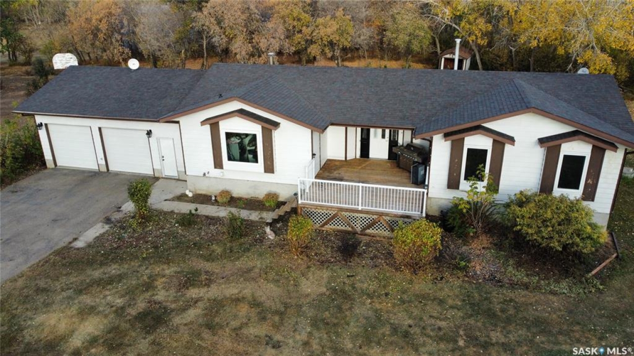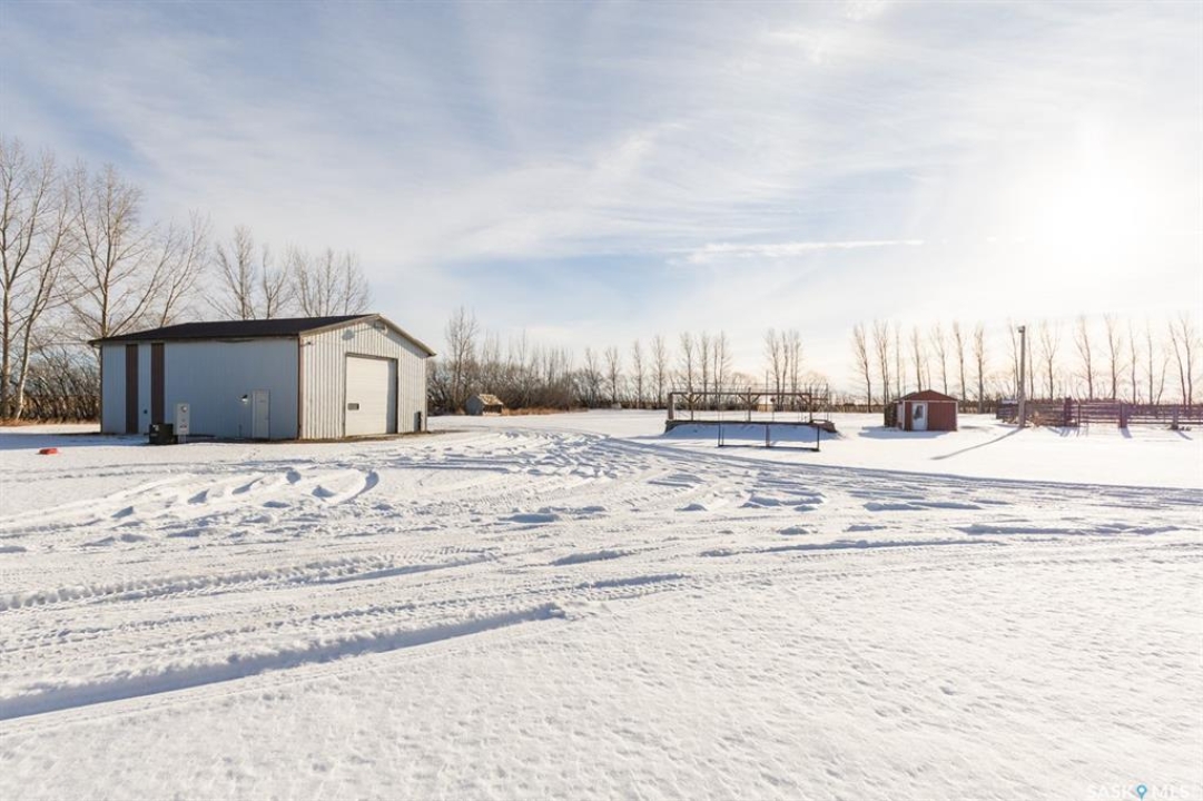 All offers to be received by 5:00 pm. Feb 17th, 2026. This well-developed 10-acre acreage offers a rare combination of comfortable family living and exceptional shop and storage space. The 1,800 sq. ft. home, built in 1995, features five bedrooms and multiple bathrooms, including a 3 piece ensuite, 2 piece bath, laundry at the entrance, a 4 piece main bath, and a 3 piece bath in the basement. The living room offers a propane gas fireplace, while the basement includes a wood-burning fireplace for added warmth and character. Outbuildings are a standout feature of this property. The 28' x 42' insulated shop is propane heated with a concrete floor, 12' x 14' automatic overhead door, and 225-amp service. A heated attached garage measuring 25' x 30' is wired with 40 amps. Additional structures include a 26' x 40' red barn with tin roof and siding, and a 50' x 100' steel Quonset with a 27' w x 16' h door, ideal for equipment and storage. The home is serviced with a 100-amp electrical panel. The yard site is beautifully treed, providing privacy and shelter. Water is supplied by a well (1968) with septic system. School bus service is currently available to Luseland, with prior service to Kerrobert according to the owner. Property taxes have not yet been assessed and are estimated at approximately $4,000 annually. Furnace, water heater a/c approx. 2022. Shingles on house approx. 2015. 2 watering bowls. 1000 gal propane tank at shop, 1000 propane tank at house (house one lasts 1/2-3/4 yr., according to owner), 500 gal propane tank at garage. Well was drilled in 1968, owner does not drink the water, had an RO system under sink, needed to be replaced and owner has moved so never replaced it. Septic tank is probably original (1995) according to the owner. Steve pumps out every fall. Liquids pump out to NE corner. No water issues here. Available for a quick possession A versatile acreage offering space, infrastructure, and a peaceful rural setting.