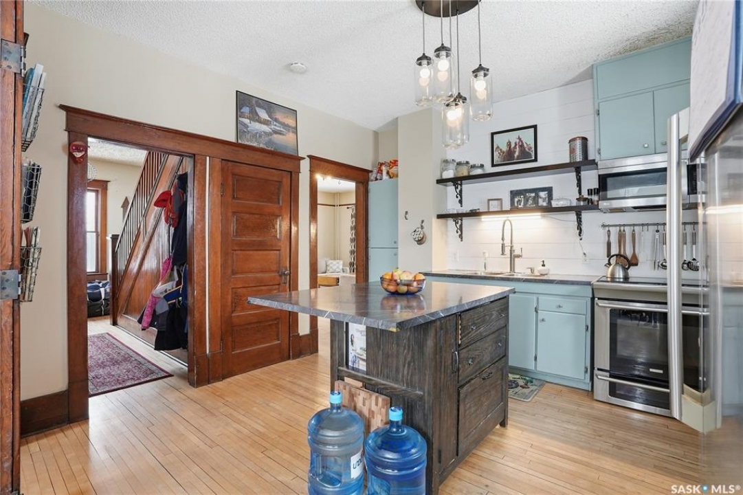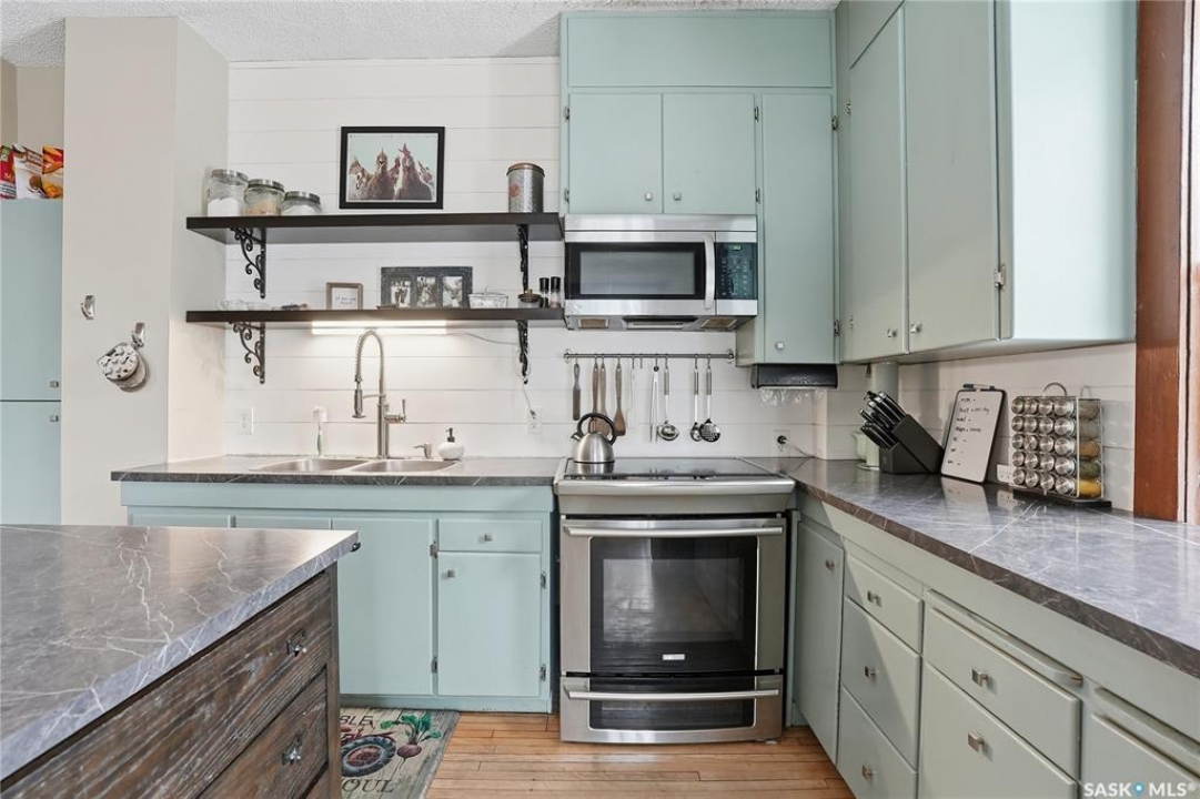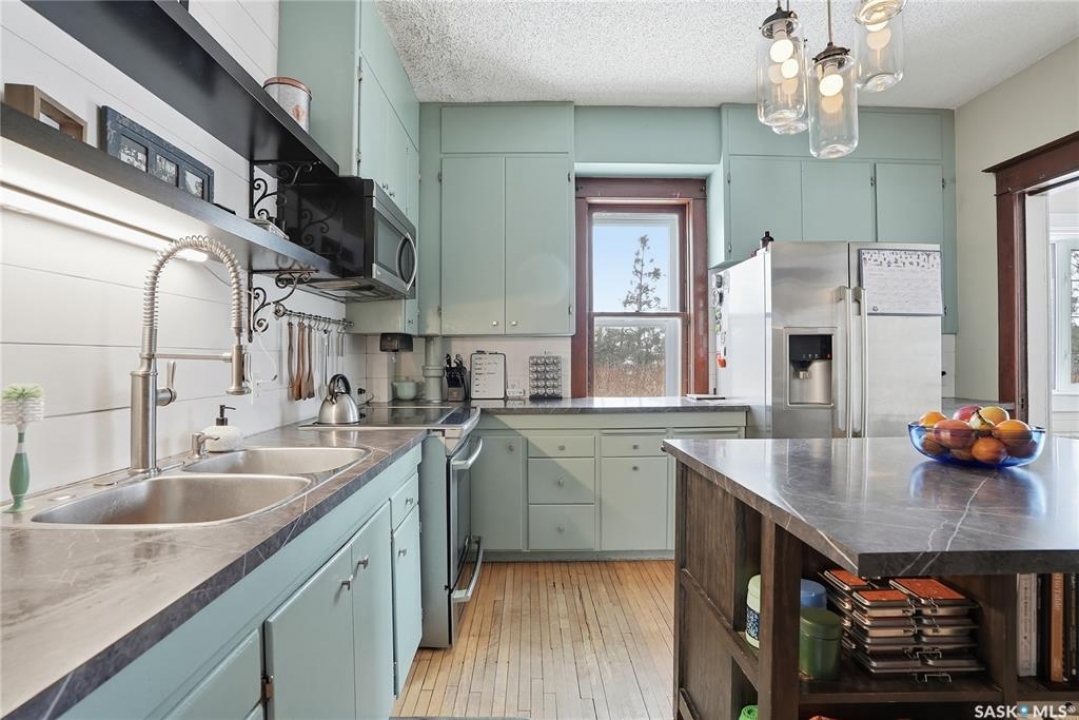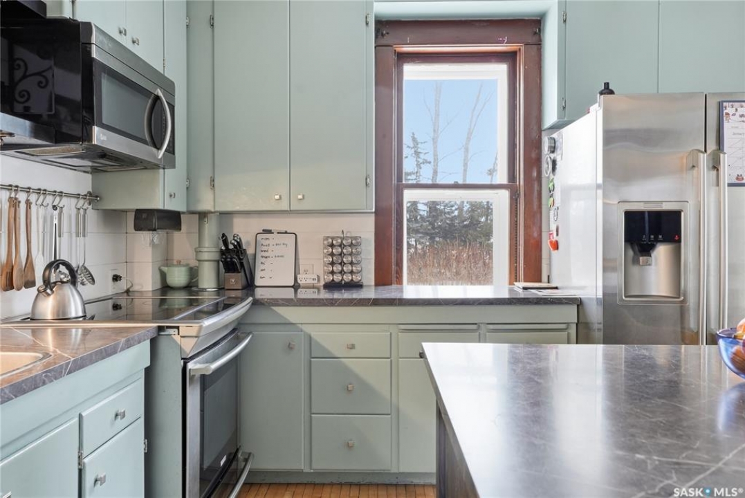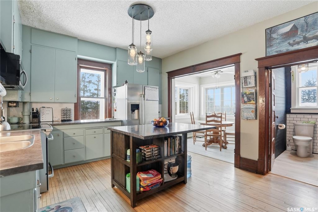 Welcome to a beautiful acreage with an original Eaton's Character Home which still maintains much of its charm! This 34.97 acre property has an abundance of character and beauty. Grass and beautiful trees make it an oasis of quiet living- yet close to valued amenities. The Eaton's Character homes were known best for their sturdy construction and beautifully designed models. They remain a significant piece of Canadian architectural heritage. This home has a family room, a large formal dining room, eat-in kitchen, 2 bathrooms, 4 bedrooms and a mudroom. The 3rd floor was updated/ completed recently to provide additional practical use- with new flooring & painting. (Great as a playroom, or additional space for family use/office or entertaining.) The basement, which is a cement foundation/full basement replaced about 12 years ago, has lots of storage space, and a separate entrance to the outside. A spacious deck is perfect for three season use, and enjoying a coffee, a glass of wine or the perfect spot to read. Shingles were replaced about 8 years ago. The pasture is fenced in. The property is set up for animals - with a Quonset, water bowls, hydrants, corrals, etc. The Quonset can be used for storage or finished for a heated shop, it has been used as loose housing for animals in winter, with corral panels, currently there is a small insulated workshop in it. The quonset is 40' x 60', has a metal clad roofing, no maintainance. There is power to the quonset. Could be kept as a barn, insulated for a shop, or used as cold storage. There are sliding doors at one end and an overhead door on the other end. Shingles on the house replaced about 8 years. ago This property is located at the end of 1st St W- with walking distance to town. (Hepburn) Hepburn has a K-12 School in the Prairie Spirit School Division, along with stores, churches & close proximity to other towns along highway 12, as well as just a short jaunt to Saskatoon on well maintained Hwy#12.