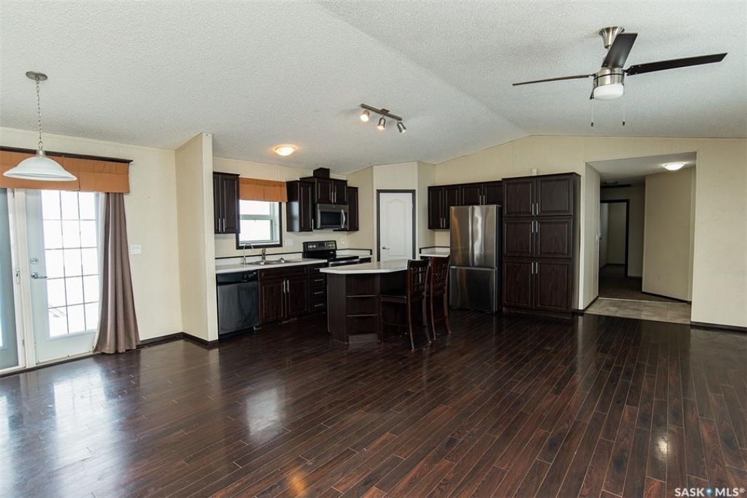 Located near Kandahar just minutes from Wynyard, this well-kept 3 bedroom, 2 bathroom mobile home sits on 1.9 acres offering space, privacy, and comfortable country living. The home features a cozy fireplace, functional layout, and a versatile bonus room ideal for an office, playroom, or extra living space. Enjoy beautiful prairie sunsets from the west-facing back deck, plus a covered front area that provides sheltered entry and a relaxing spot to unwind. The yard provides plenty of room for gardening, recreation, or outdoor storage, and the owners have recently planted 150 hybrid poplar trees, creating a future shelterbelt for added privacy and wind protection. A major highlight is the 24 x 32 shop with 16-foot walls, perfect for vehicles, projects, storage, or hobby use. This property offers the peace of rural living with the convenience of a short drive to town amenities, schools, and services.